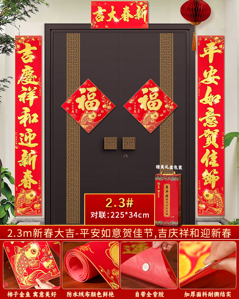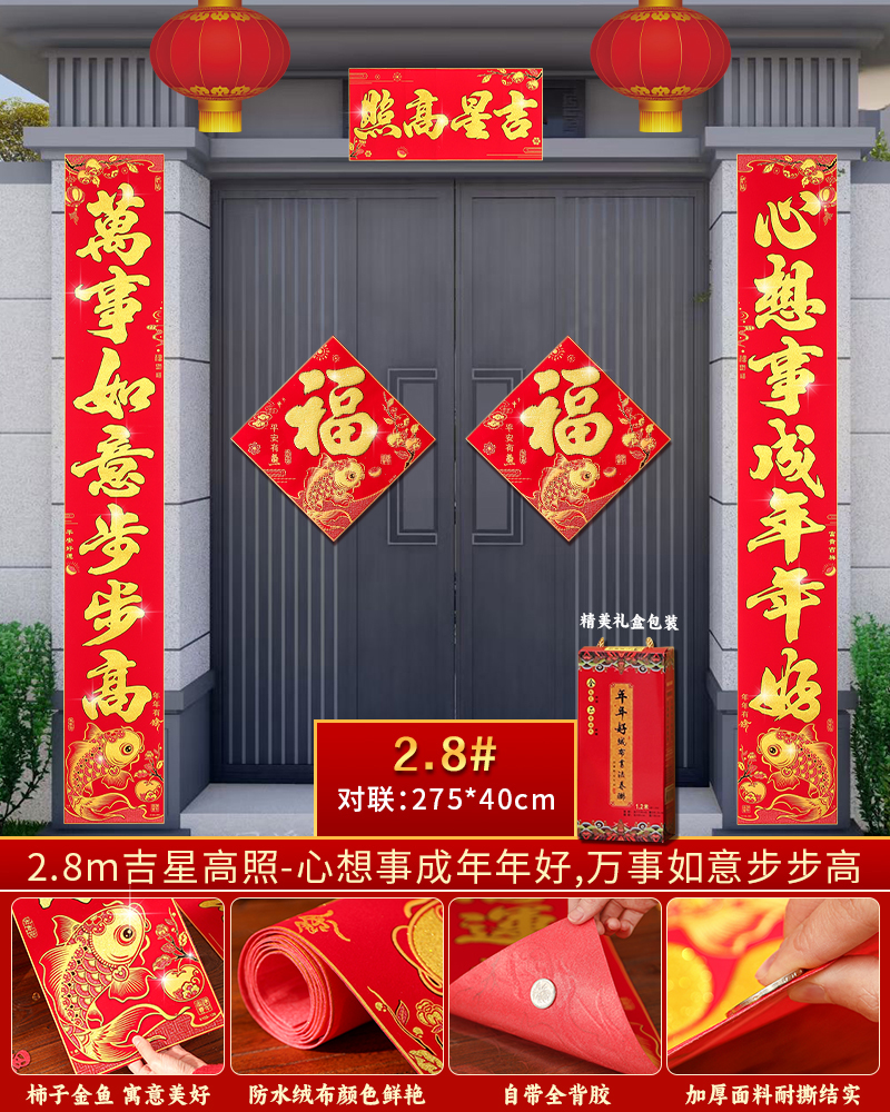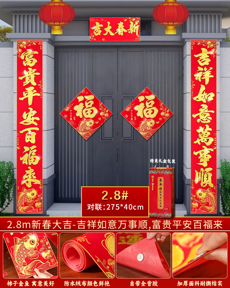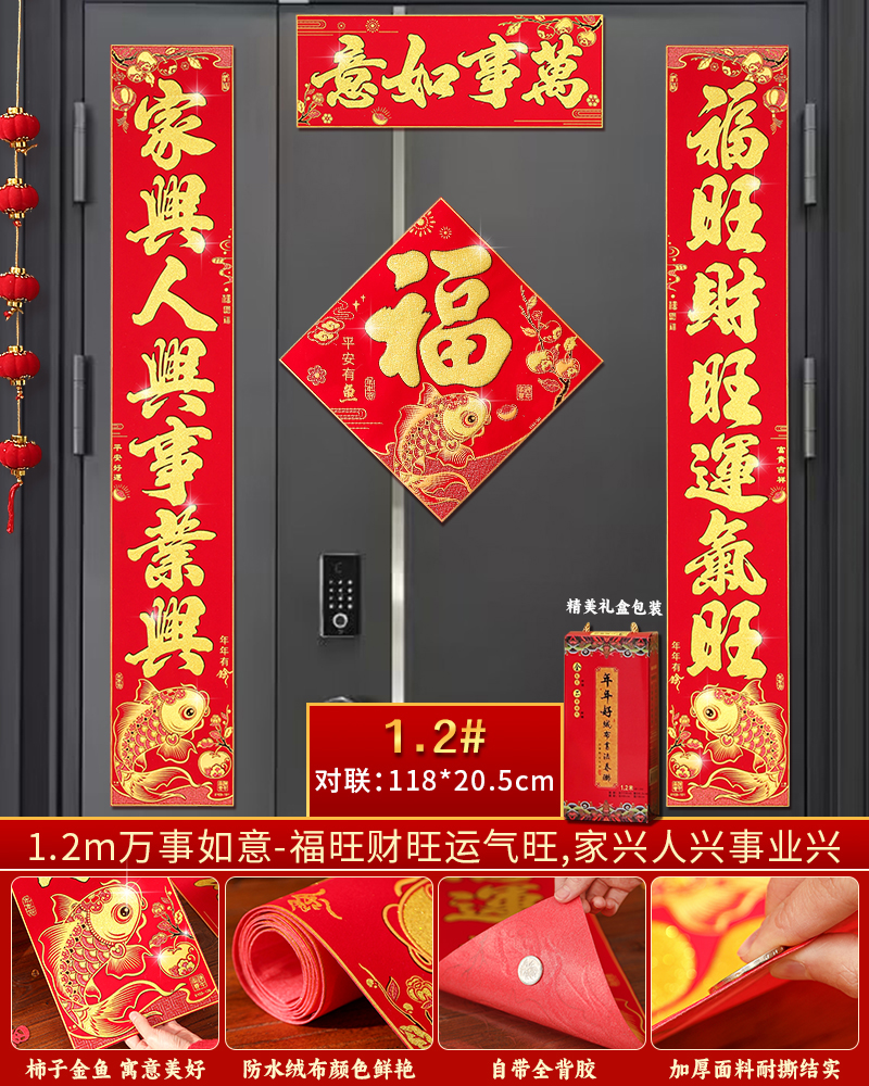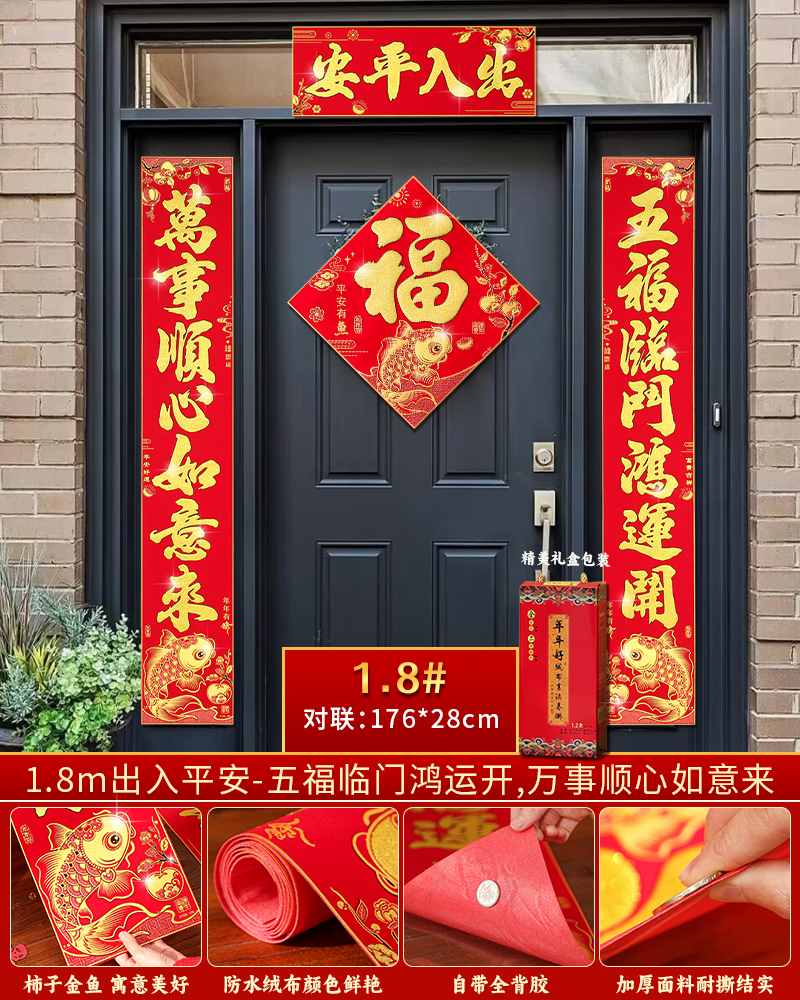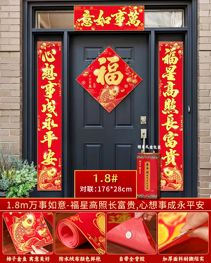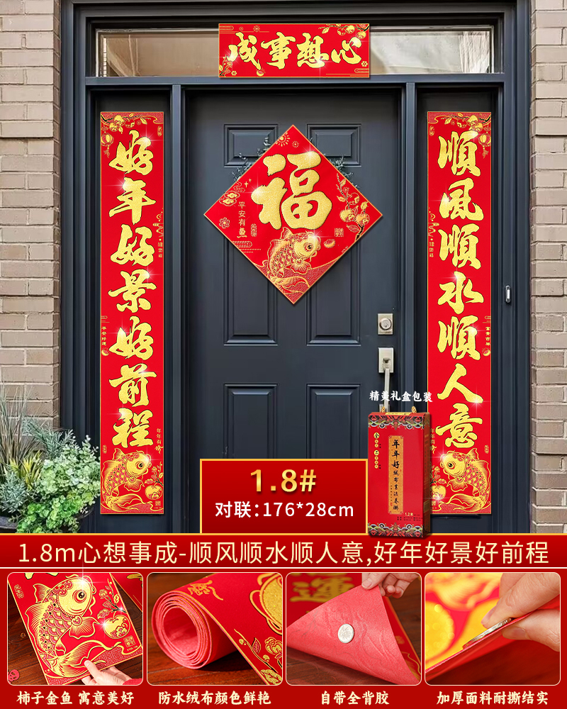 | velvet couplets (with door lucky charm) [self-adhesive backing](绒布对联(带门福)【自带背胶】) | USD $25.8 | 199 piece available |