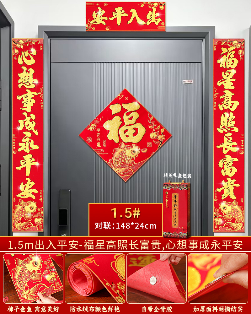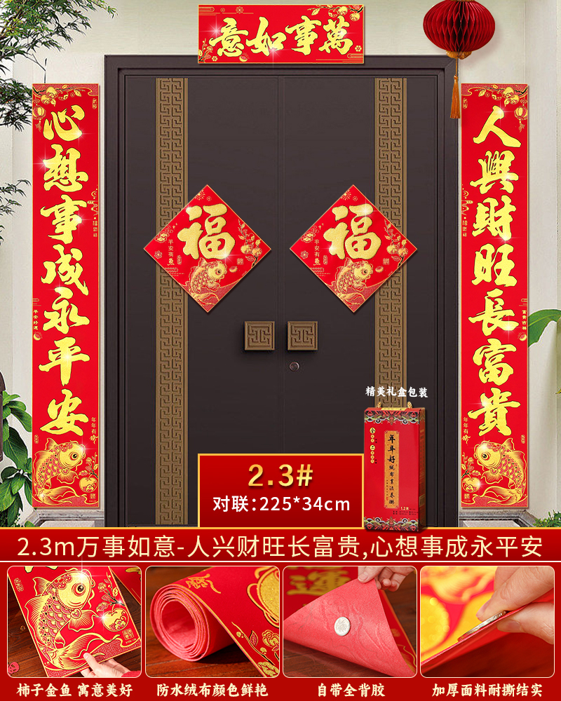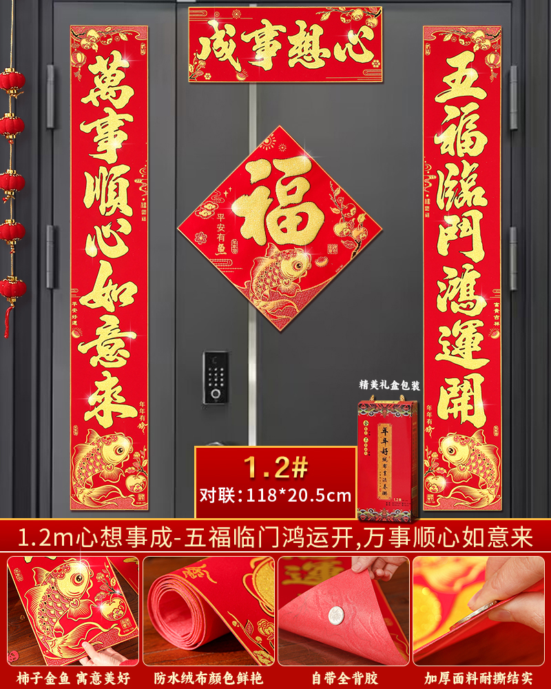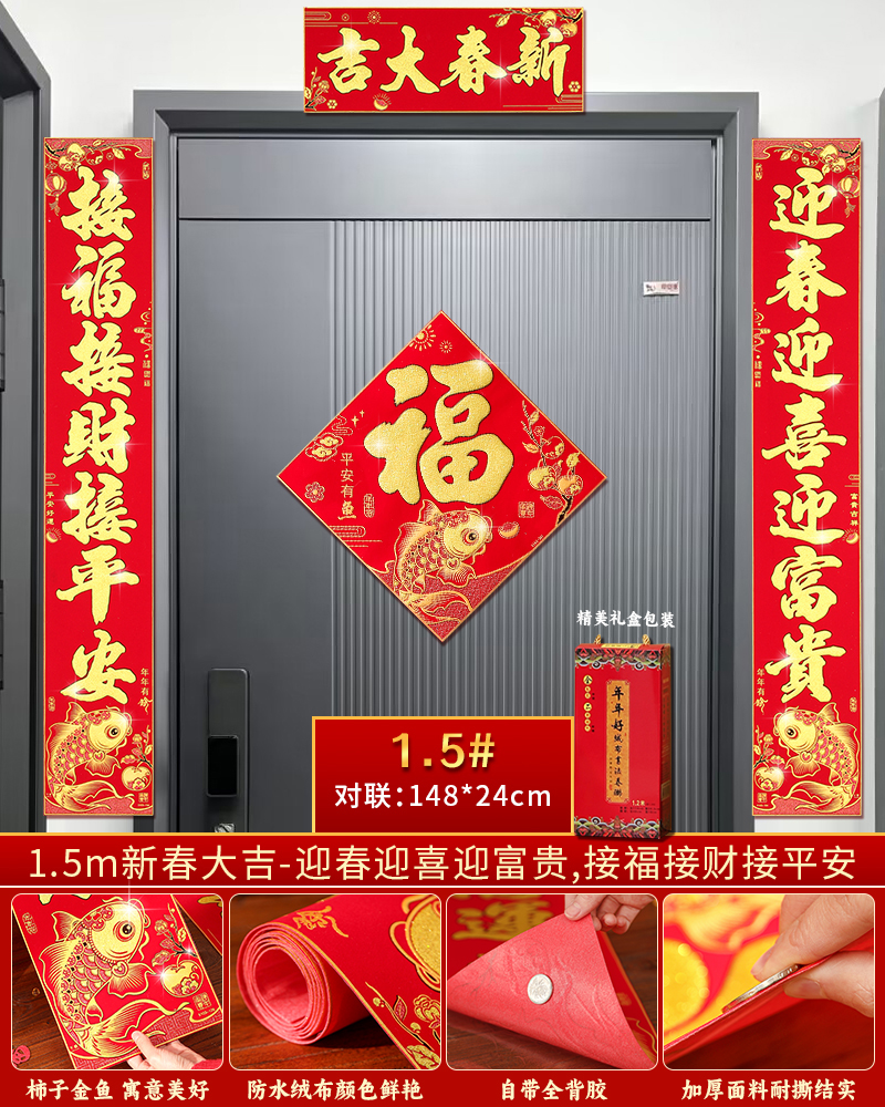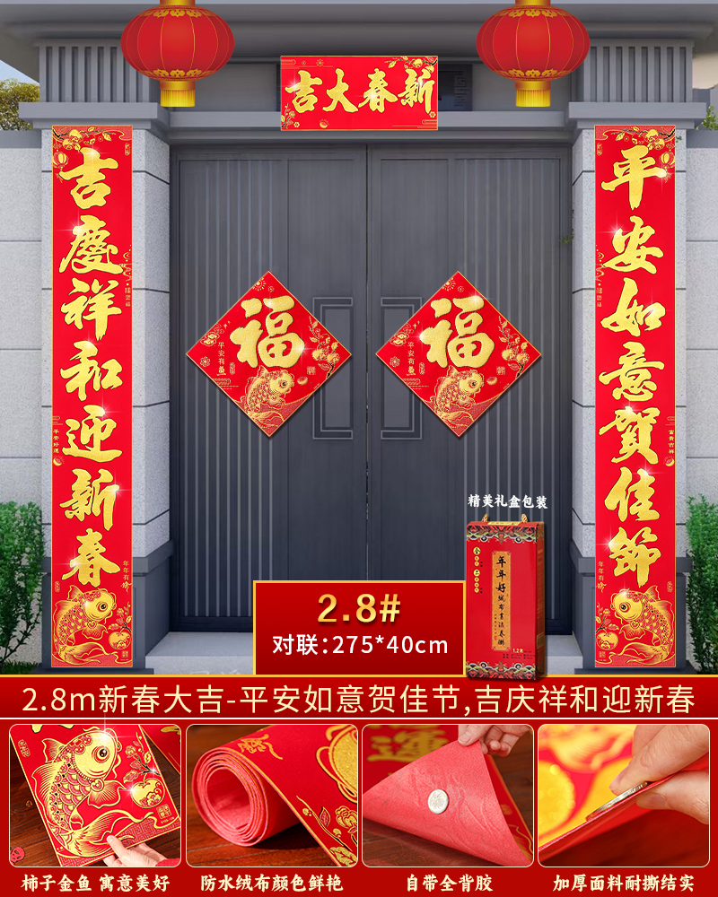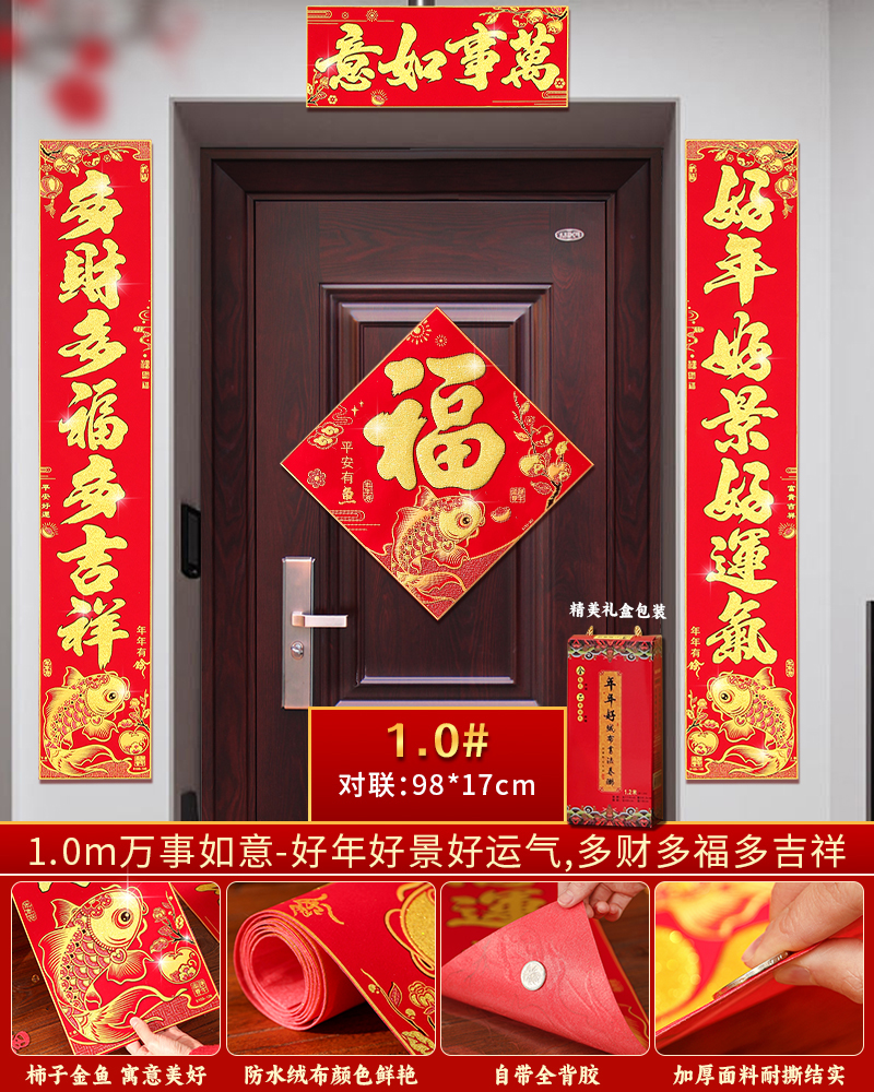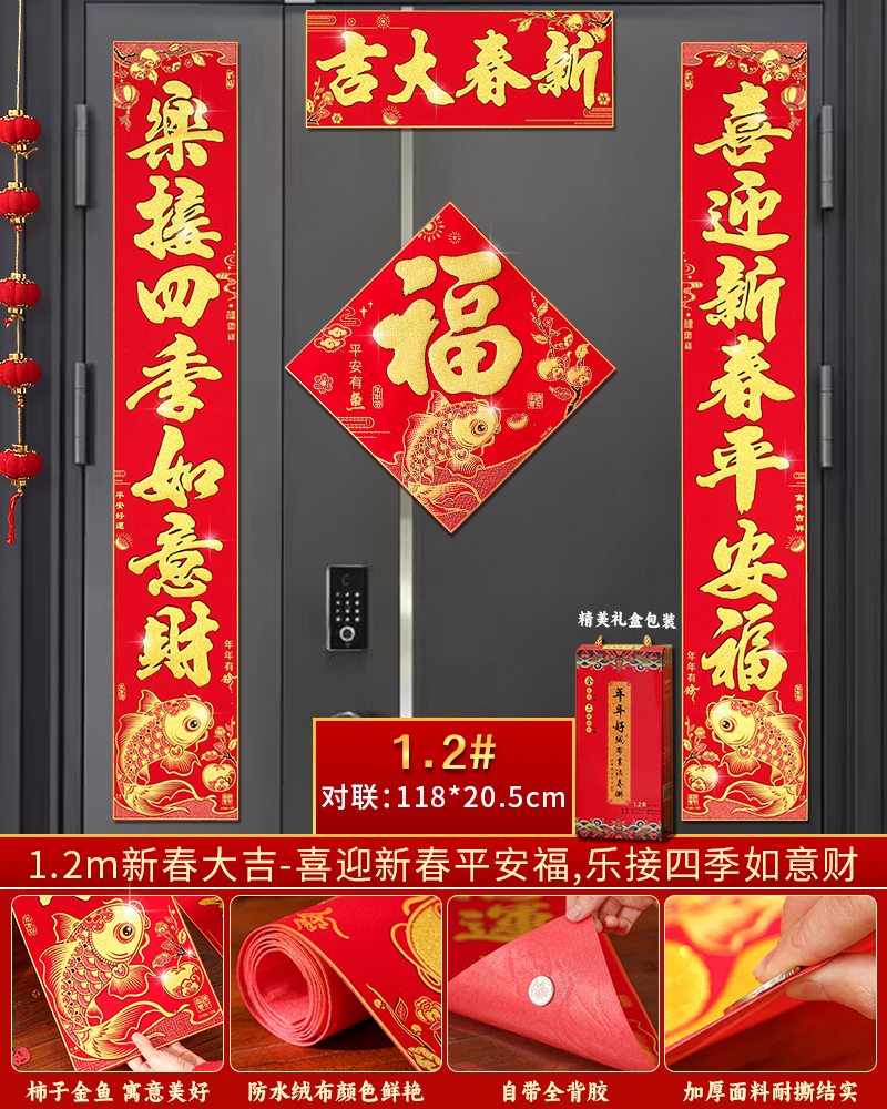 | velvet couplets (with door lucky charm) [self-adhesive backing](绒布对联(带门福)【自带背胶】) | USD $25.8 | 199 piece available |