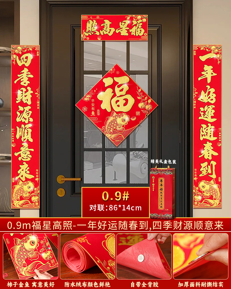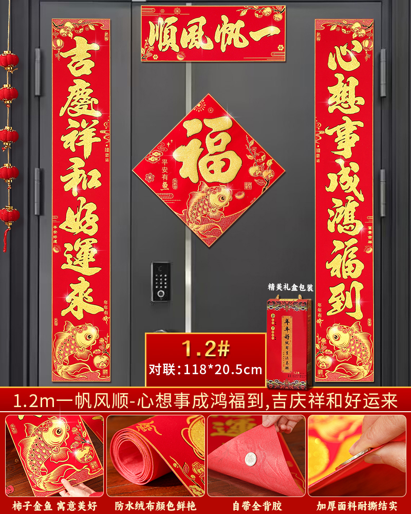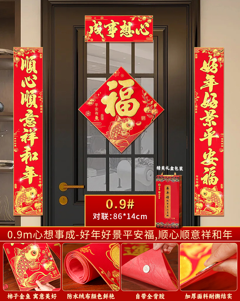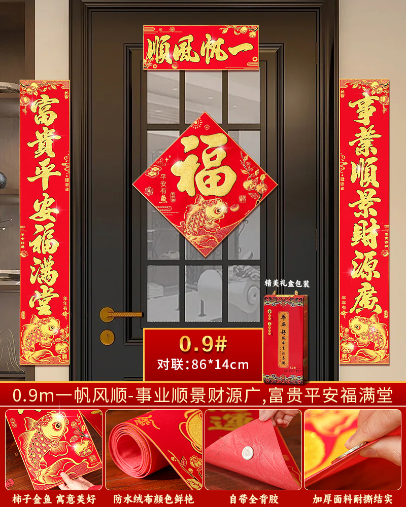 | velvet couplets (with door lucky charm) [self-adhesive backing](绒布对联(带门福)【自带背胶】) | USD $25.8 | 200 piece available |