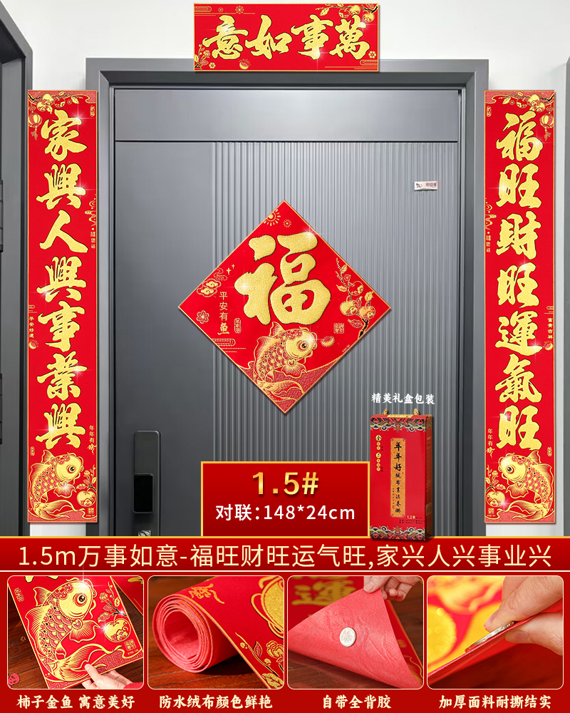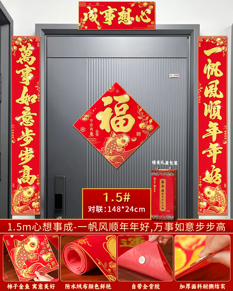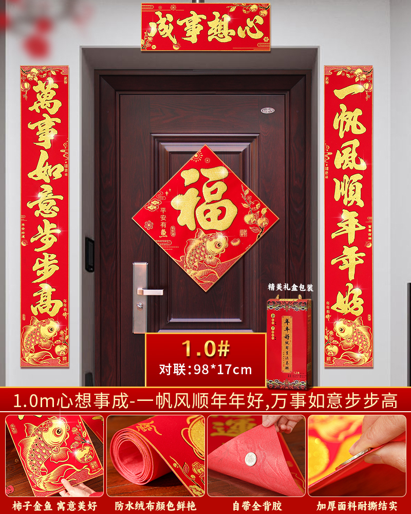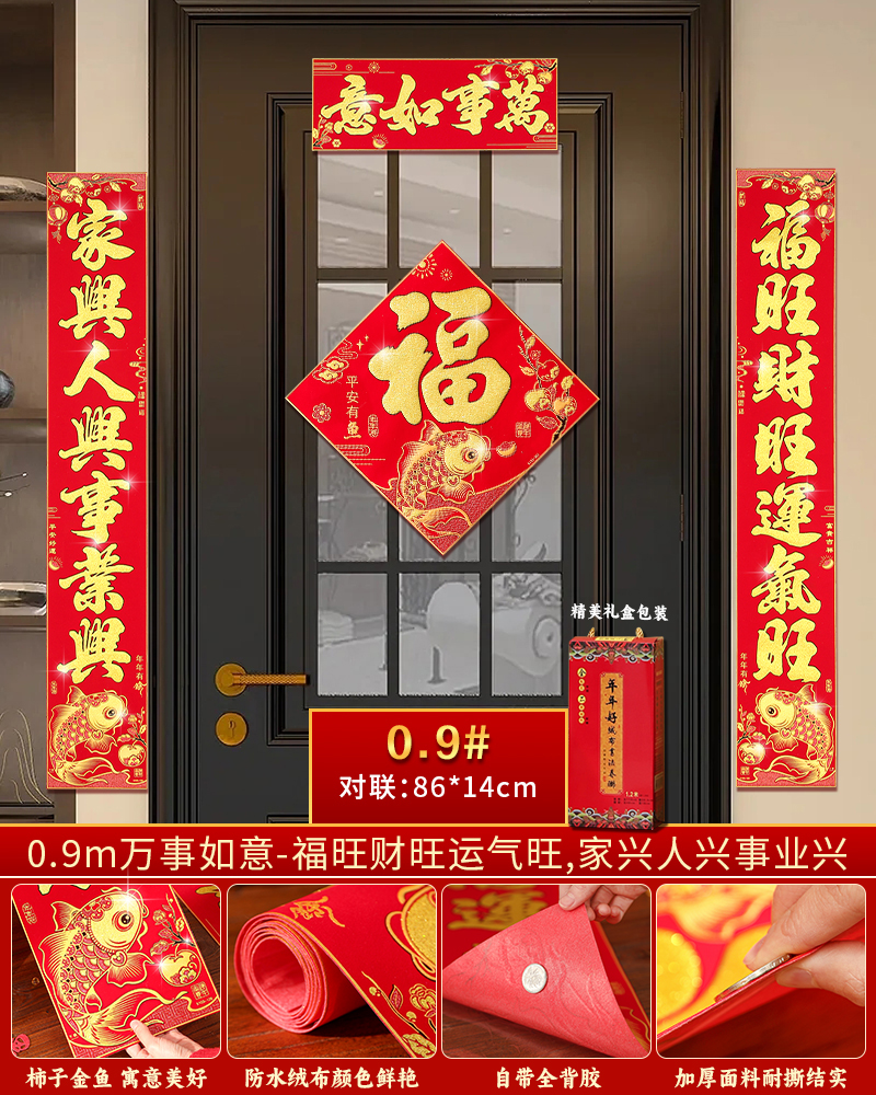 | velvet couplets (with door lucky charm) [self-adhesive backing](绒布对联(带门福)【自带背胶】) | USD $25.8 | 200 piece available |