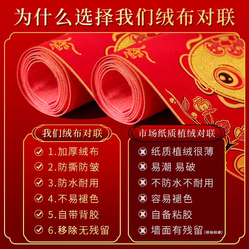 | velvet couplets [with self-adhesive backing](绒布对联【自带背胶】) | USD $10.78 | 200 piece available |