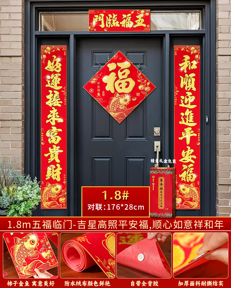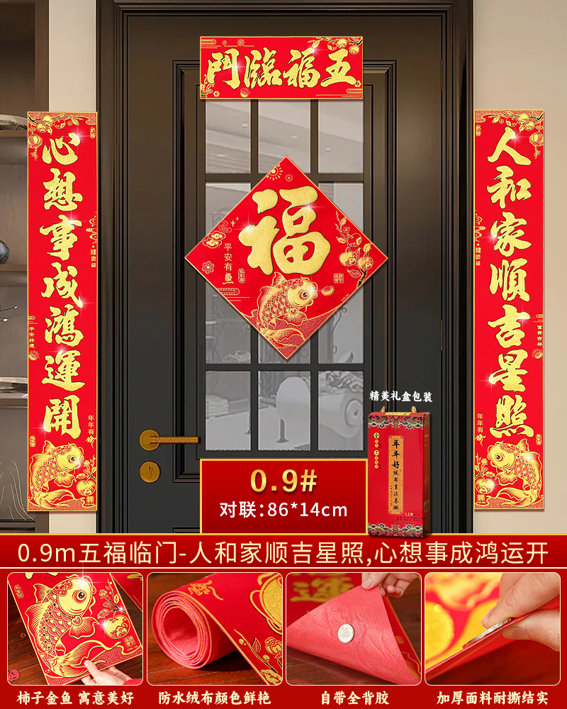 | flannel couplet (with door blessing) [with adhesive]](绒布对联(带门福)【自带背胶】) | USD $5.36 | 200 piece available |