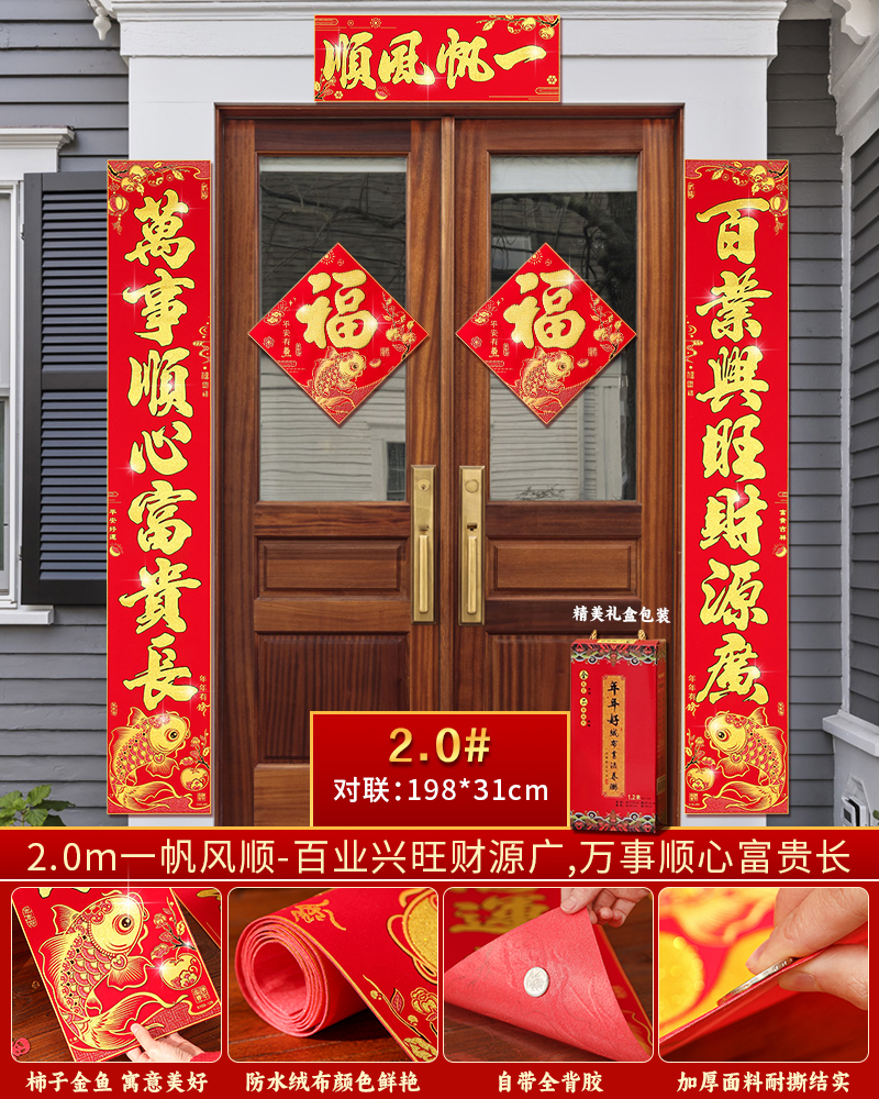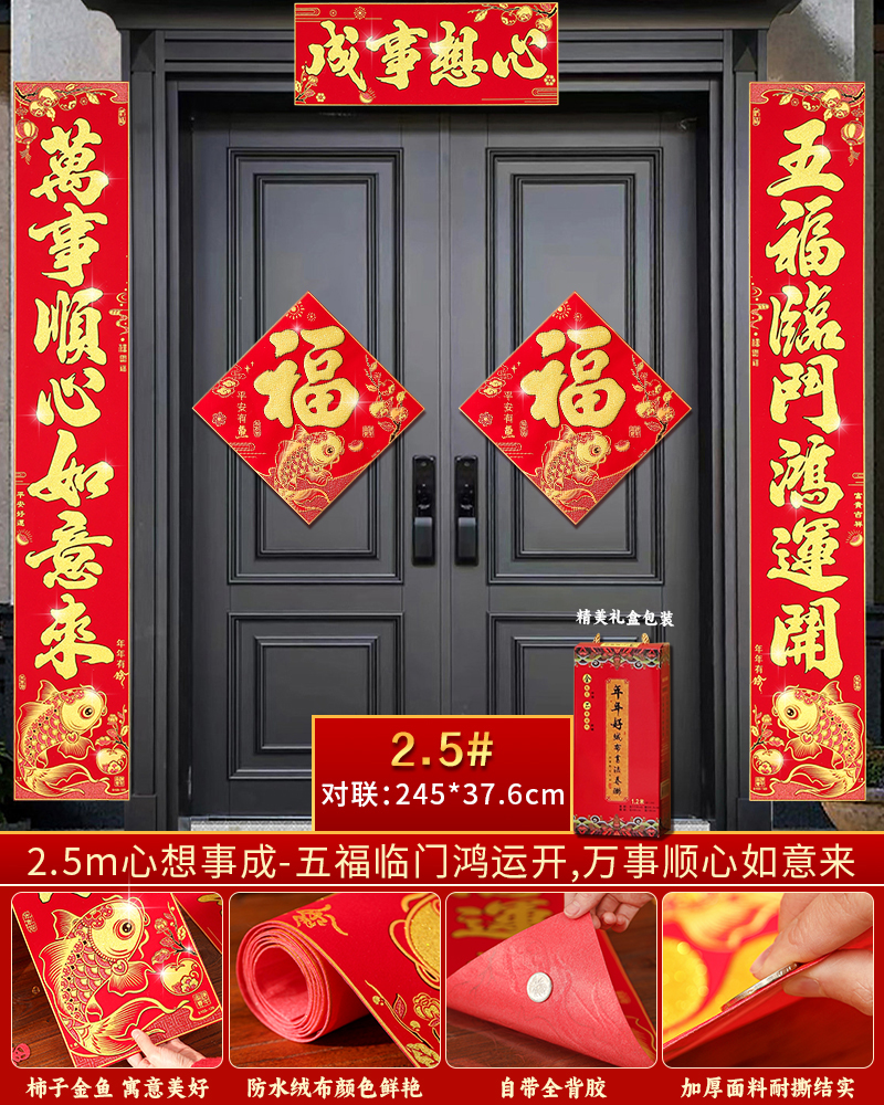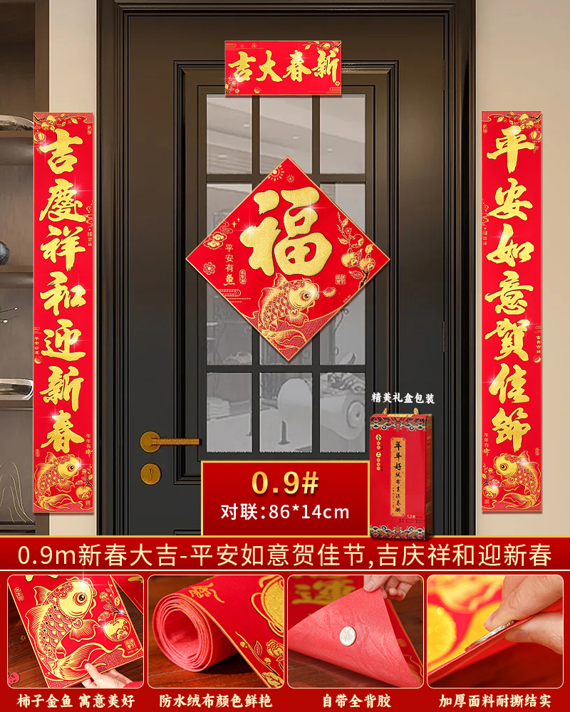 对联春联2026年新款绒布过马年入户门对联自带背胶农村大门联
