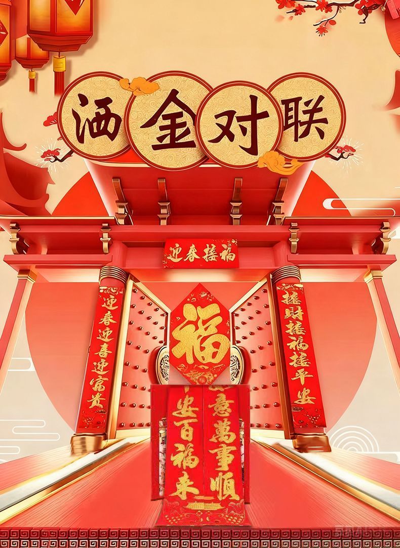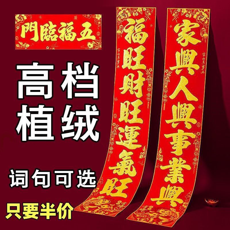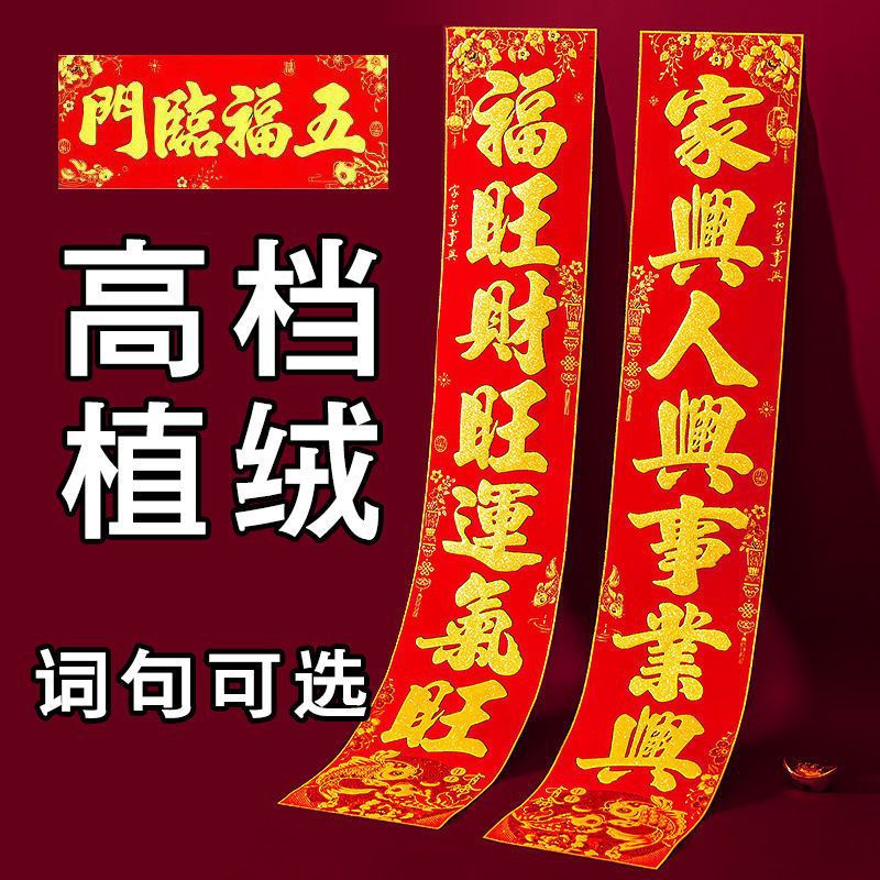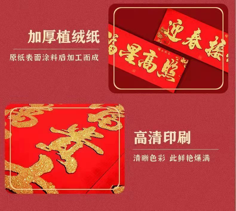 2026年马年对联大全春节高档植绒批发新年农村大门贴新款家用金粉