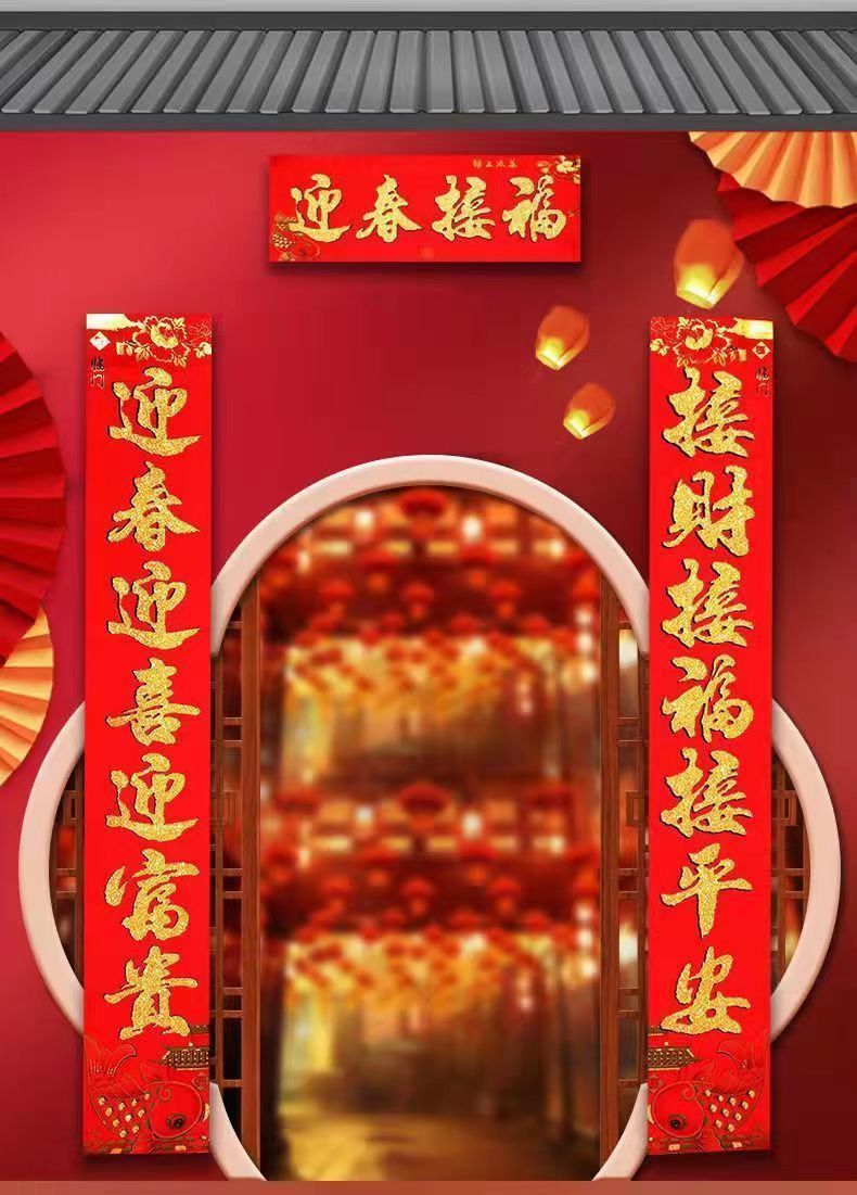 | 【套装】植绒洒金7彩锦鲤双鱼对联1副窗花福贴2张 | USD $0.52 | 10000 piece available |
