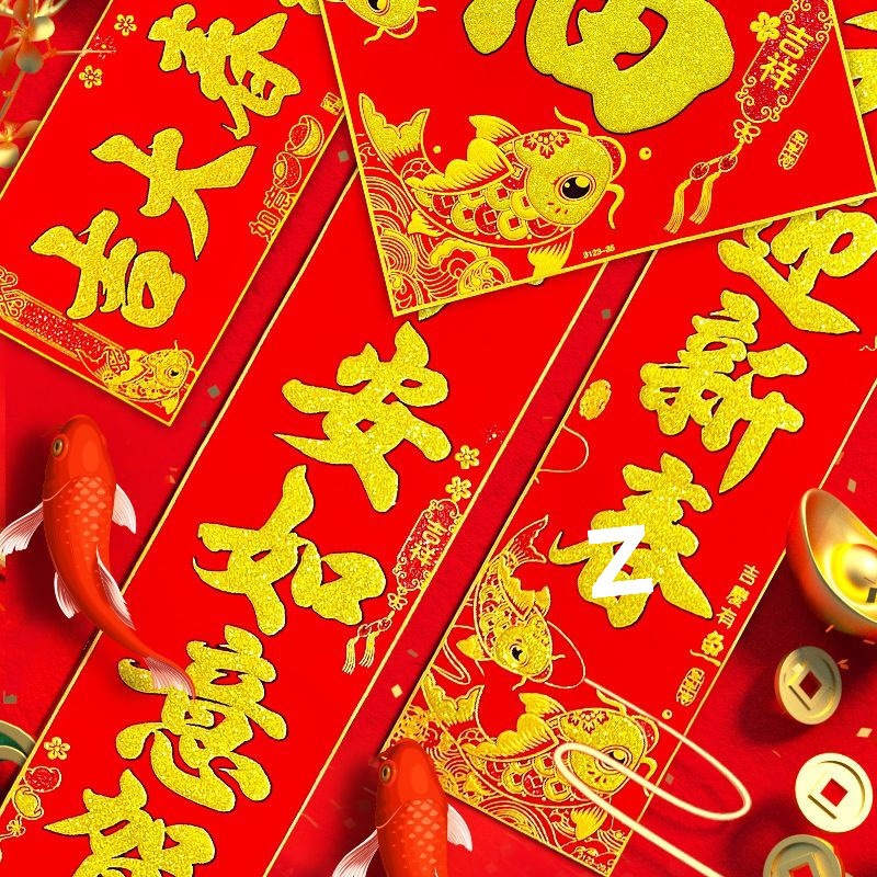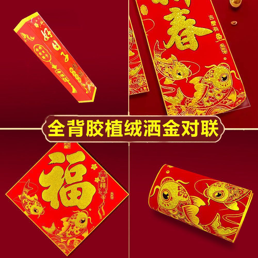 2025年对联粘贴式植绒自粘背胶新款龙年春联批发福字春联农村全套