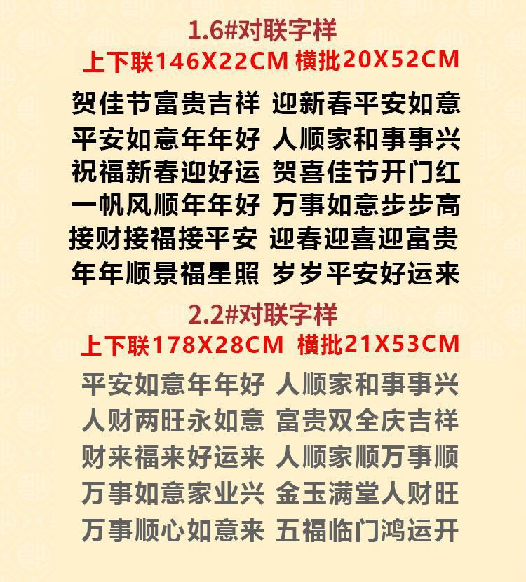 | 1.6接财接福接平安 迎春迎喜迎富贵 | USD $7.19 | 303 piece available |
