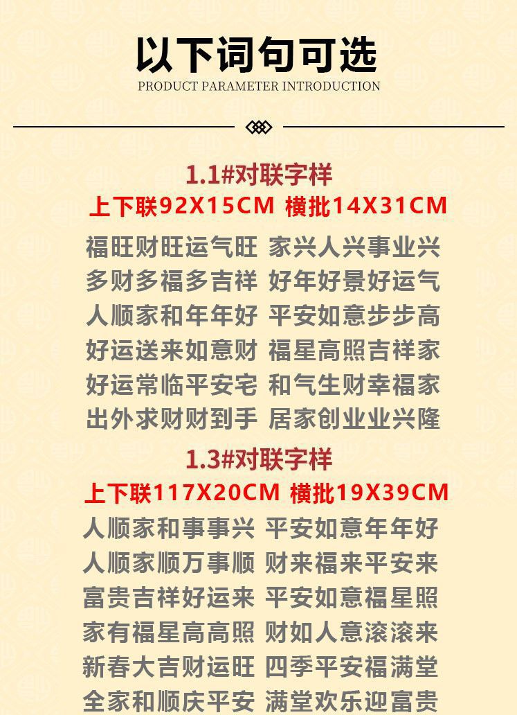 | 1.3人顺家和事事兴 平安如意年年好 | USD $6.3 | 303 piece available |