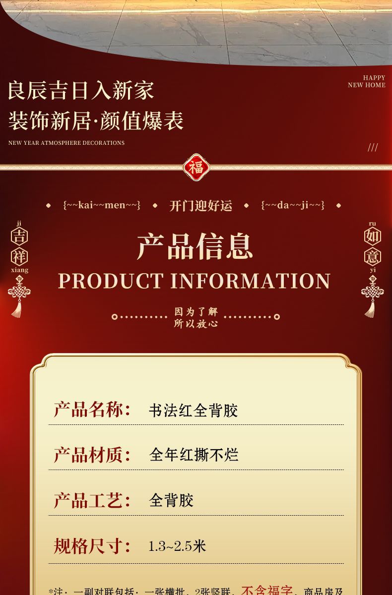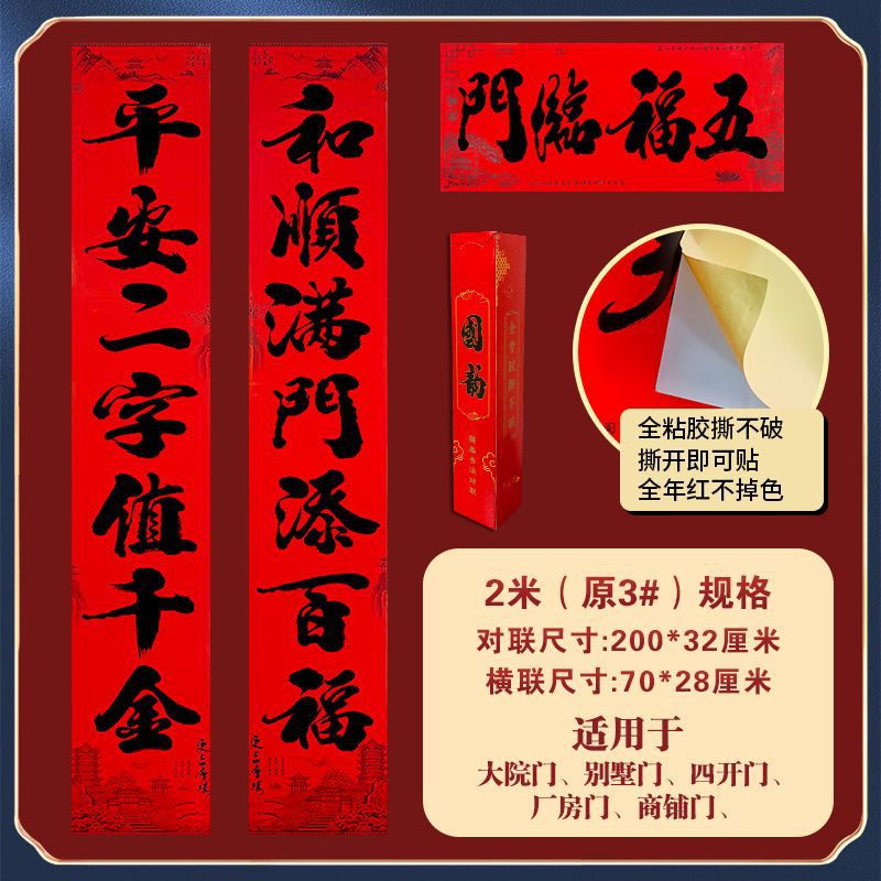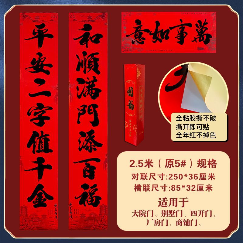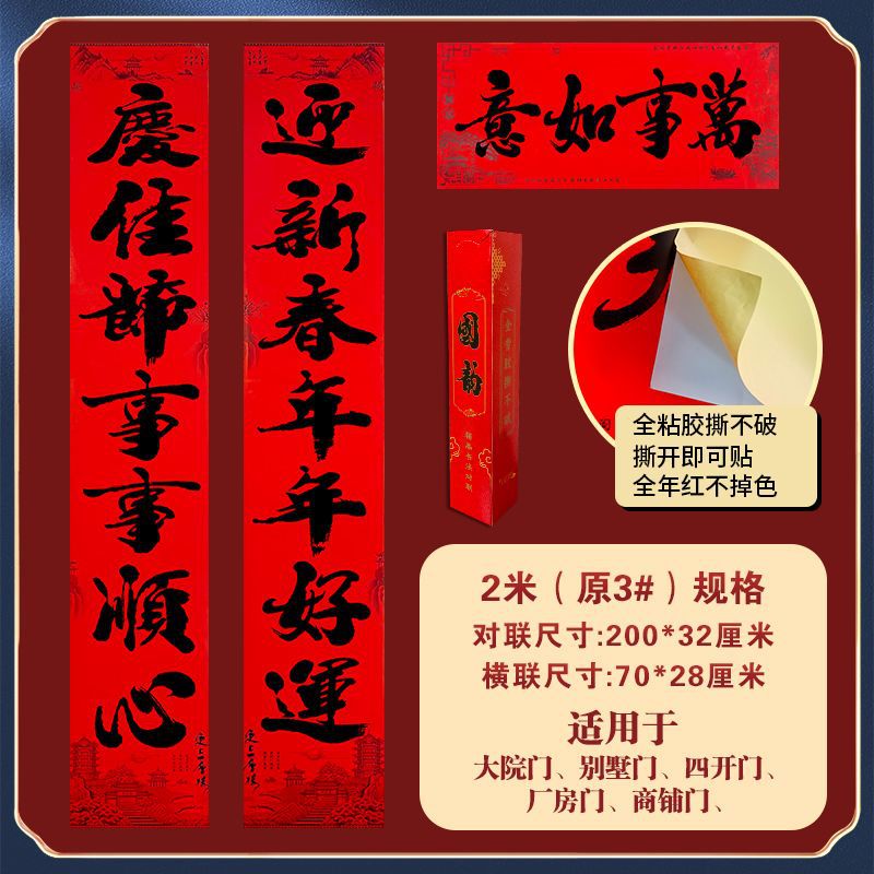 2026年对联书法耐晒黑字春节家用农村入户大门联全年红新年春联新
