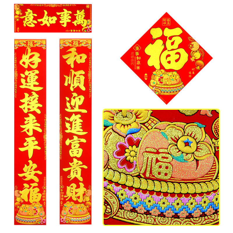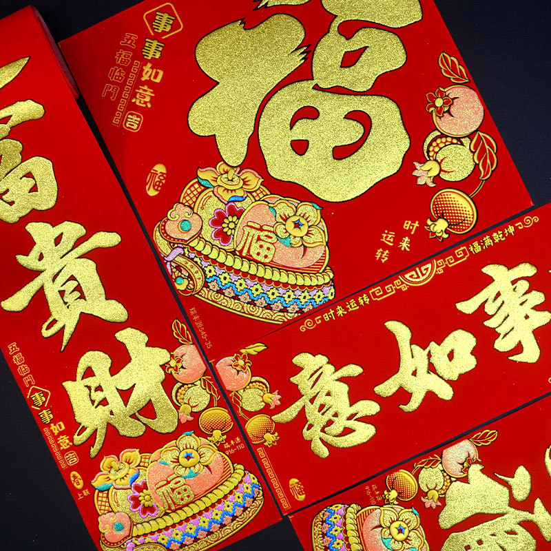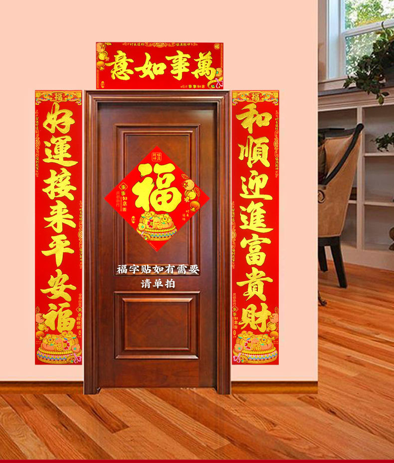 2026年马年新款对联福字全背胶装饰入户大门农村大门生意词乔迁贴