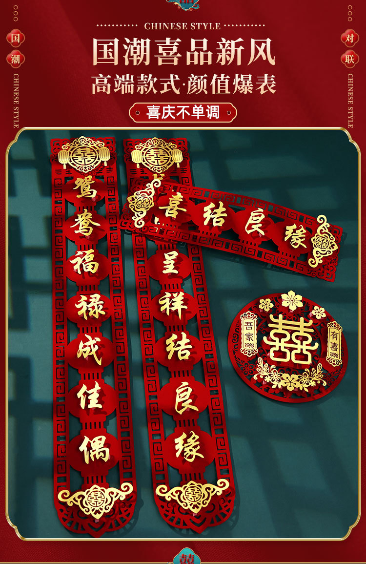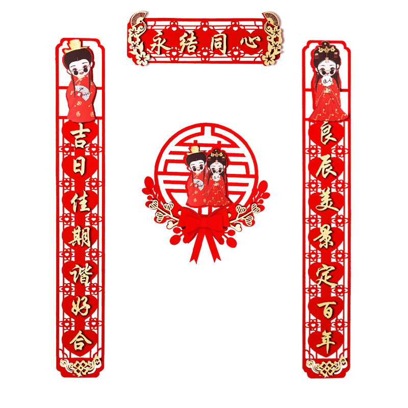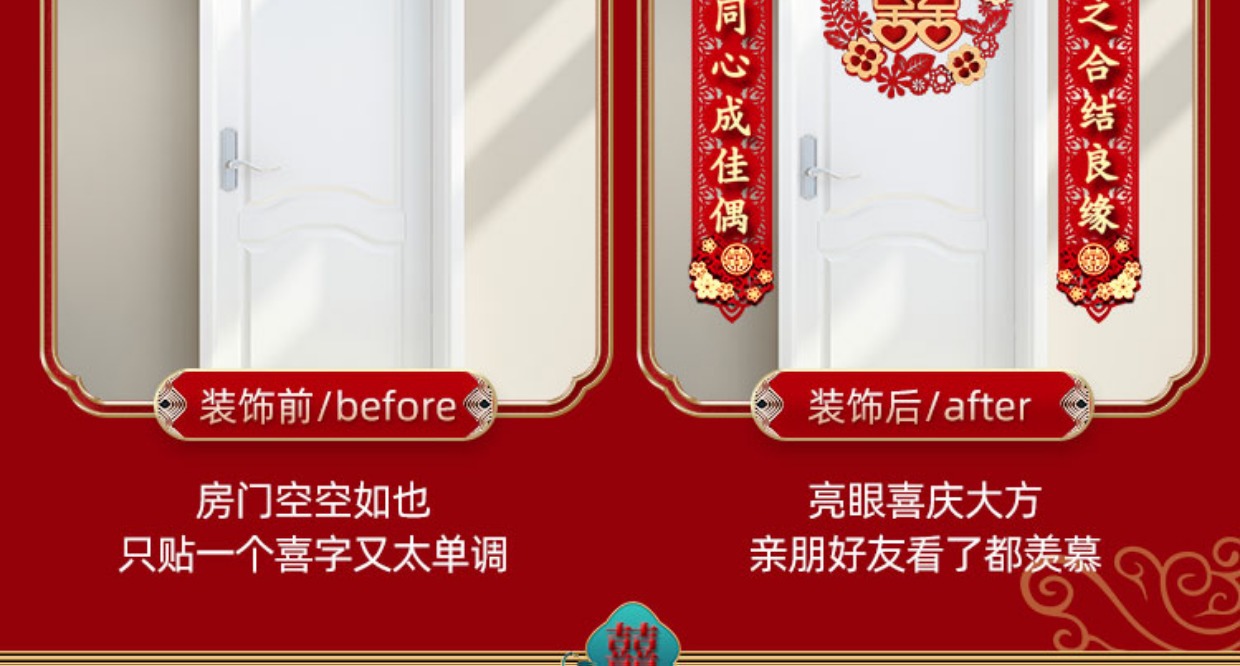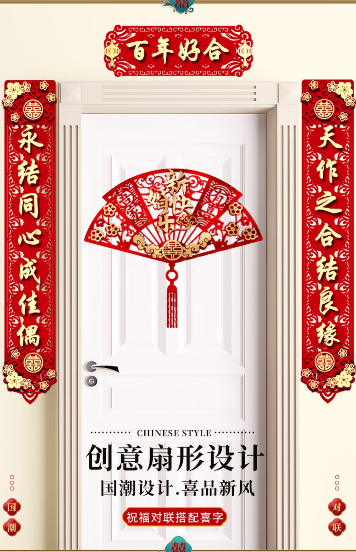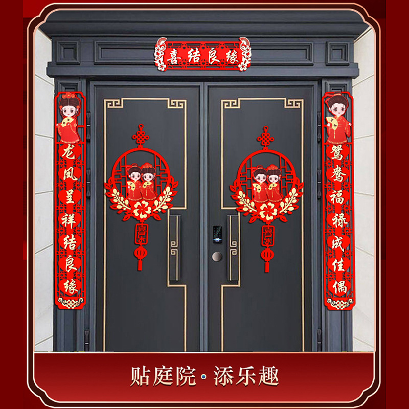 结婚对联男方大门女方出嫁喜联全套婚房门口房门农村婚礼用品大全