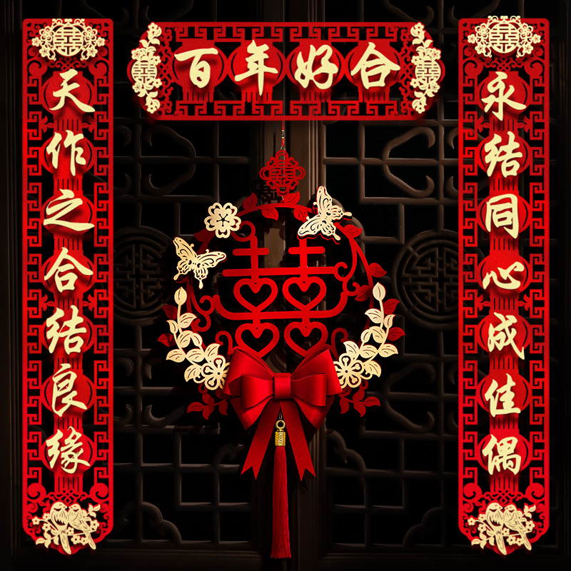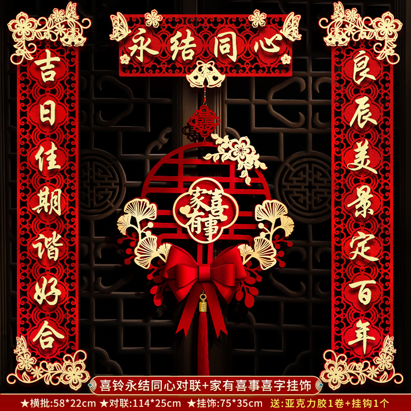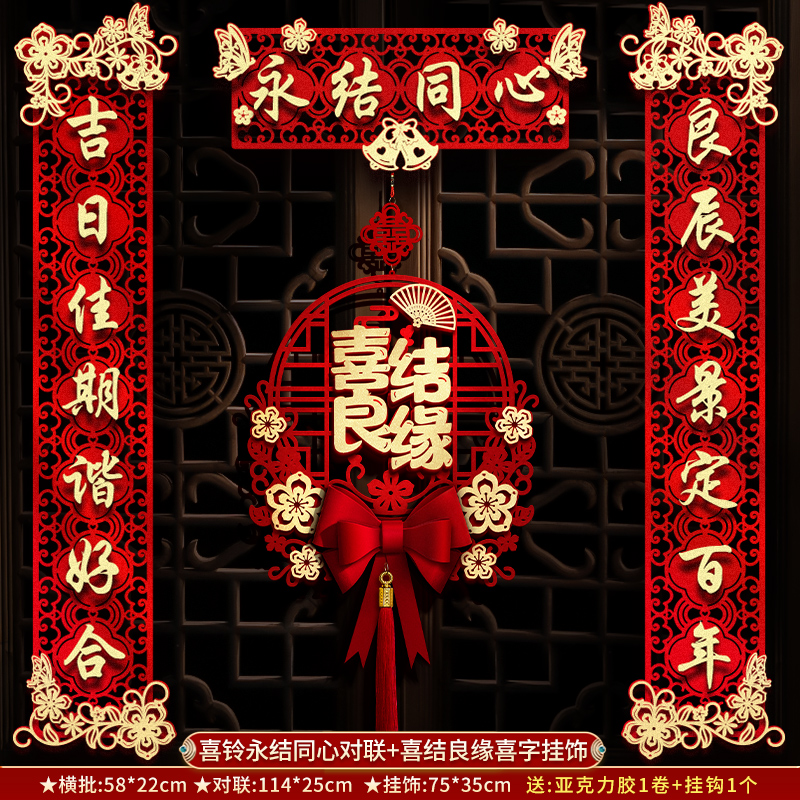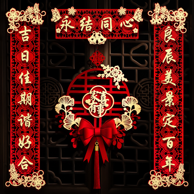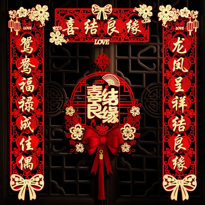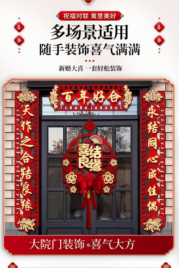 结婚对联男方大门喜联新婚女方出嫁婚房入户门房门全套农村婚礼