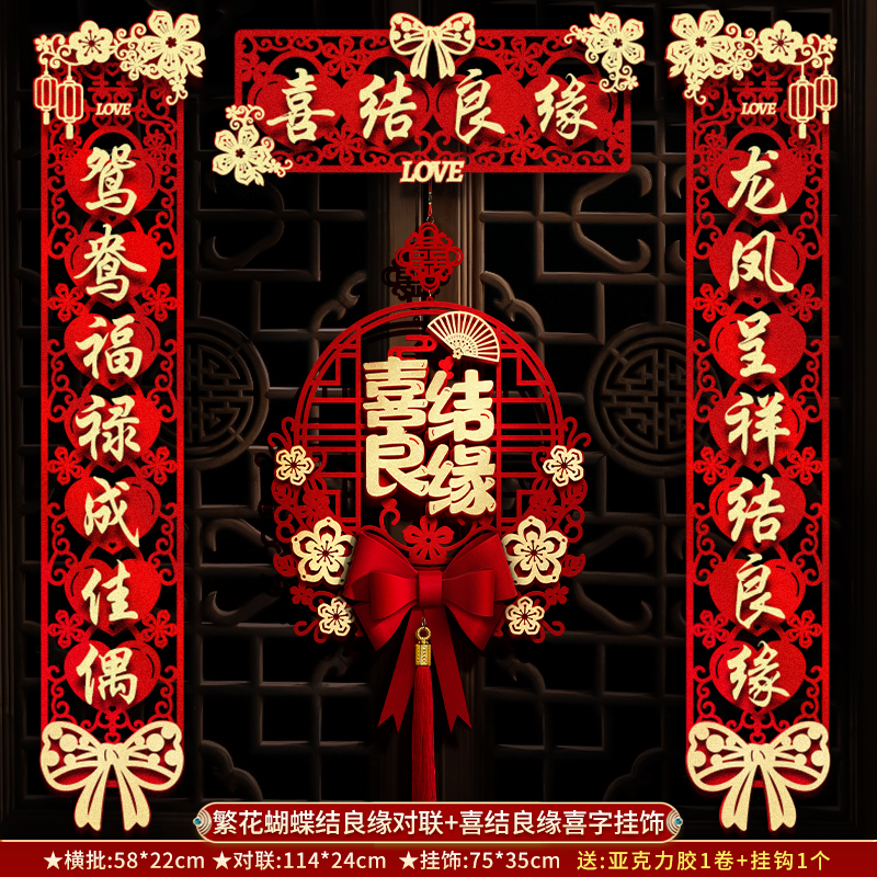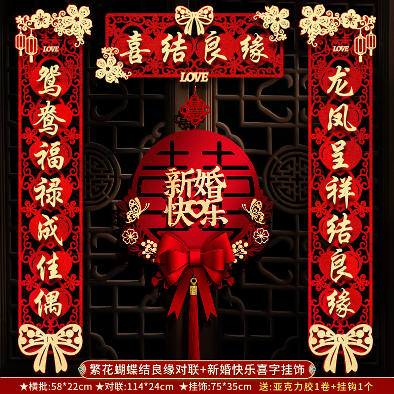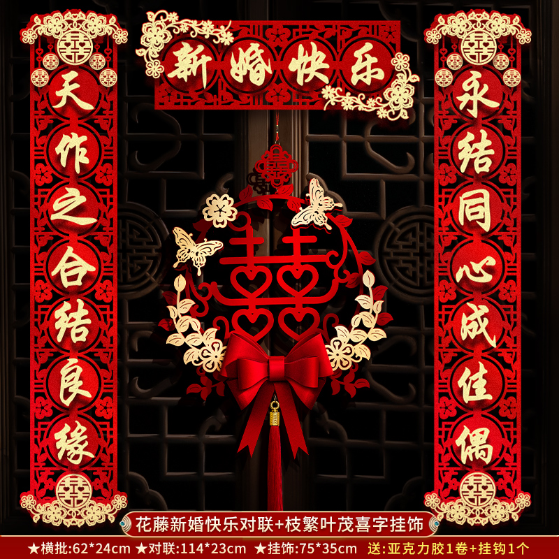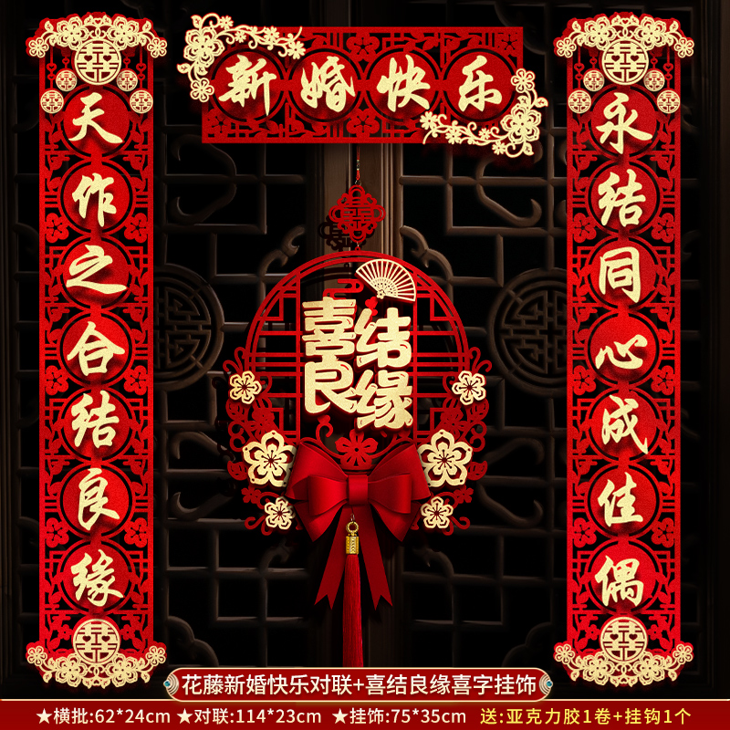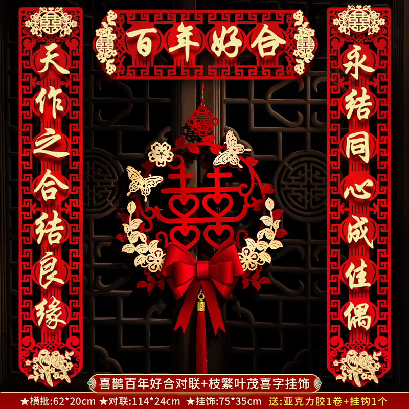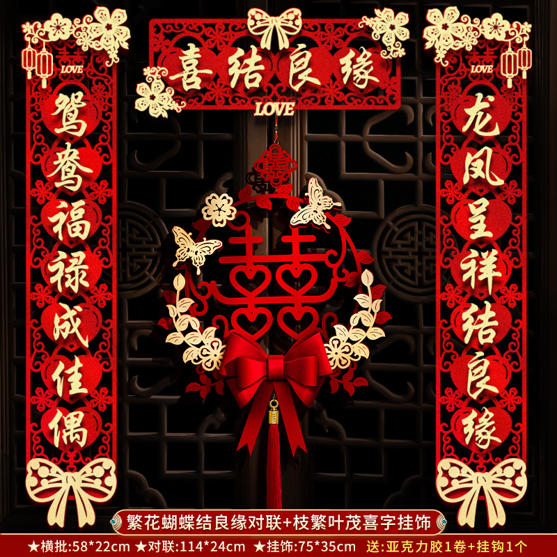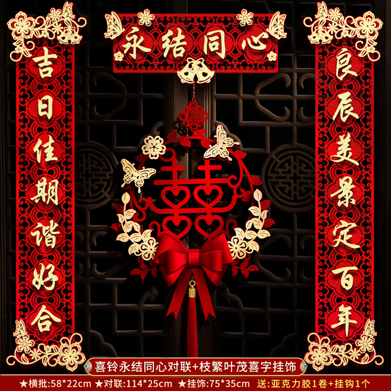 结婚对联男方大门喜联新婚女方出嫁婚房入户门房门全套农村婚礼
