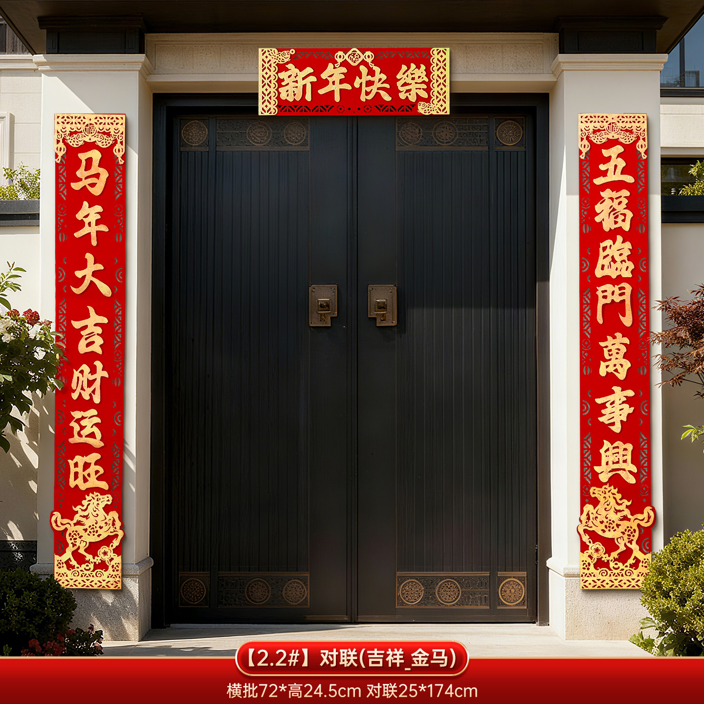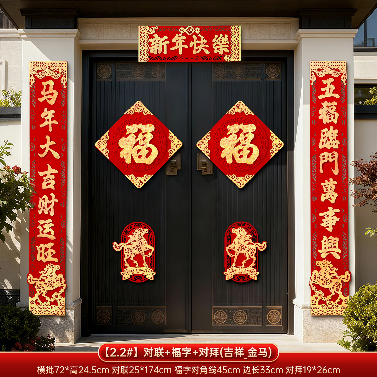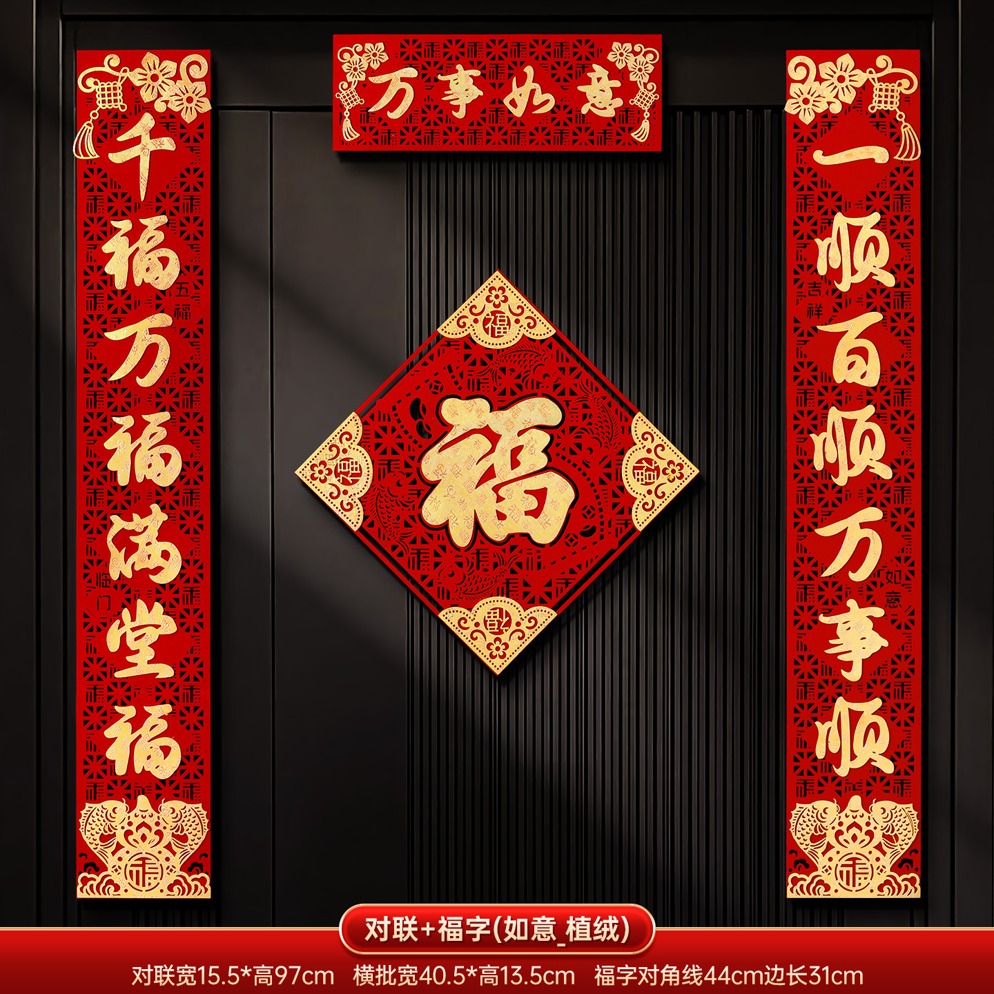 2026马年高档植绒对联春联新年福字入户门贴春节过年家用年货装饰