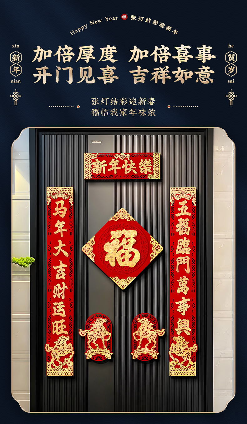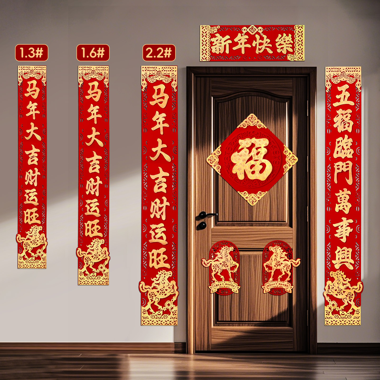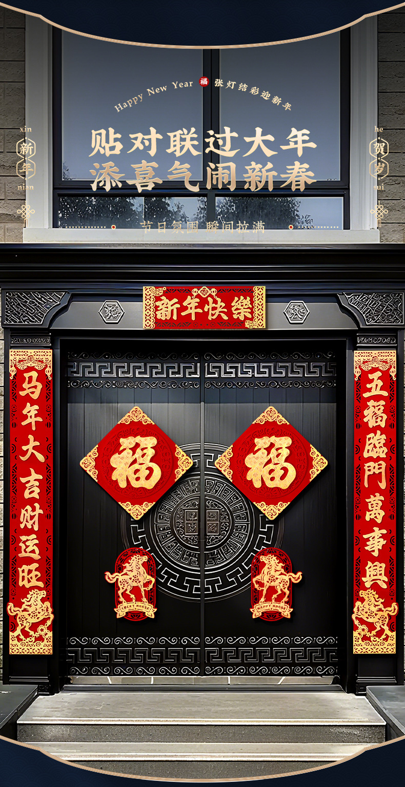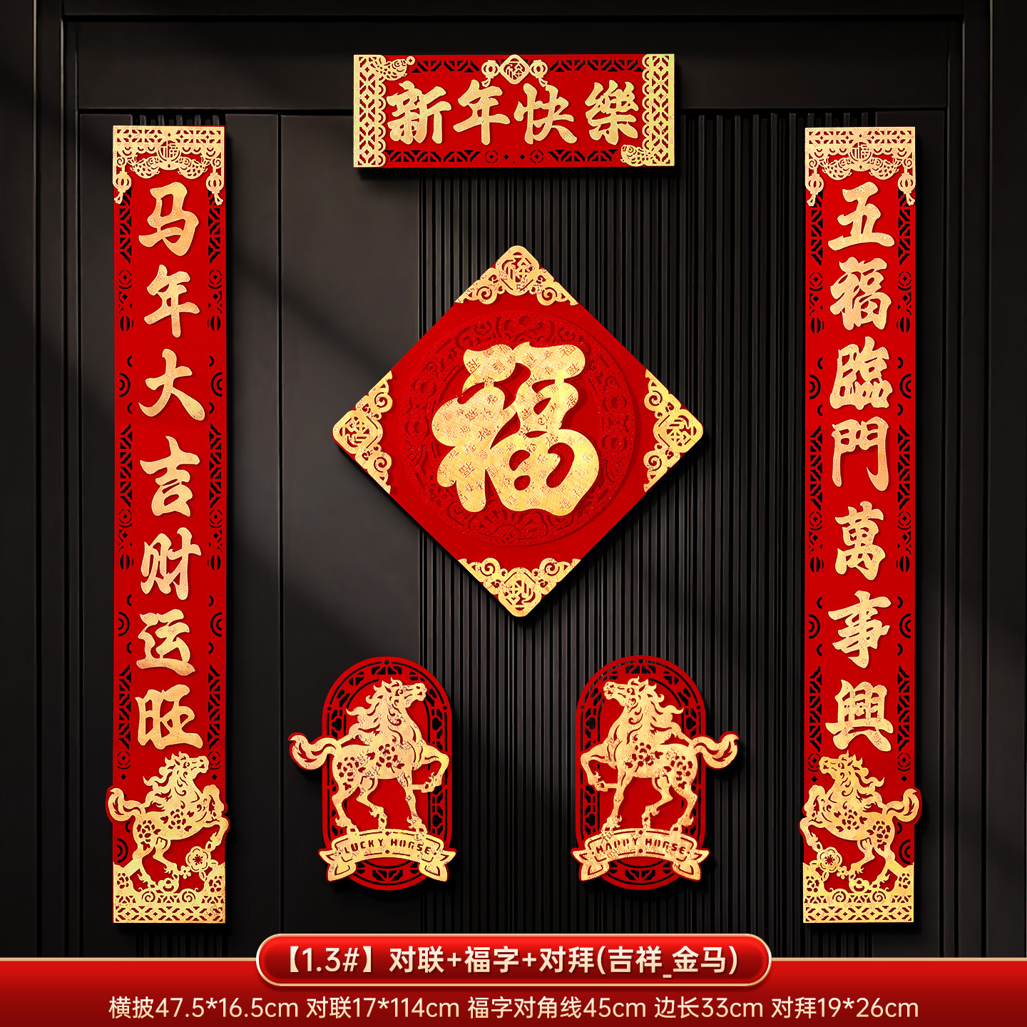 2026马年高档植绒对联春联新年福字入户门贴春节过年家用年货装饰