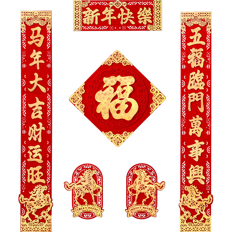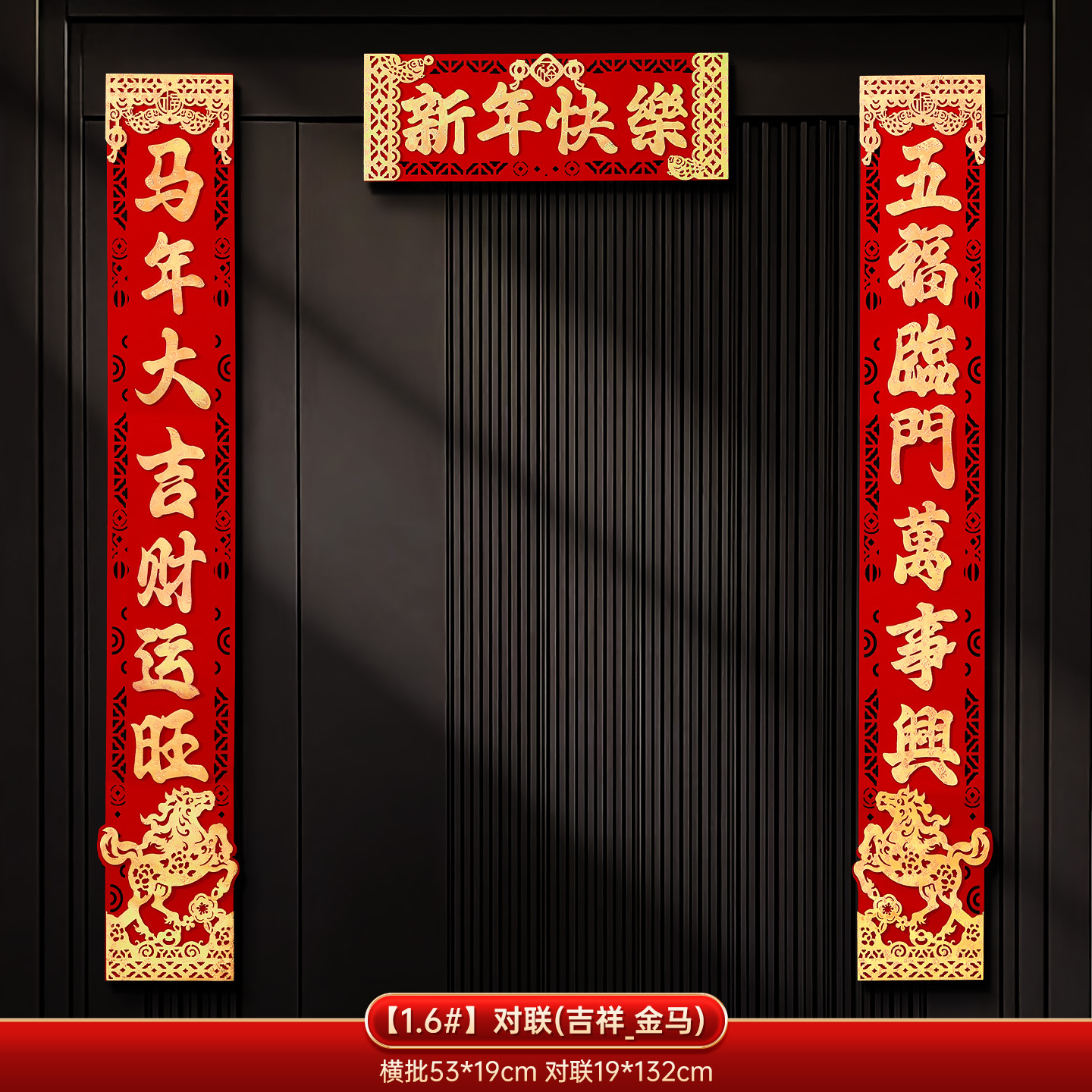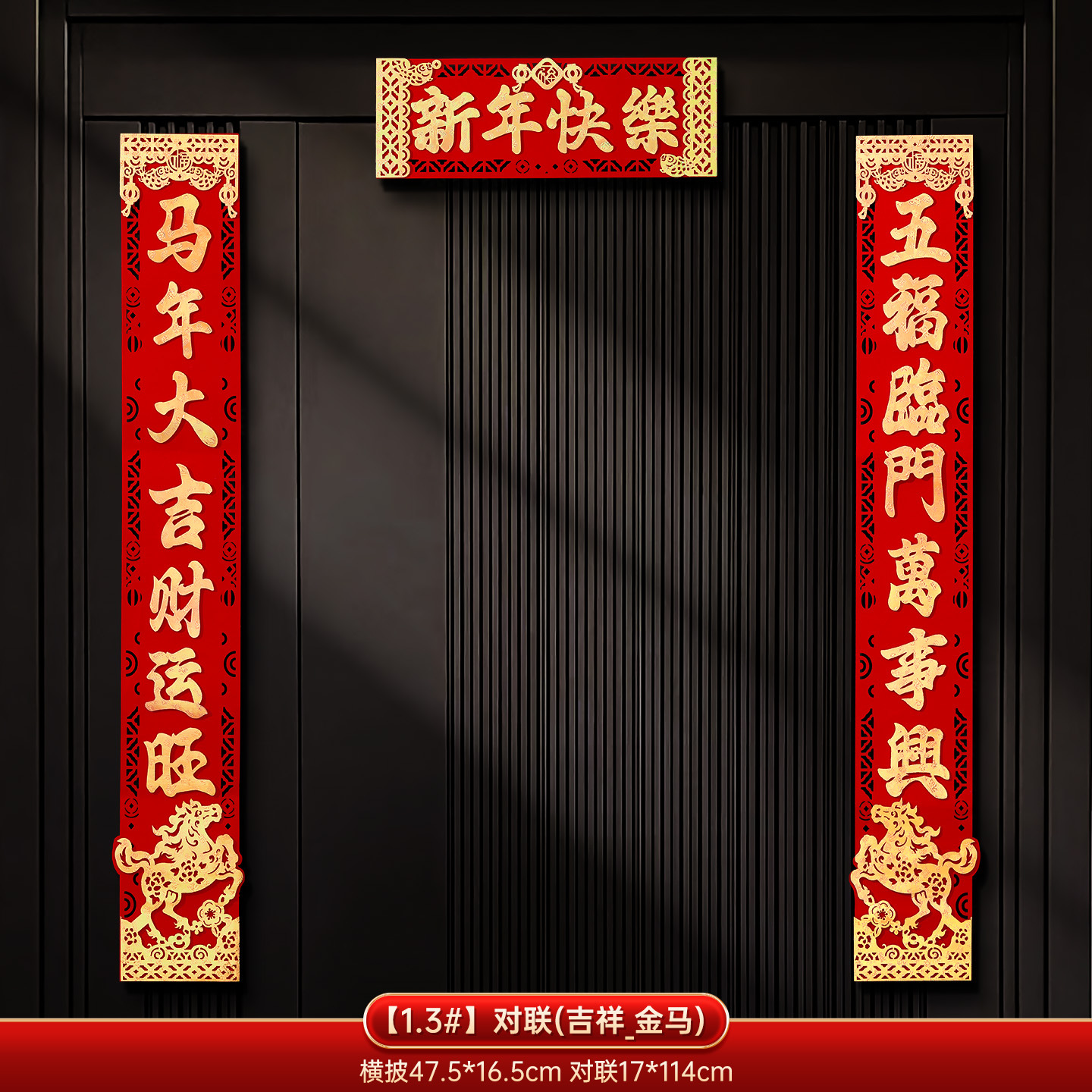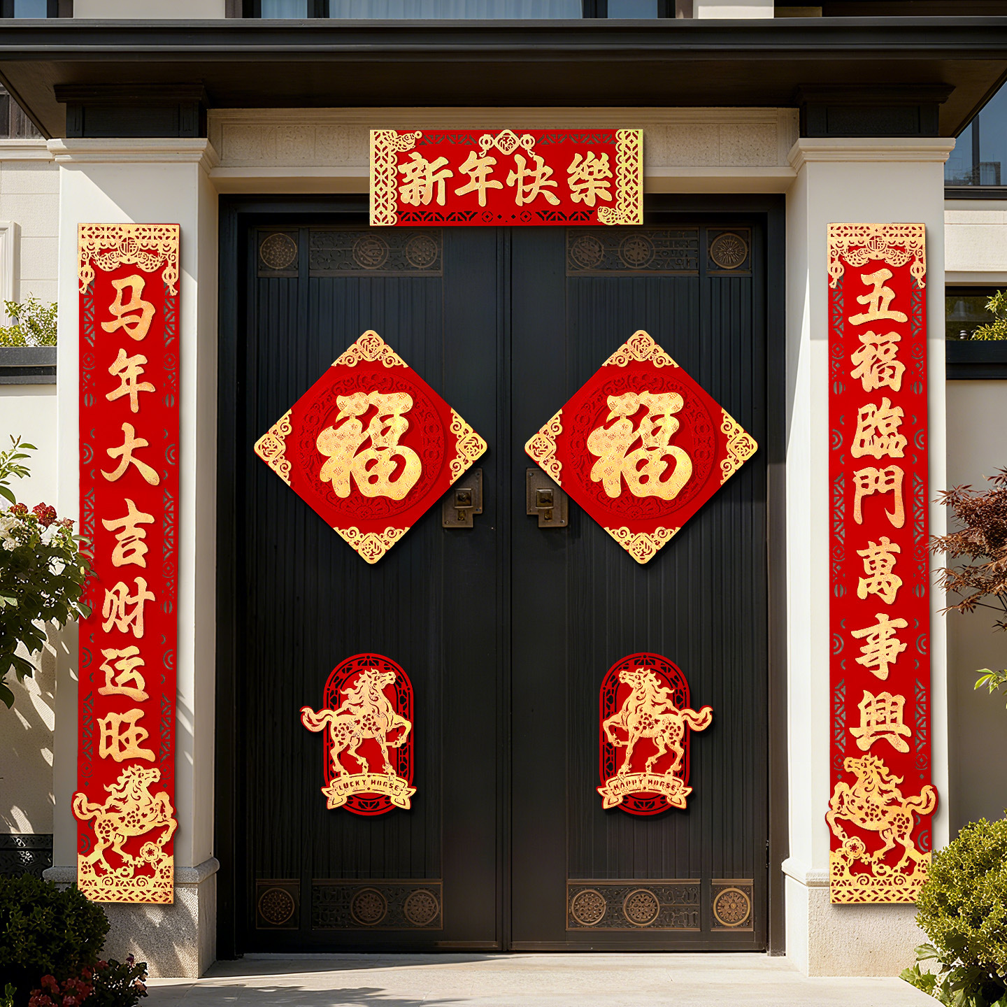 2026马年高档植绒对联春联新年福字入户门贴春节过年家用年货装饰