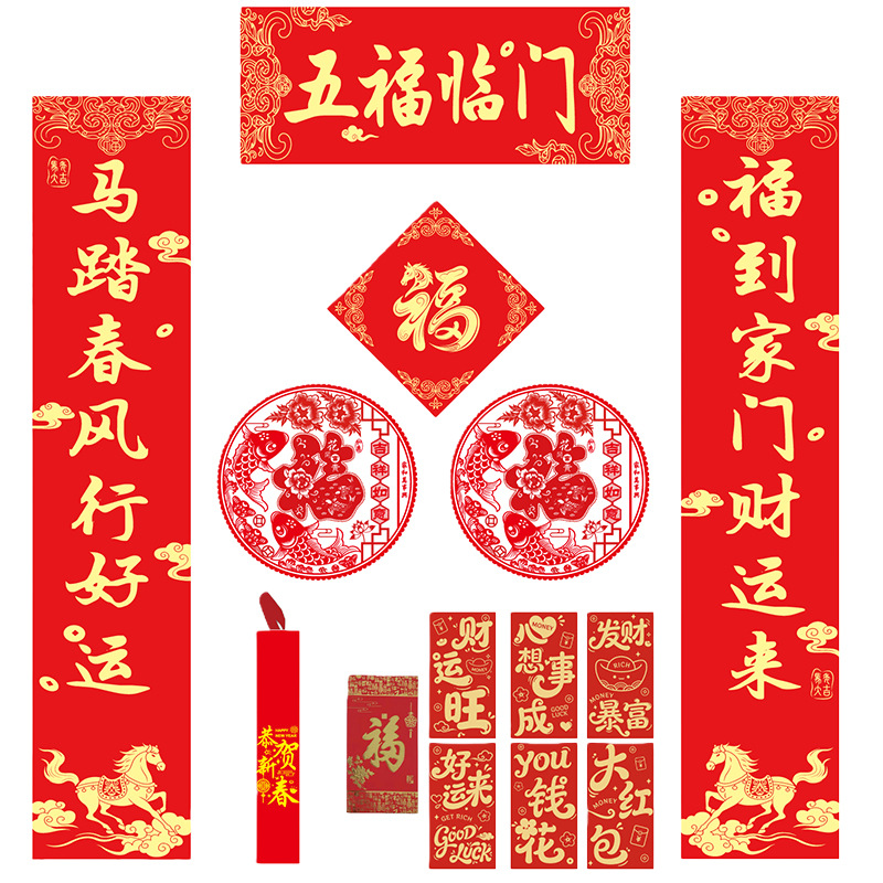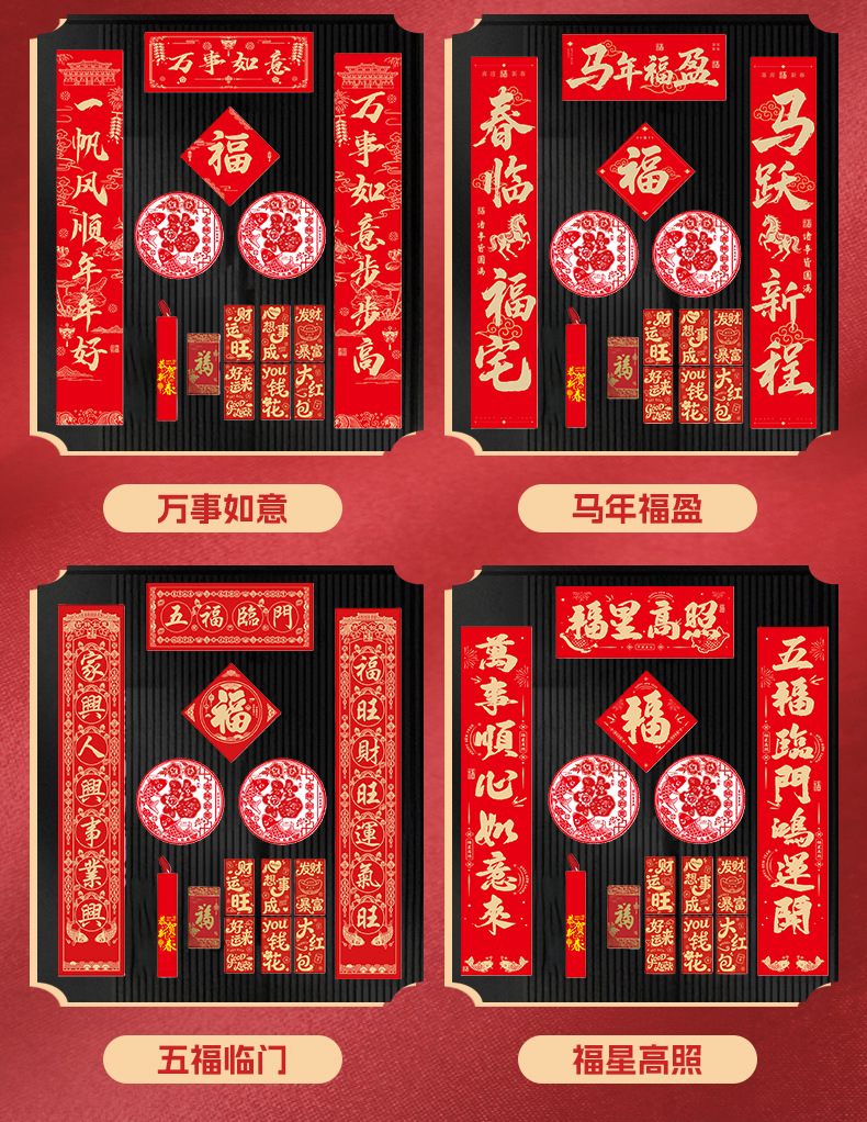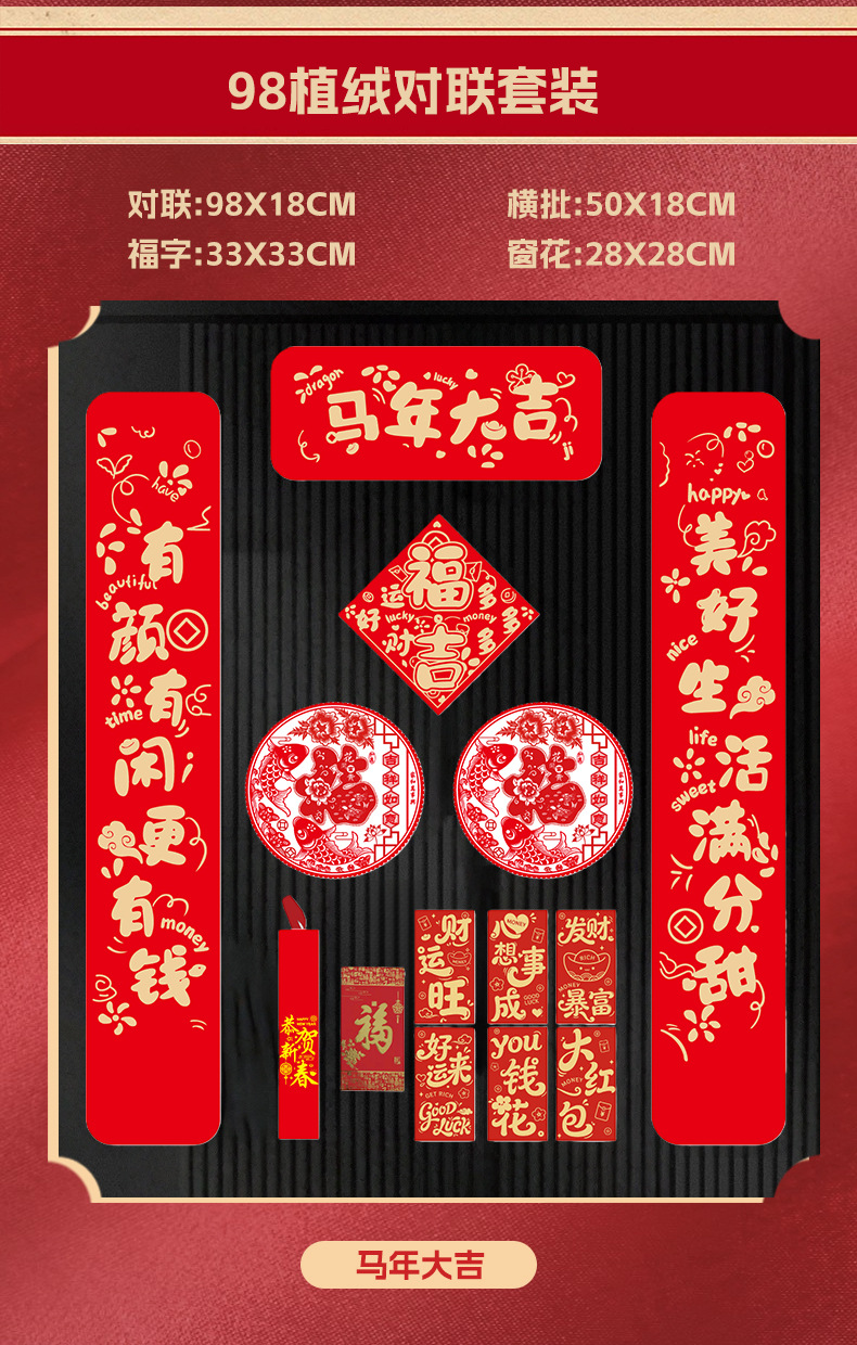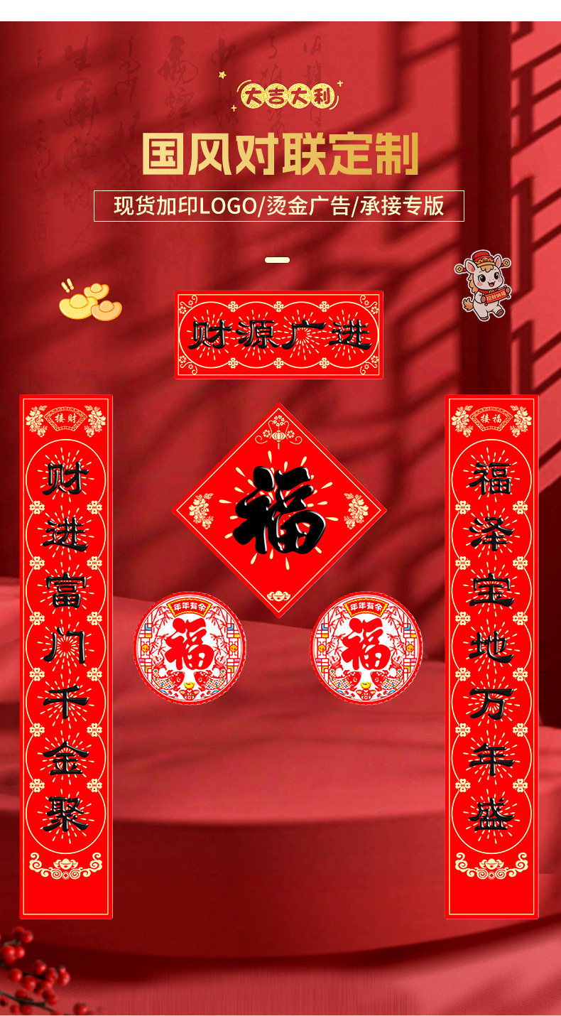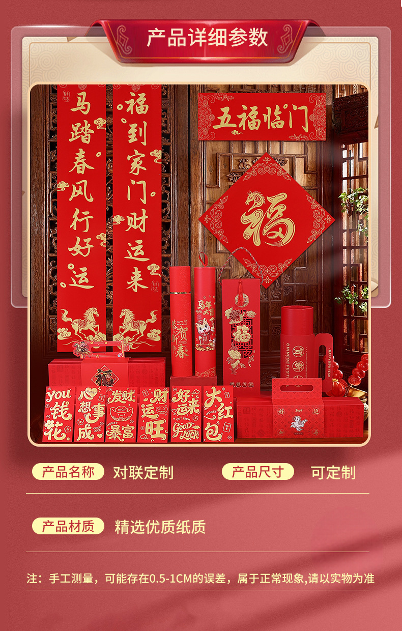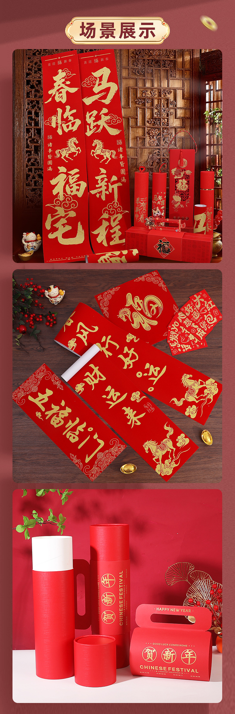 新春马年高档对联定制植绒烫金对联企业广告宣传礼品LOGO春联批货