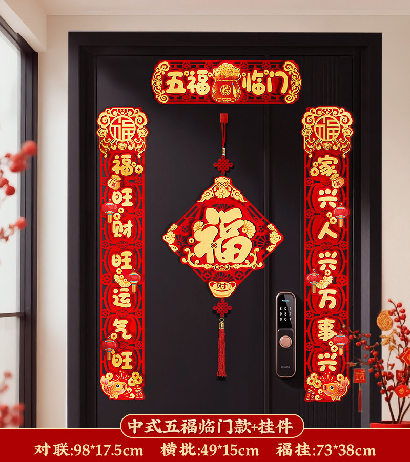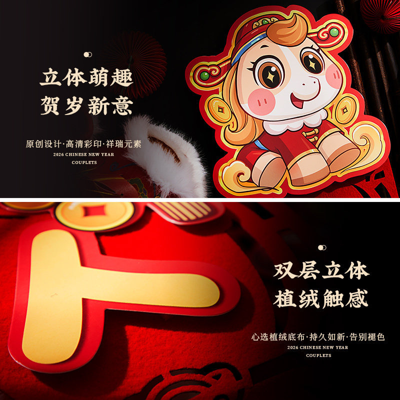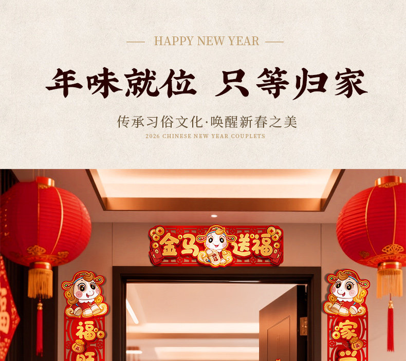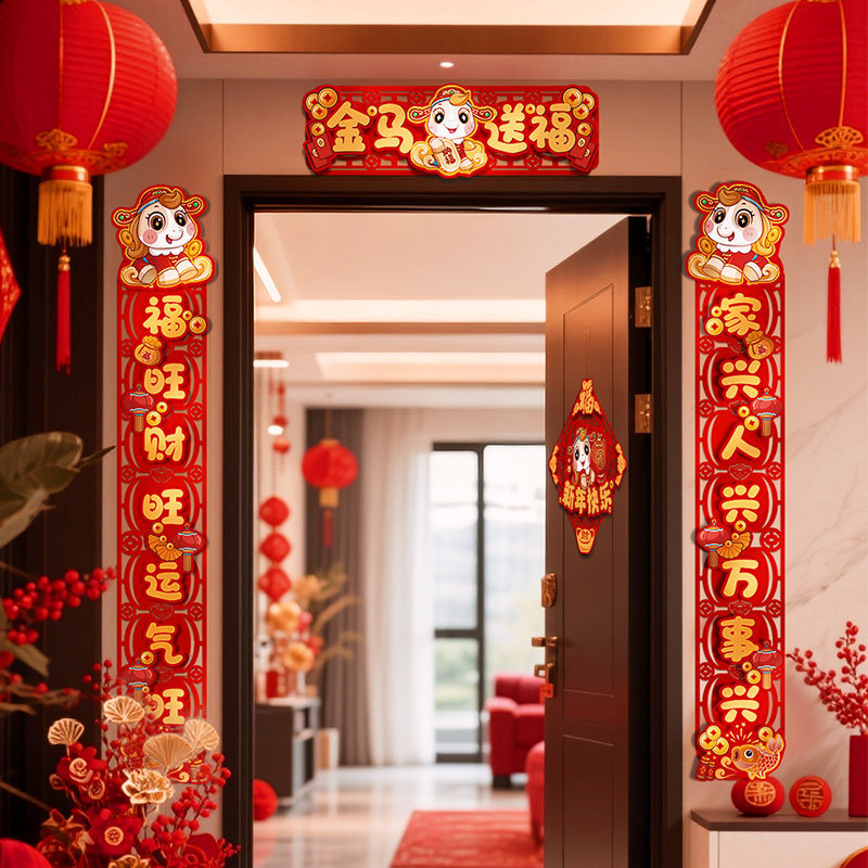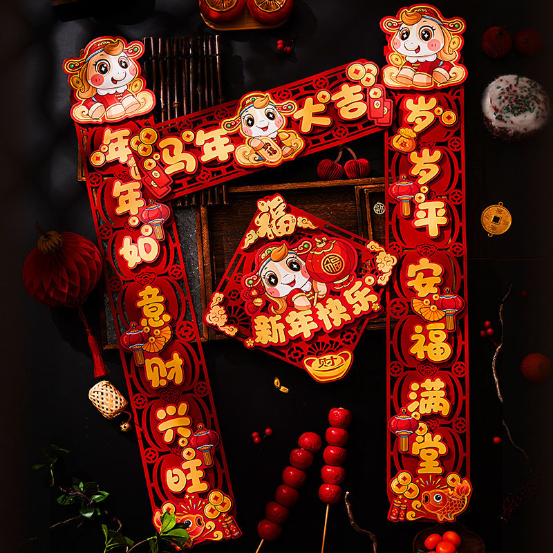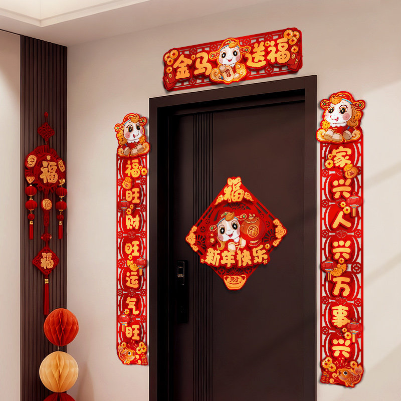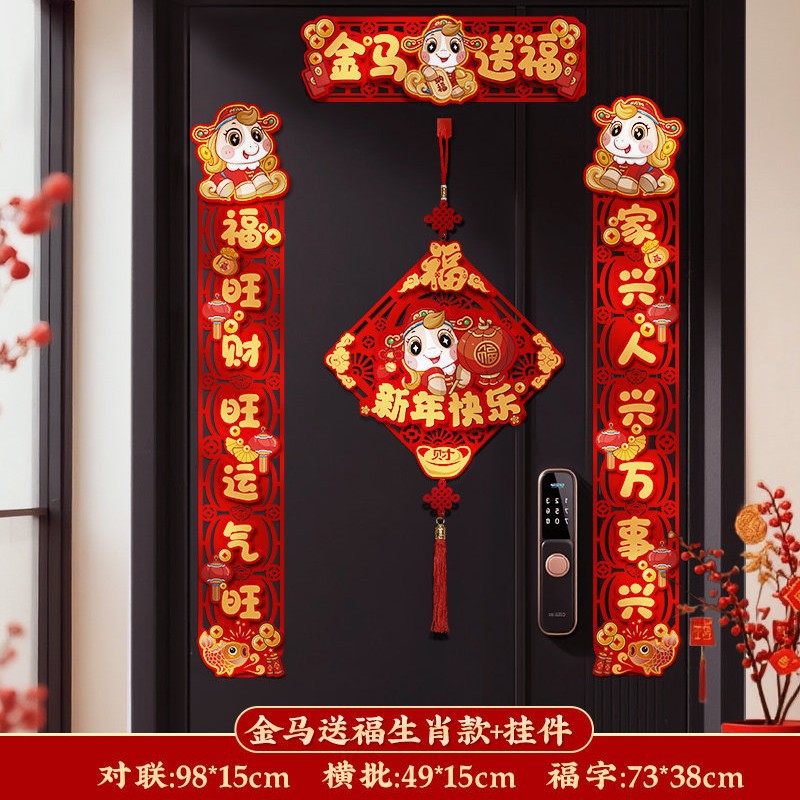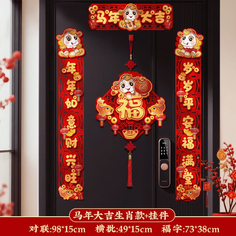 对联新年2026新款春联过年马年植绒贺年大门福字门贴套装春节装饰