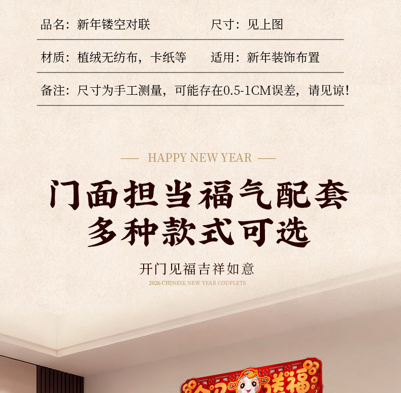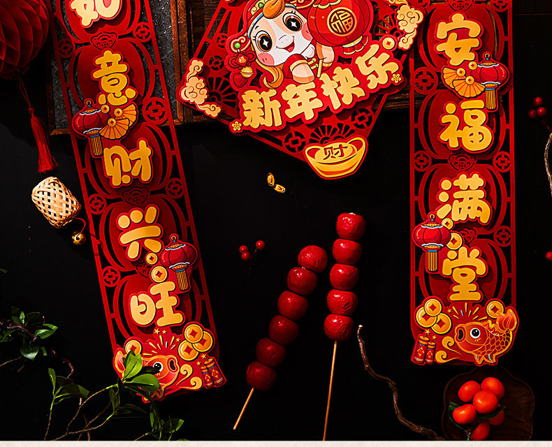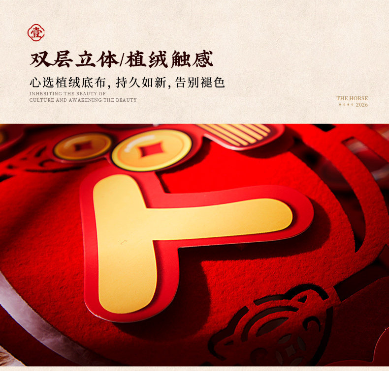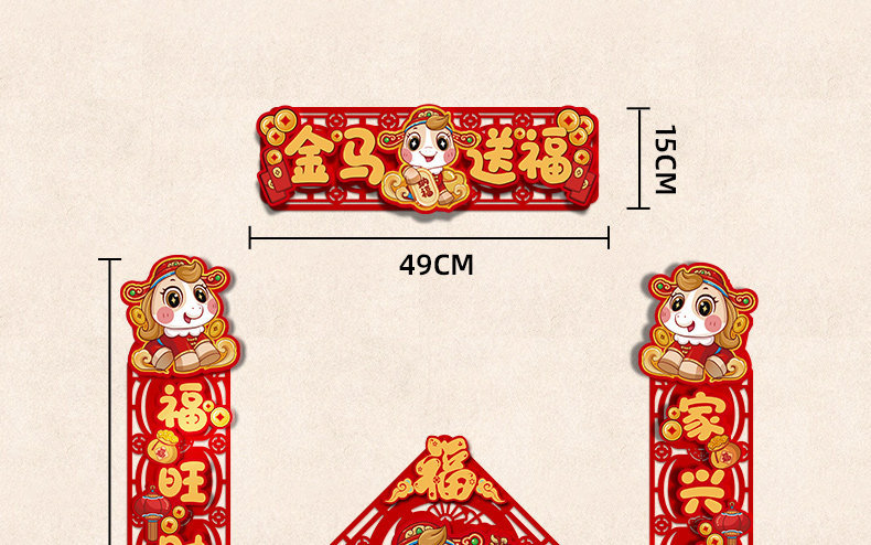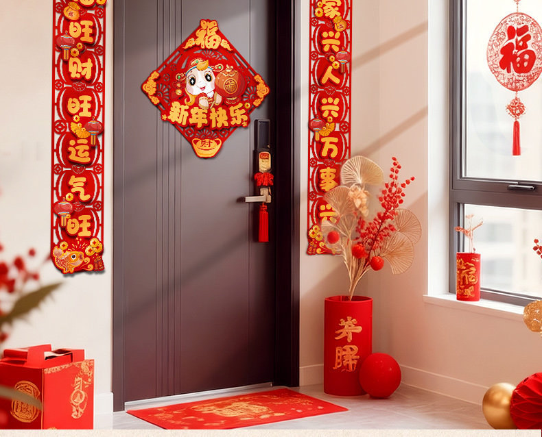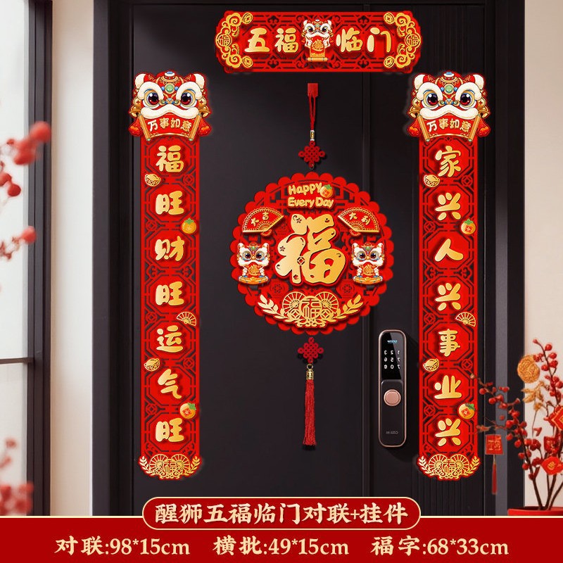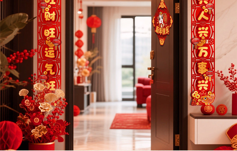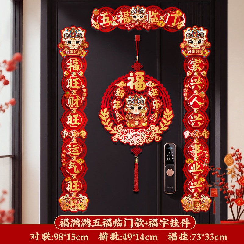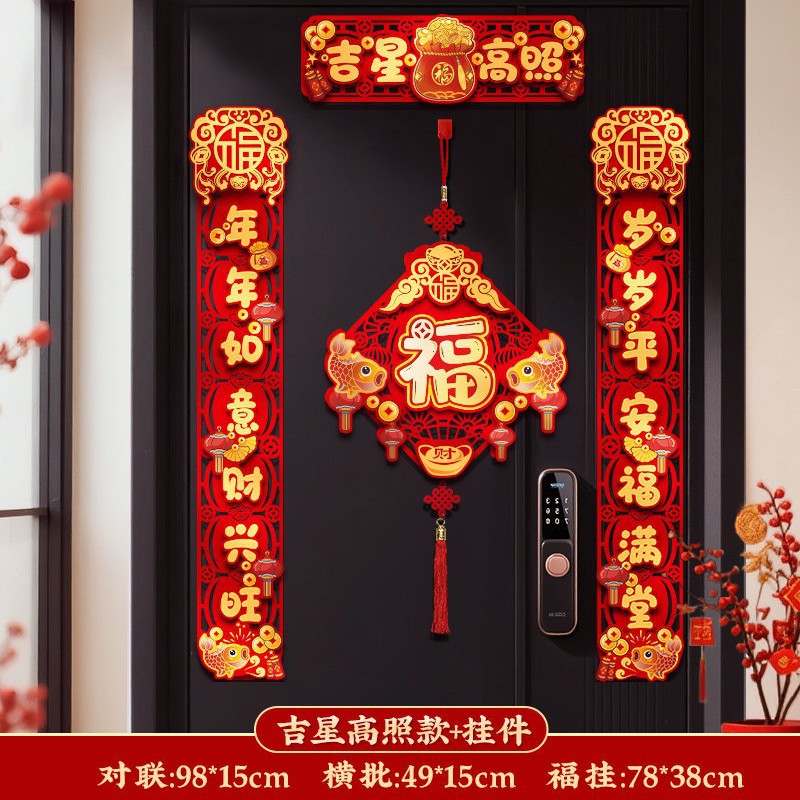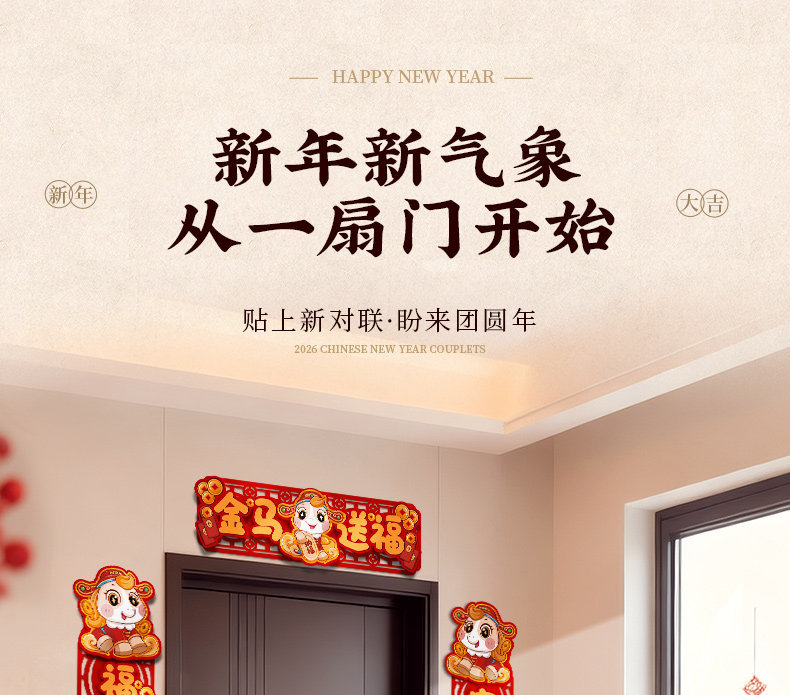 对联新年2026新款春联过年马年植绒贺年大门福字门贴套装春节装饰