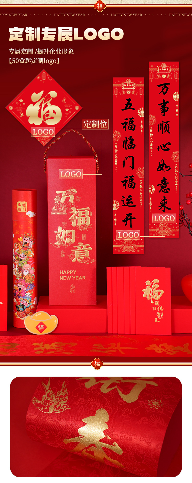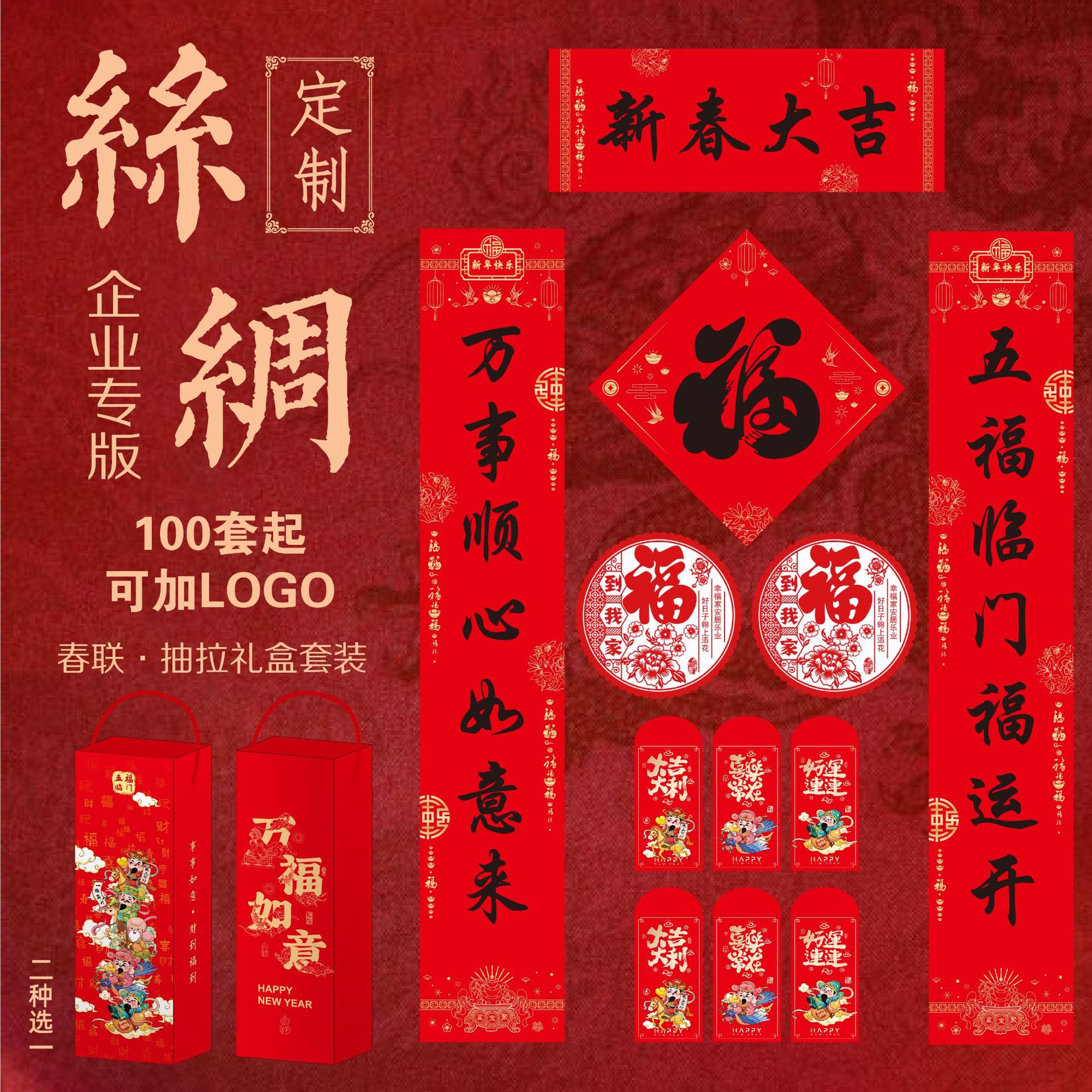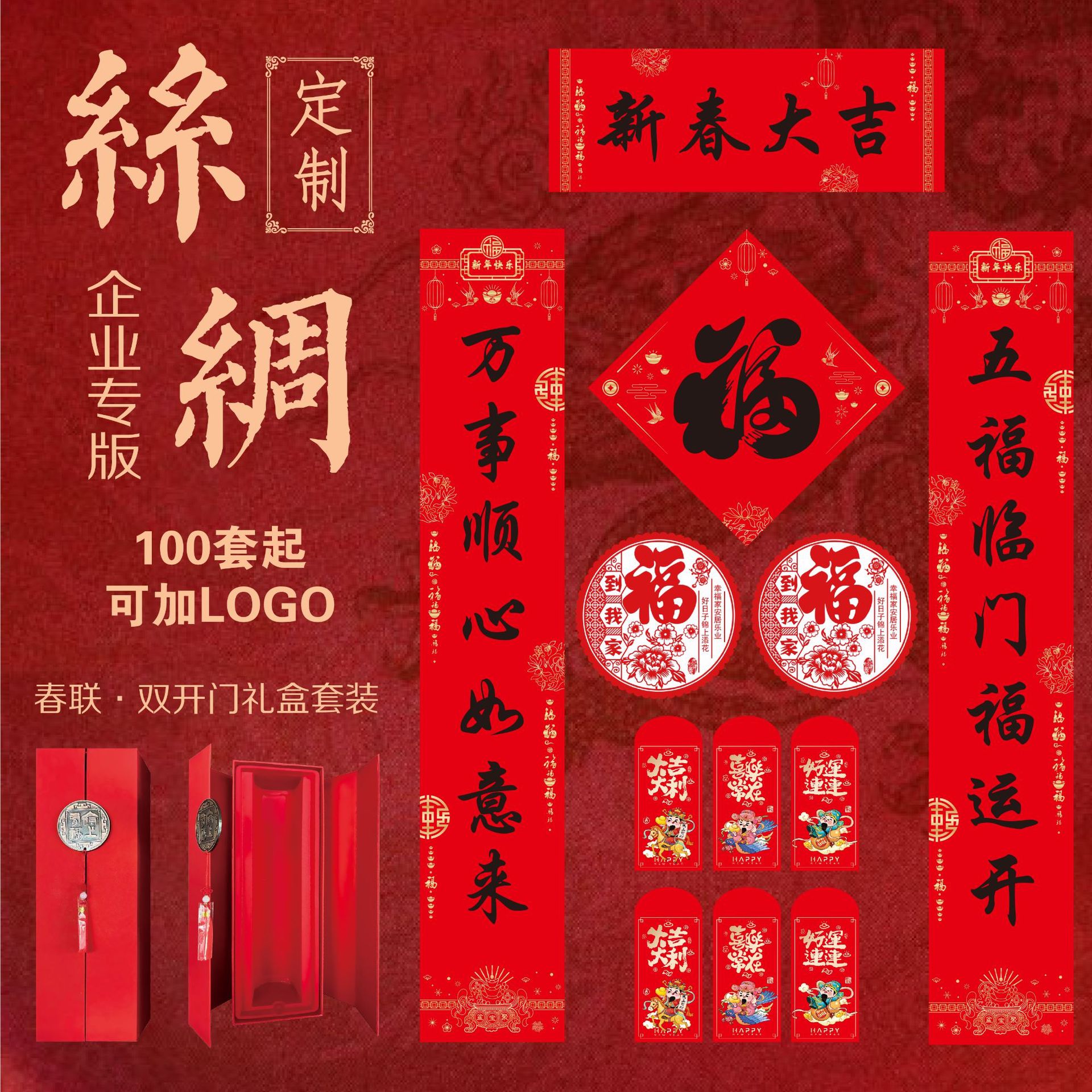 丝绸对联2026年马年新款春节对联批货礼盒春联福字大礼包定制logo