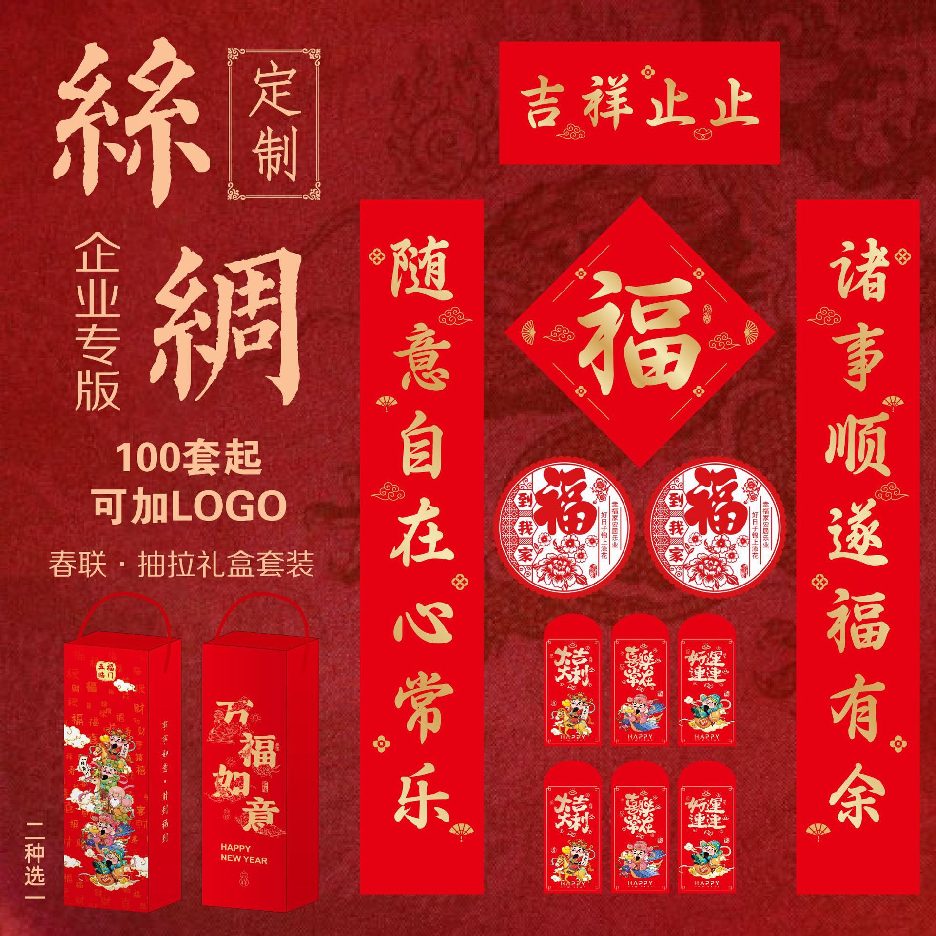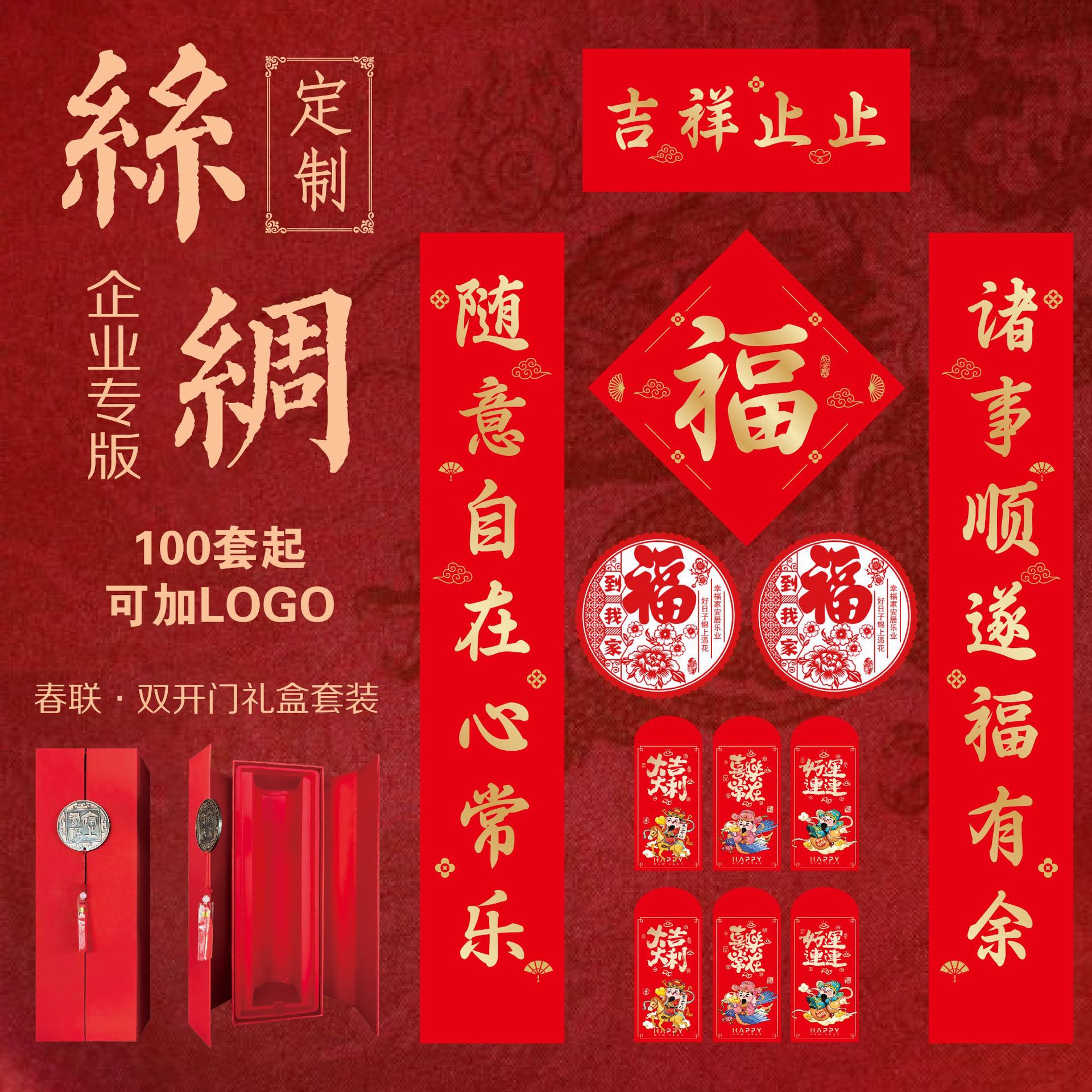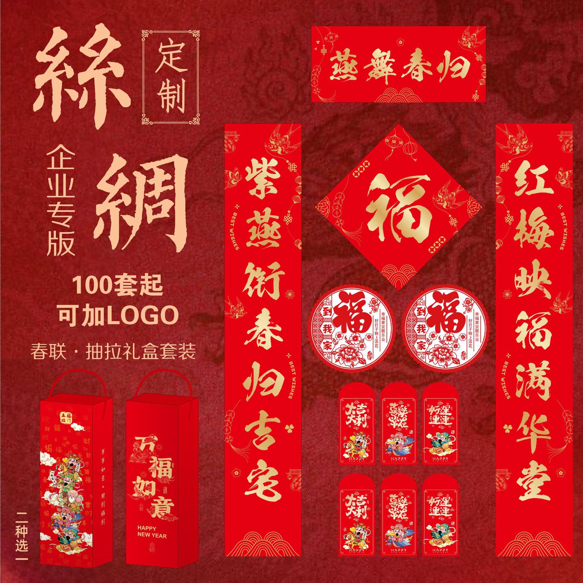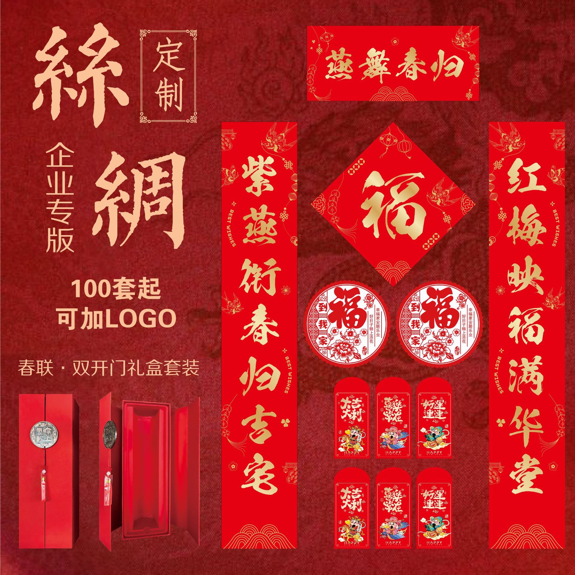 丝绸对联2026年马年新款春节对联批货礼盒春联福字大礼包定制logo
