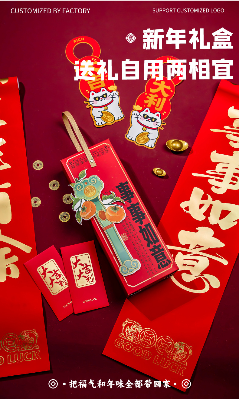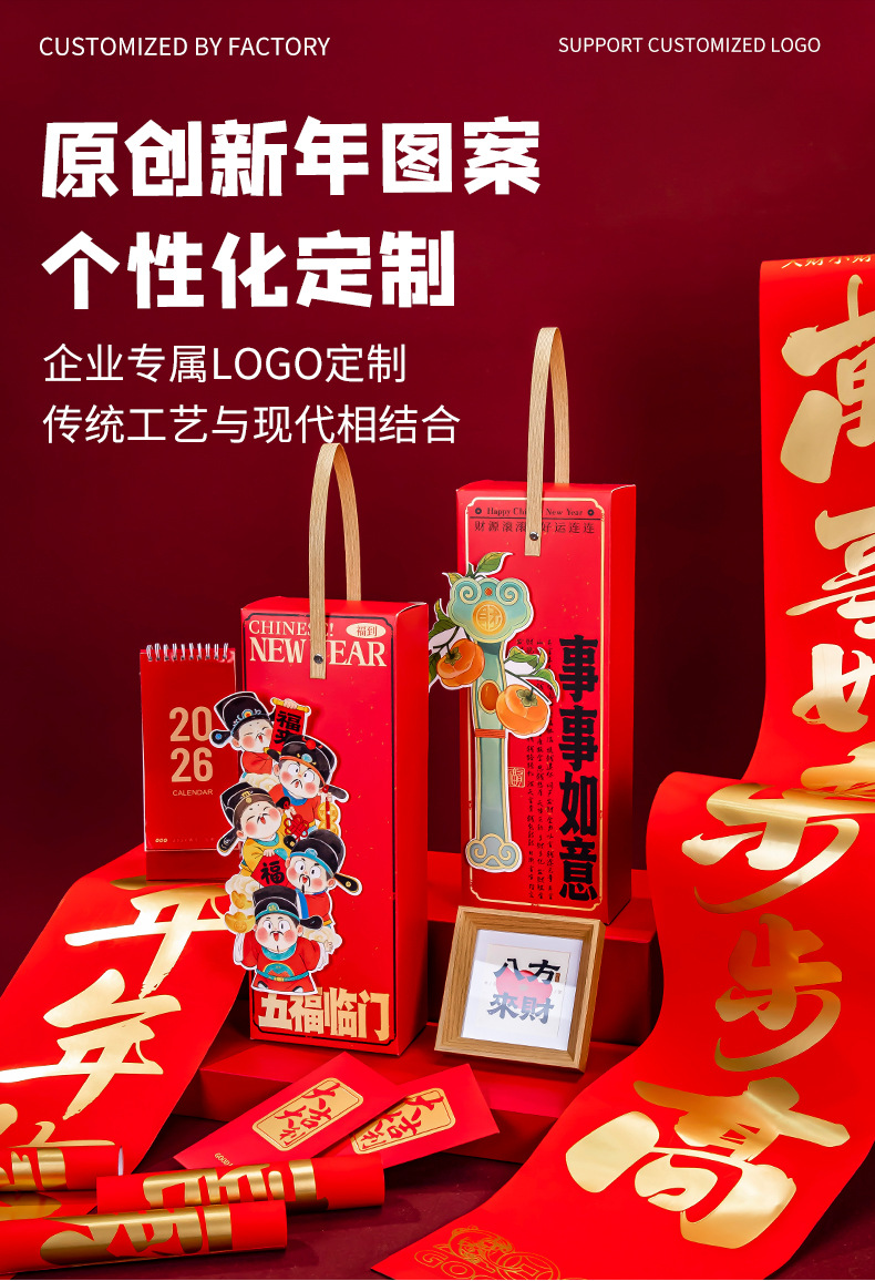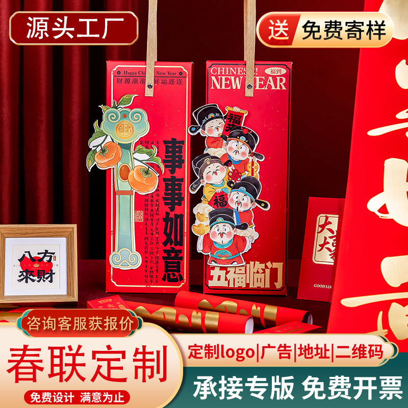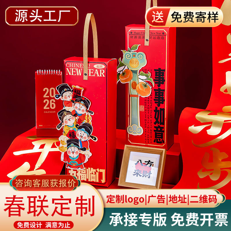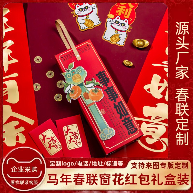 对联定制2026马年春联礼盒福字红包窗花套装印LOGO手提盒厂家批货