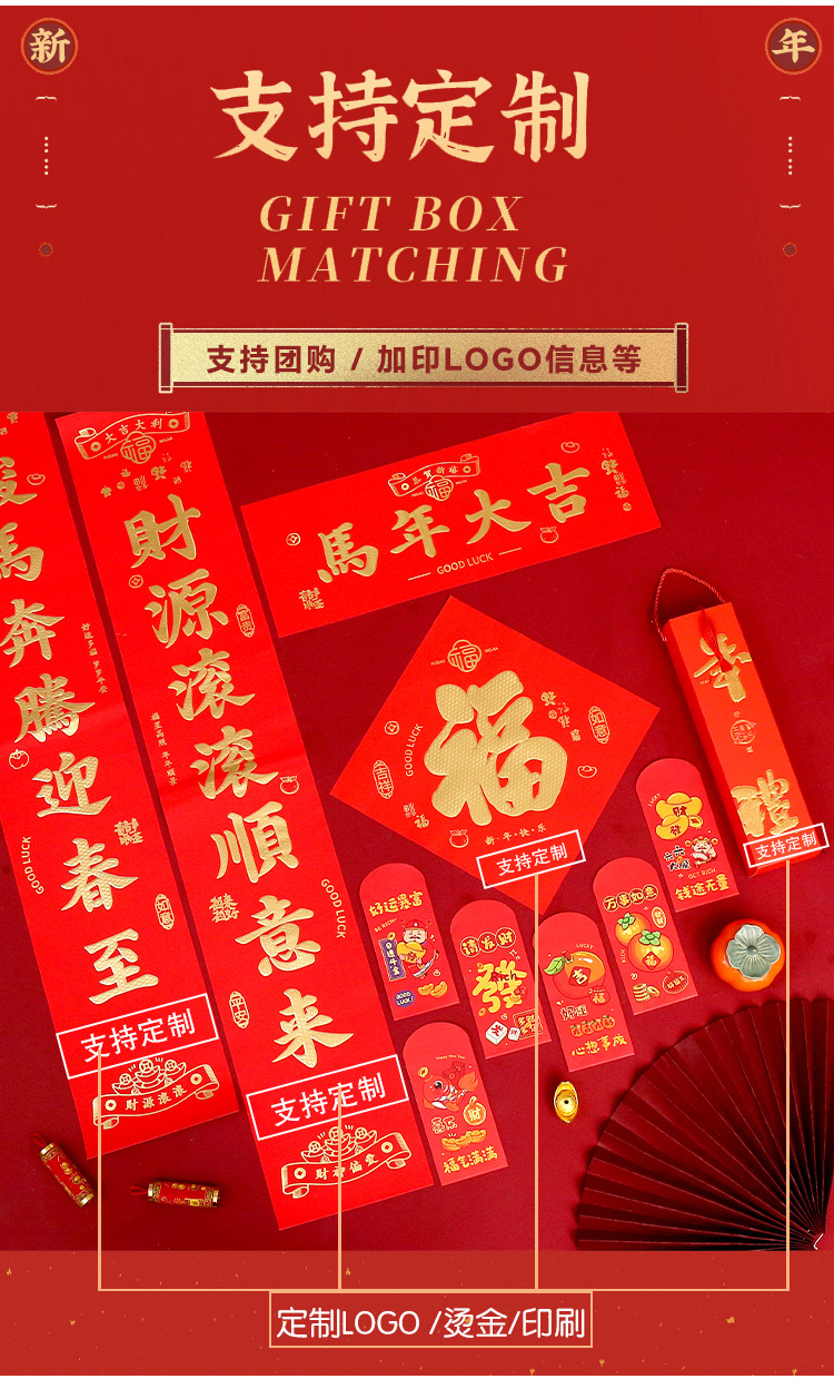 2026马年春节对联 磁吸丝绸春联 对联大礼包礼盒套装定制广告logo