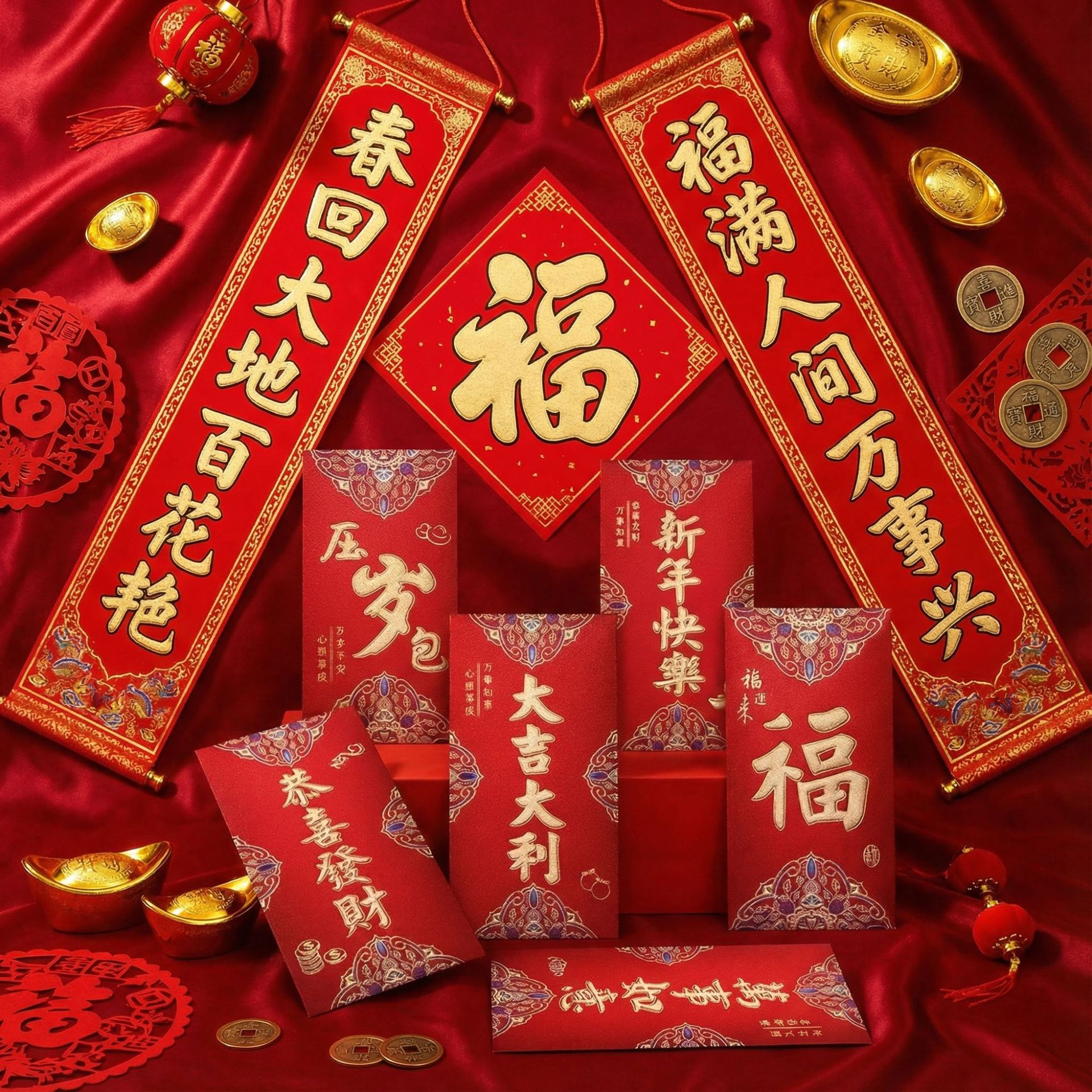 厂家直供耐晒不褪色春节对联定制 年货节企业LOGO春联 活动福利款