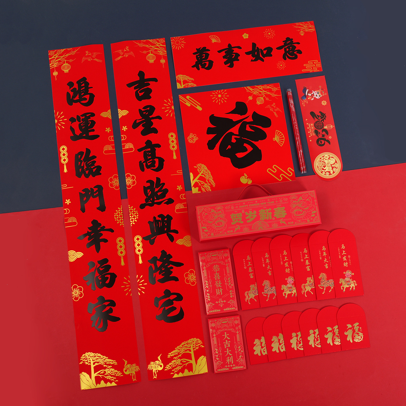 2026新款春联马年烫金大礼包套装对联批发可印logo专版印刷定制
