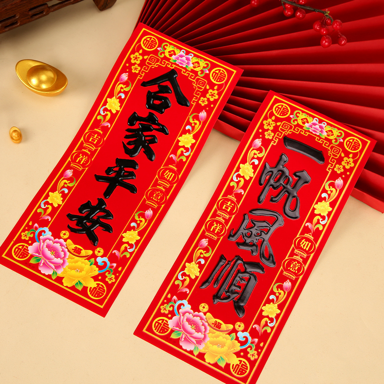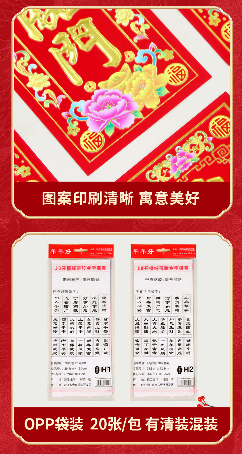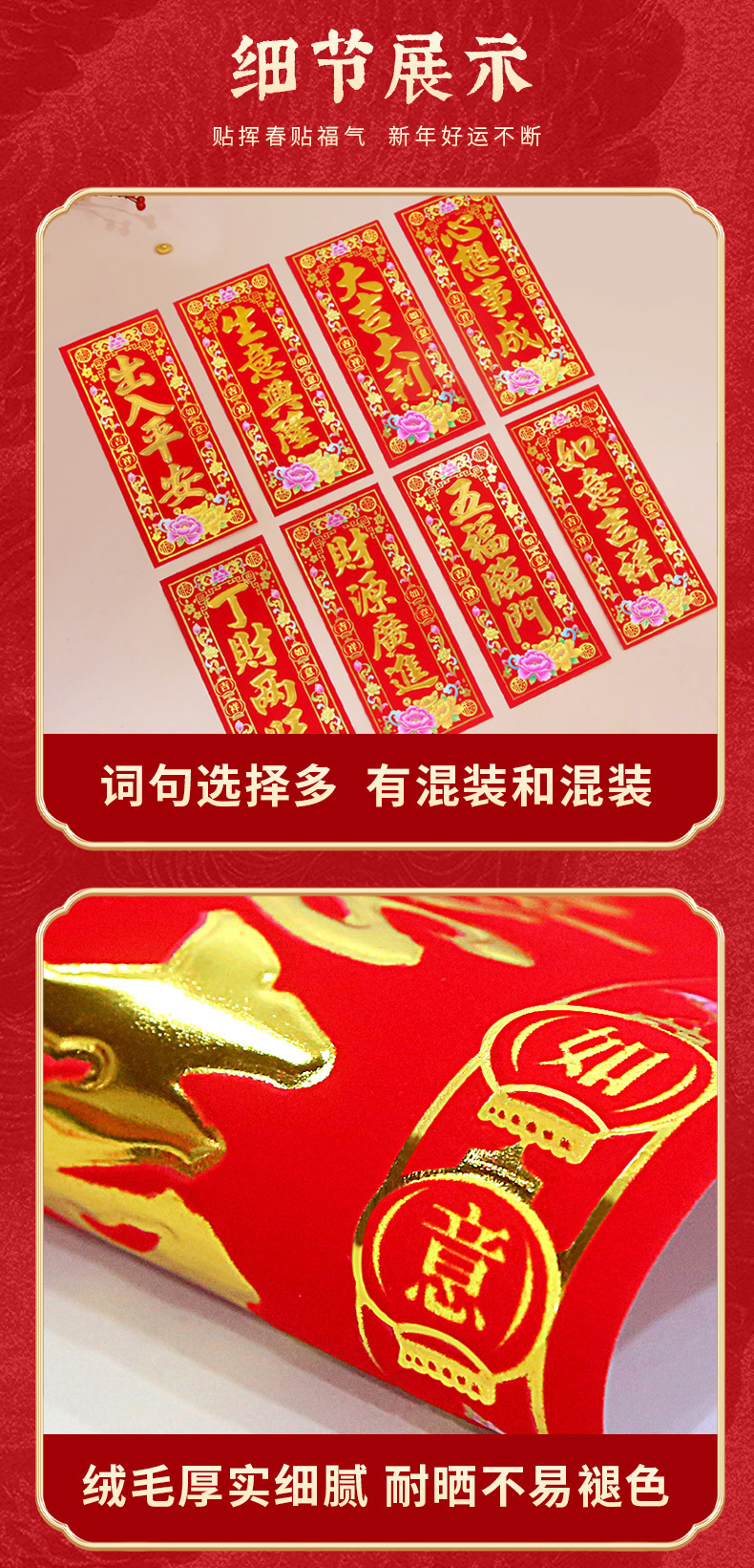 年年好2026春节门对春联带胶四字竖联过年烫金字春晖植绒小对联