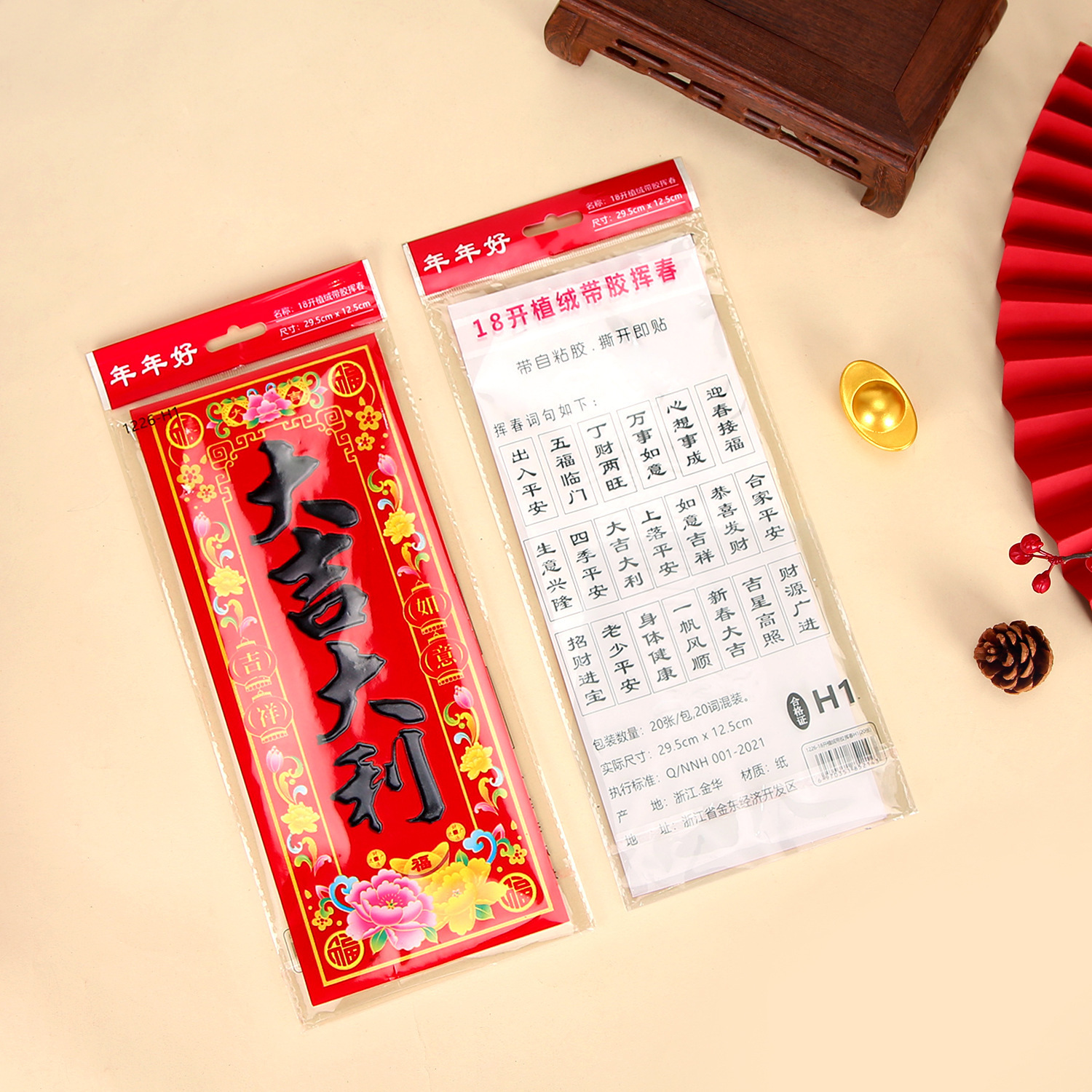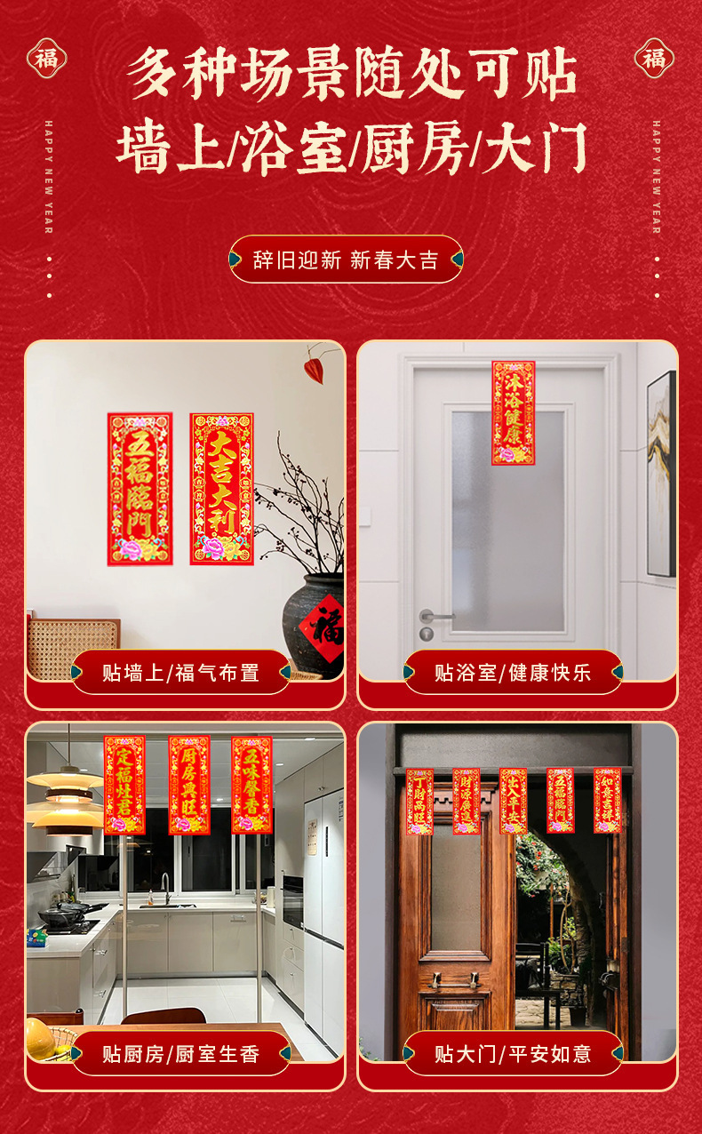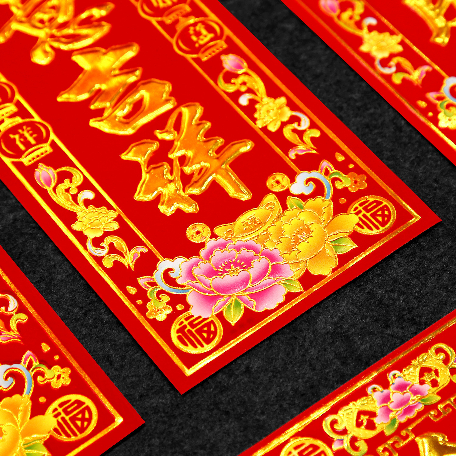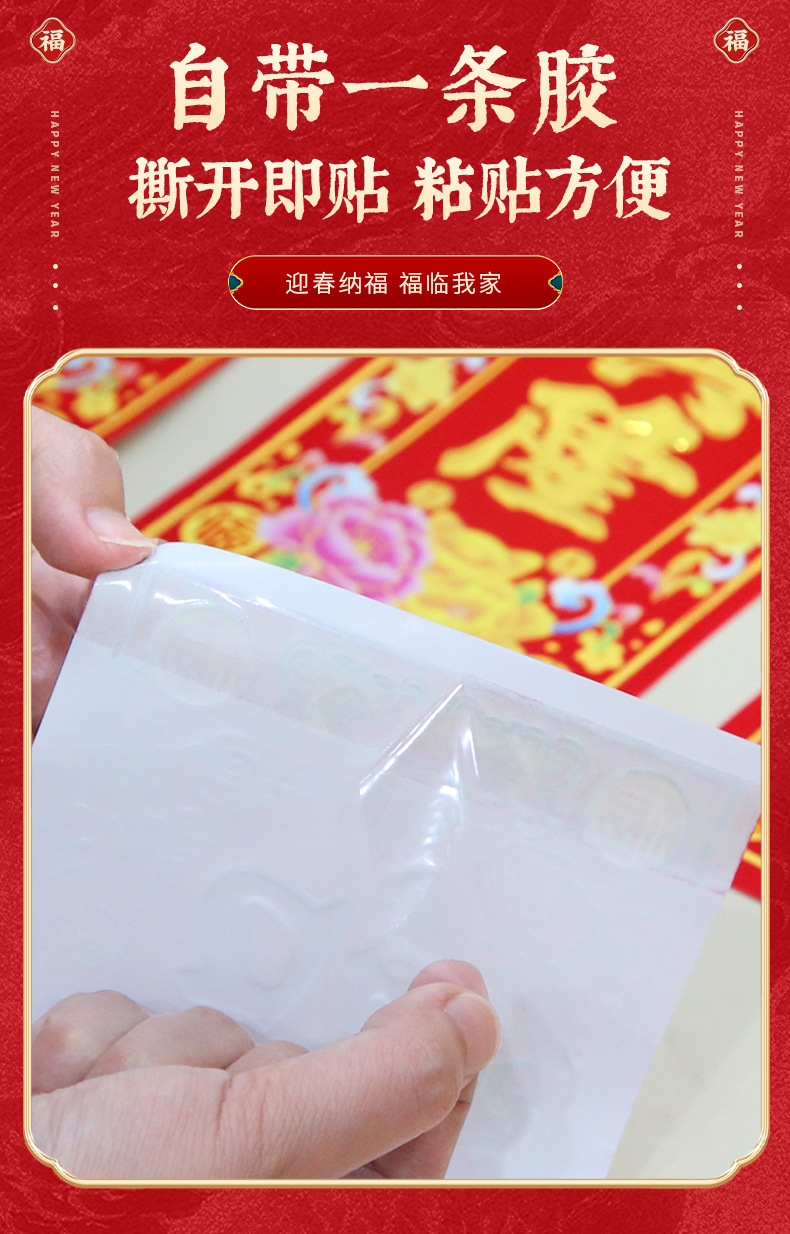 年年好2026春节门对春联带胶四字竖联过年烫金字春晖植绒小对联