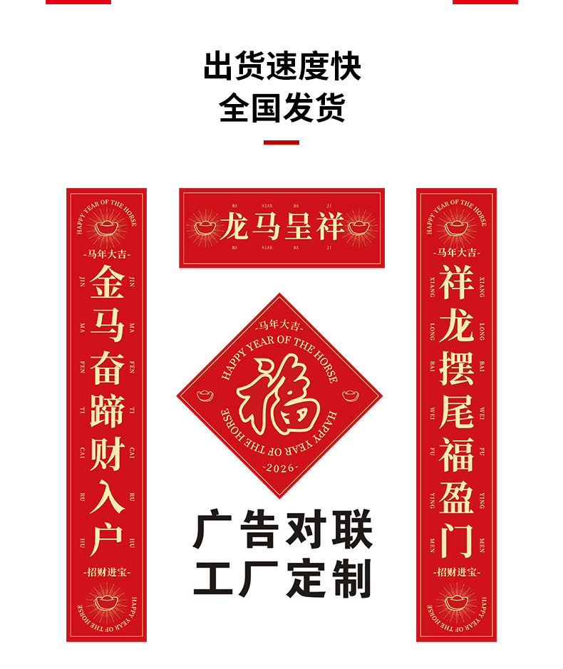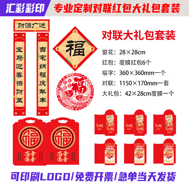 2026马年对联大礼包定制批发春联福字加印LOGO【1000件起免邮】