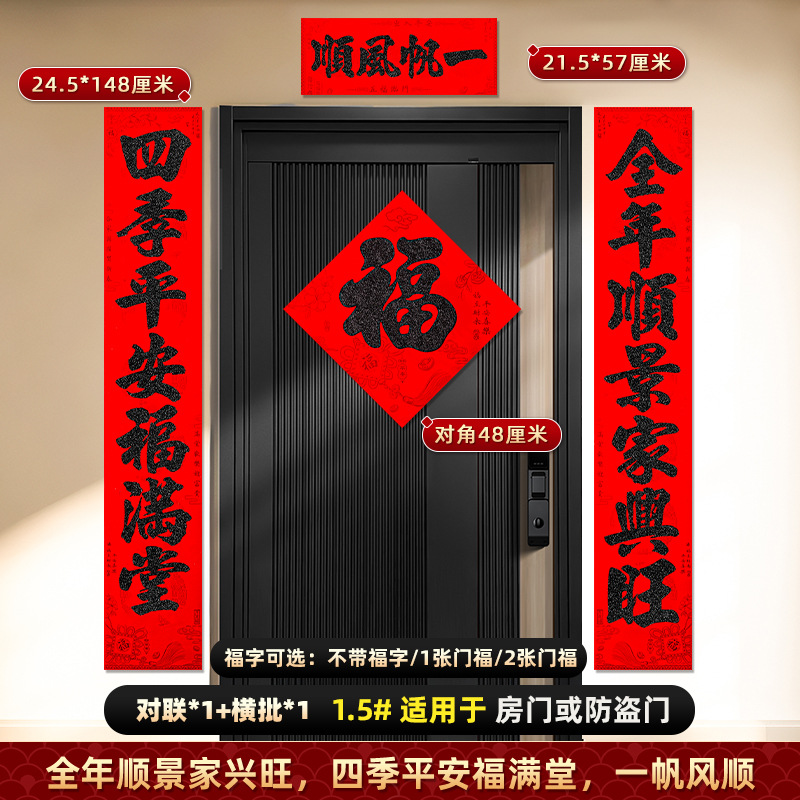 马年对联2026新款春节植绒黑字春联福字门贴新年过年大门装饰用品