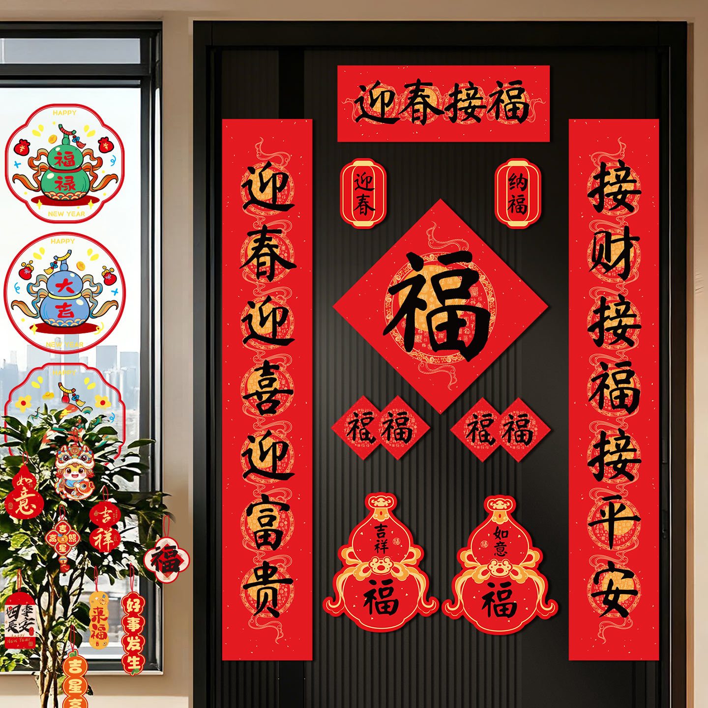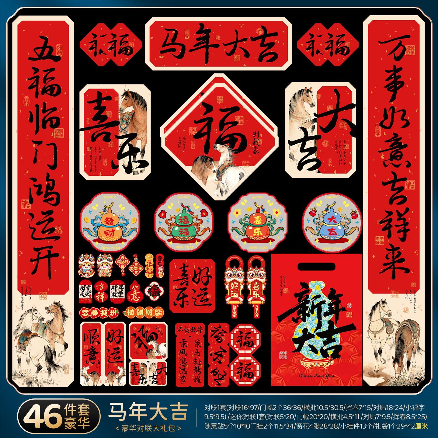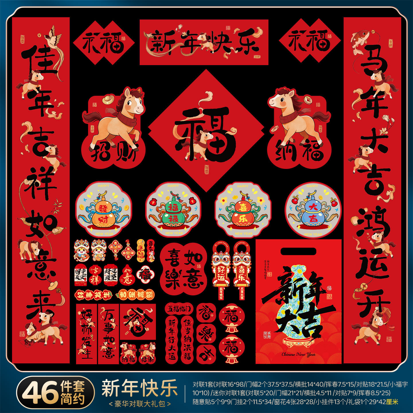 2026春节对联批货马年新年家用新款大礼包福字门贴纸装饰LOGO印制