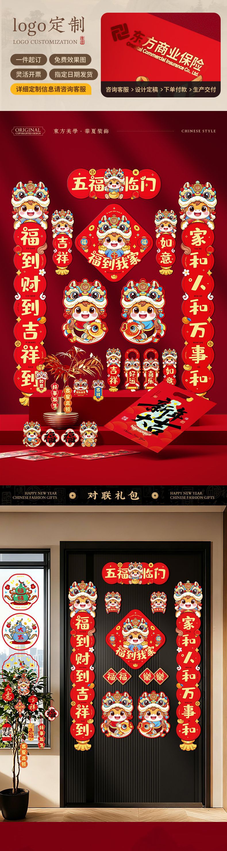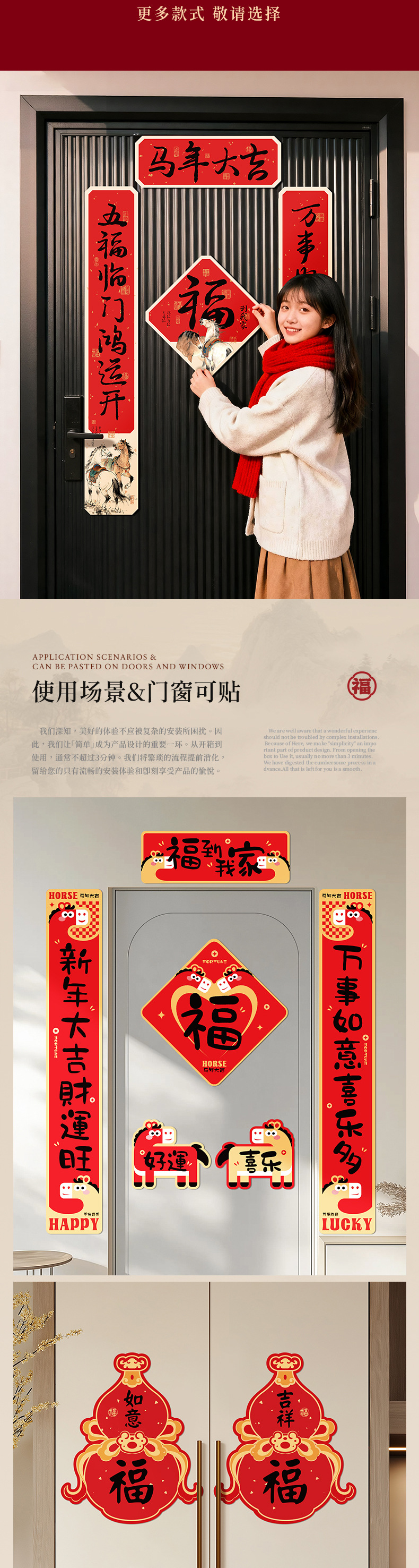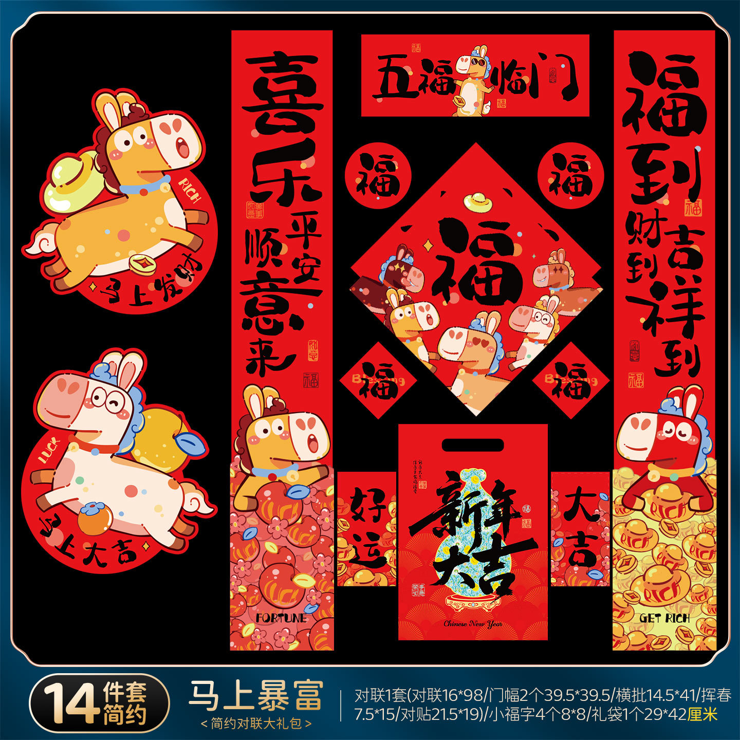 2026春节对联批货马年新年家用新款大礼包福字门贴纸装饰LOGO印制