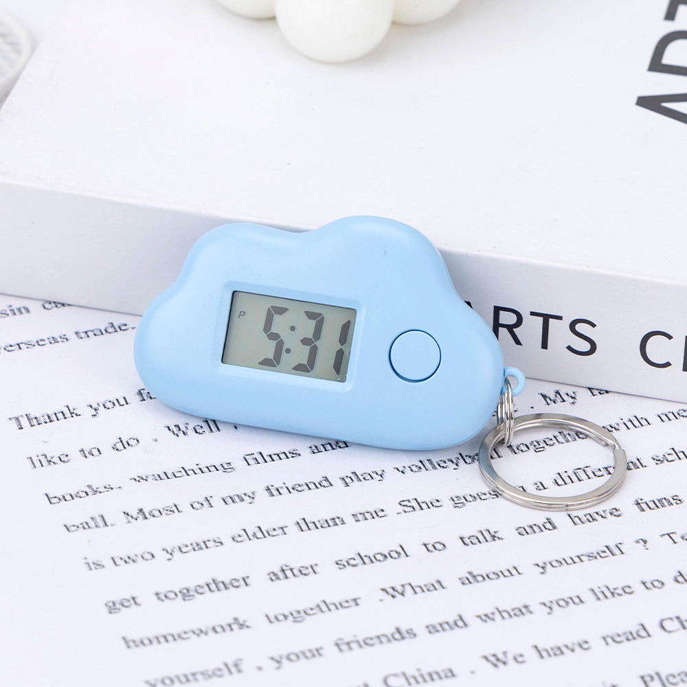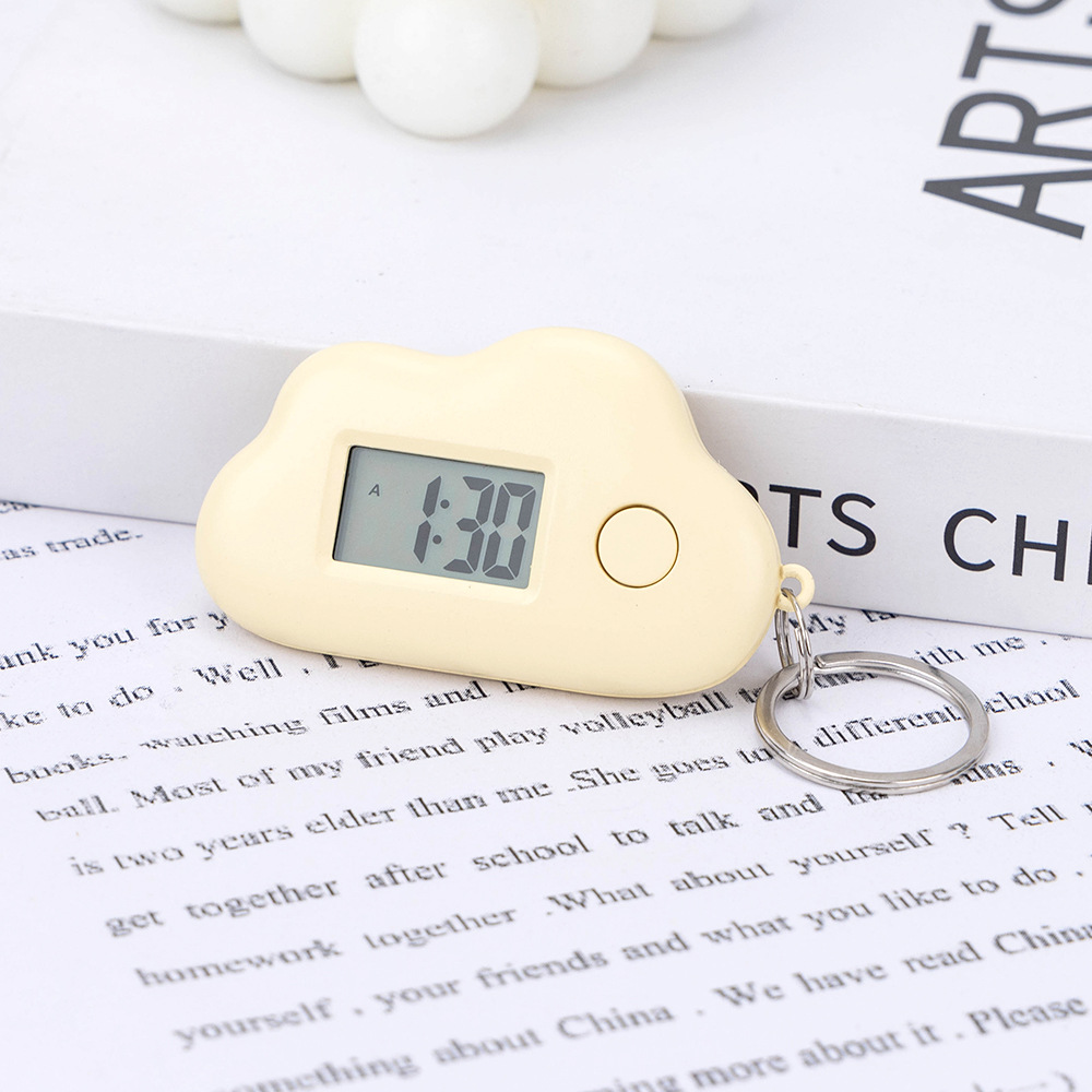 马卡龙背包钥匙扣学生云朵电子挂表夜光款显示时间日期时钟电子钟