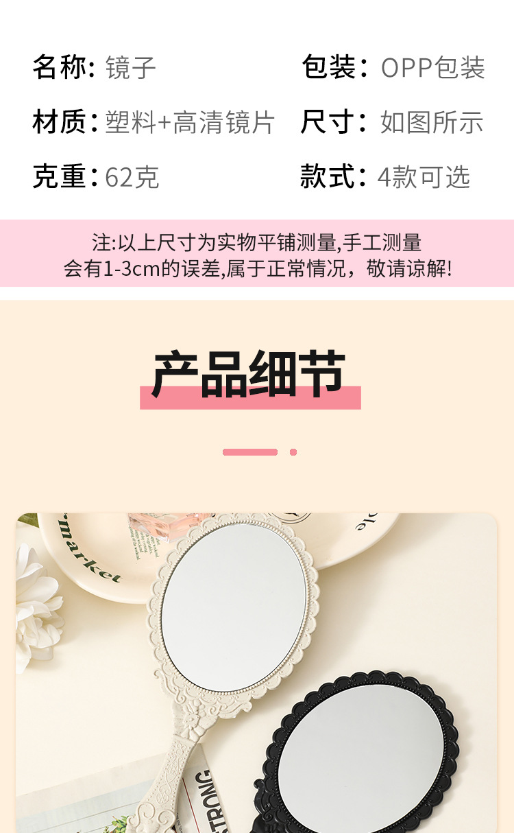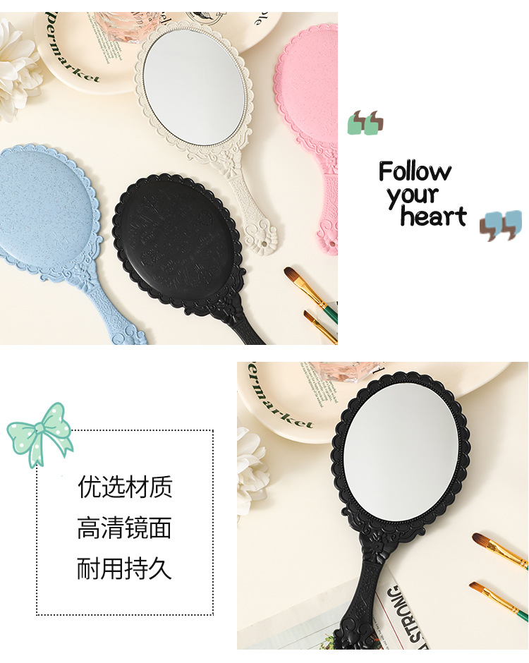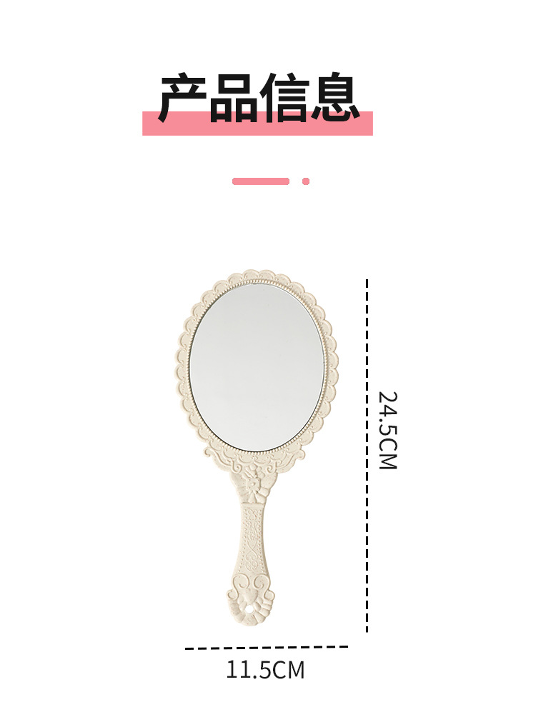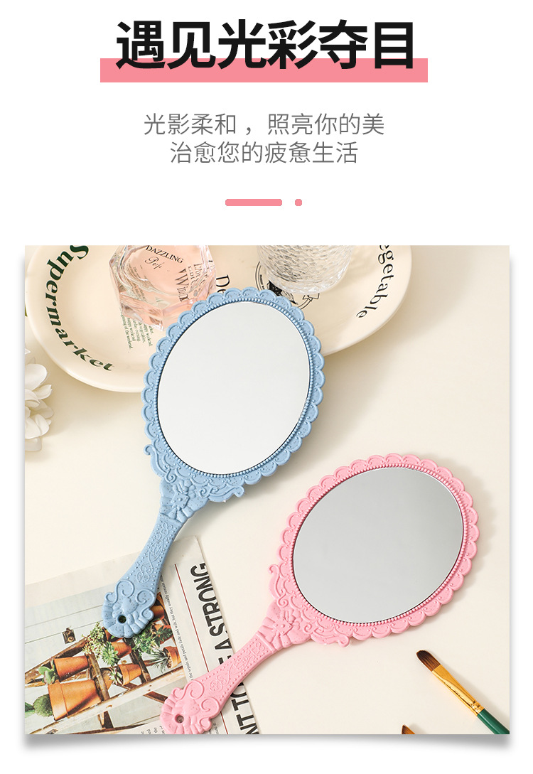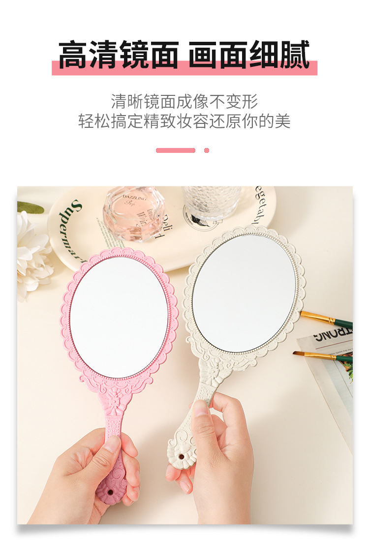 麦秸秆手柄化妆镜复古欧式花纹大号手持镜随身便携工厂批发镜子