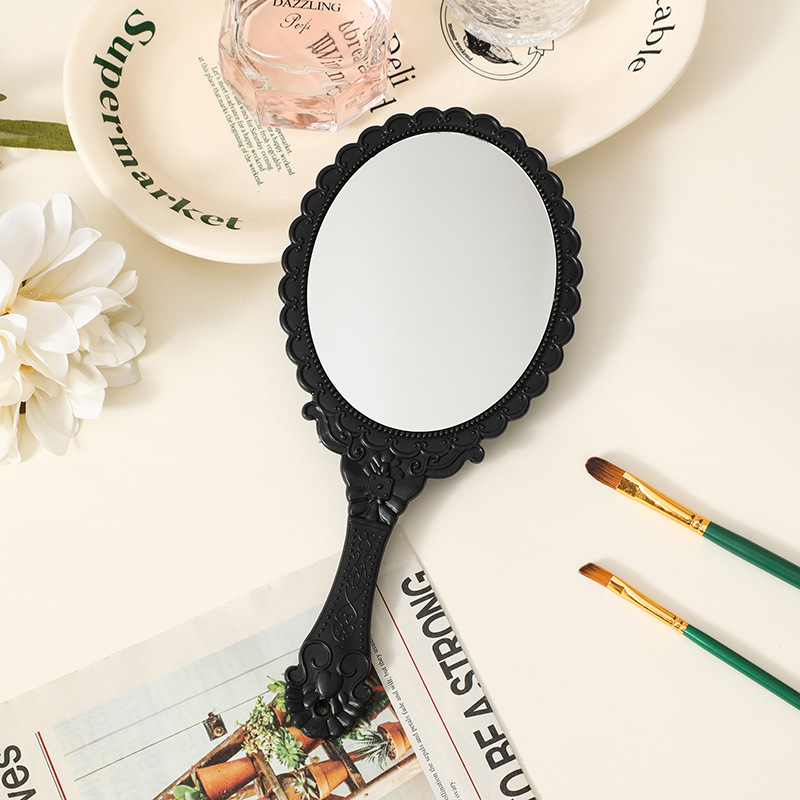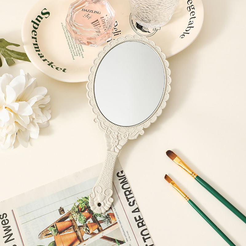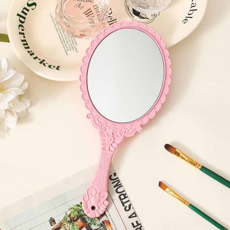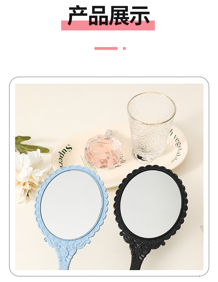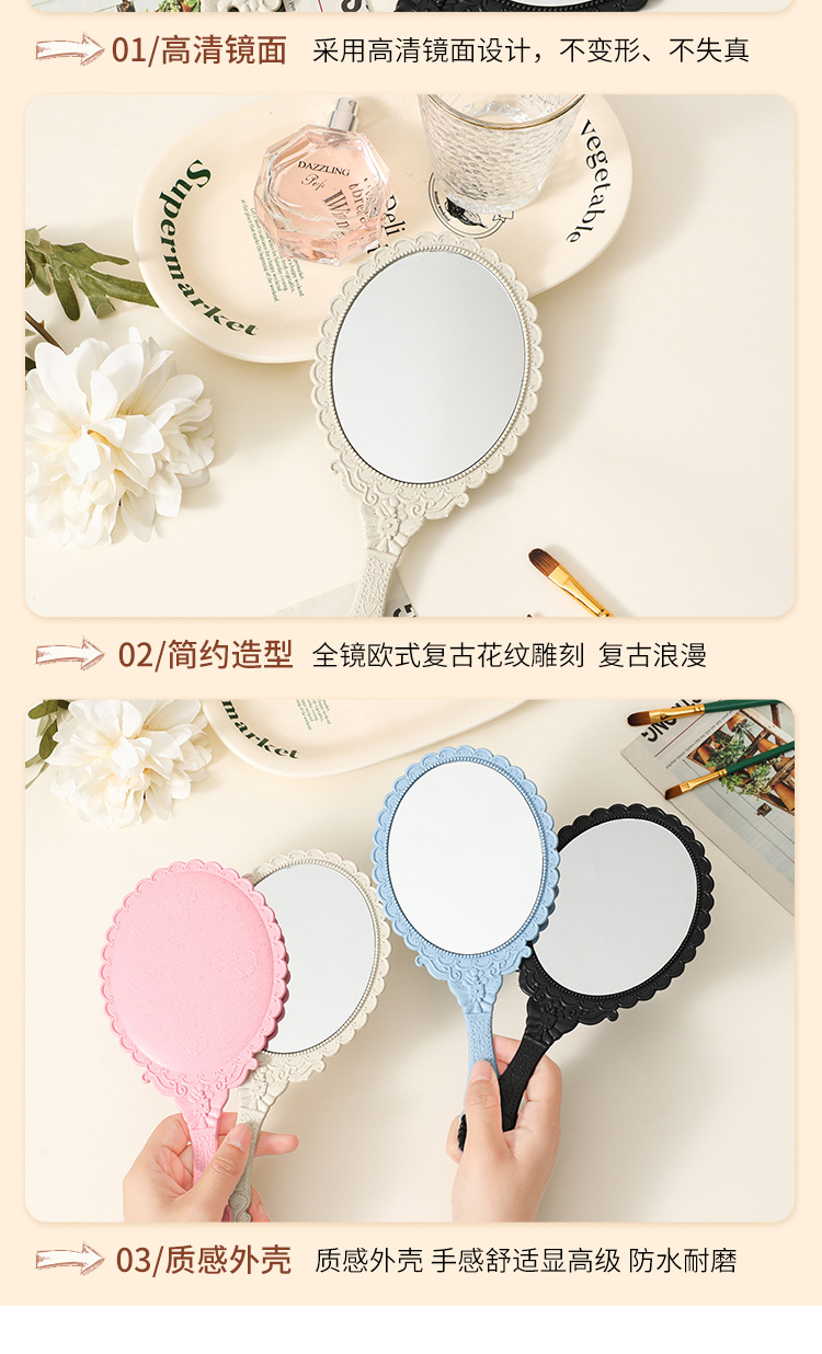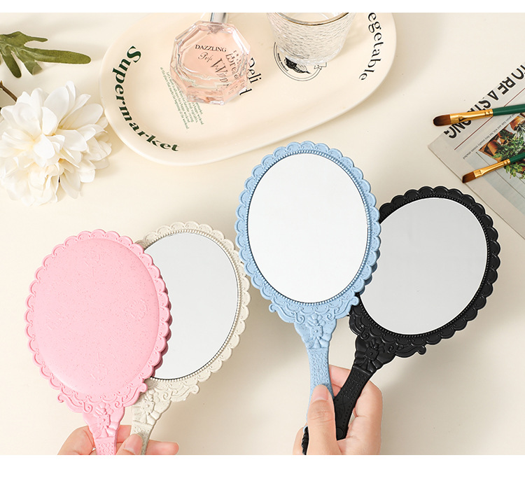 麦秸秆手柄化妆镜复古欧式花纹大号手持镜随身便携工厂批发镜子