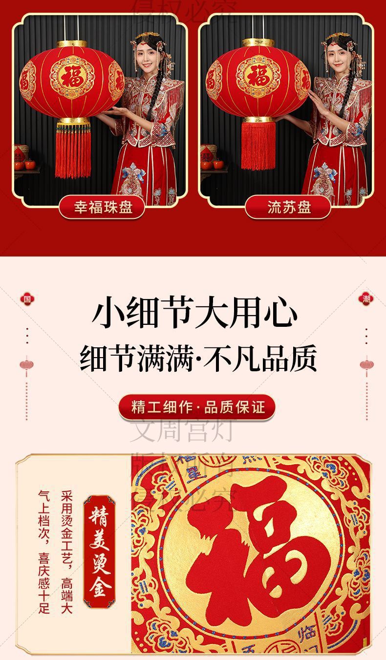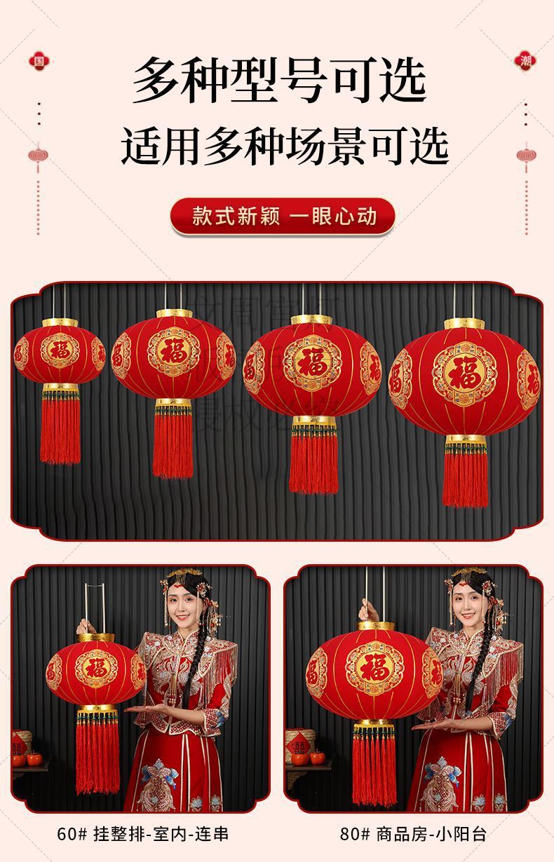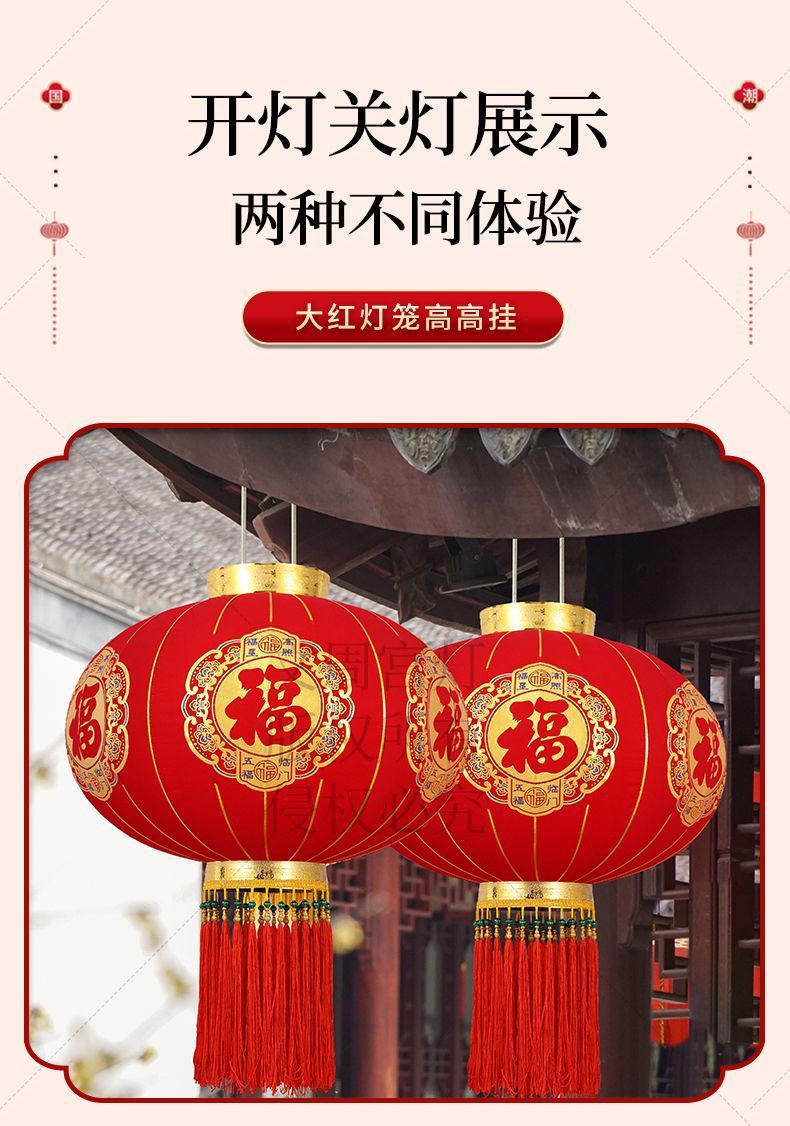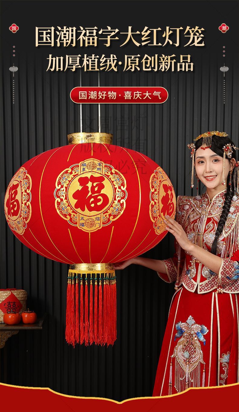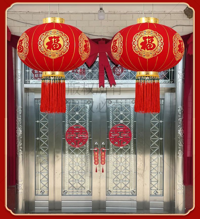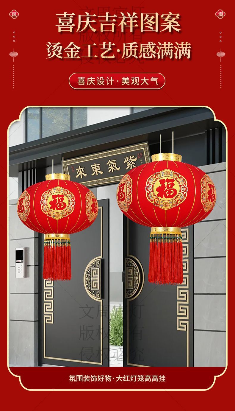 2026新款乔迁之喜长杆灯笼新年户外春节阳台过年大门口一对植绒布