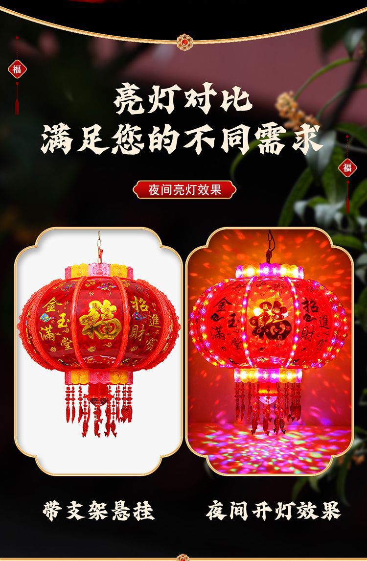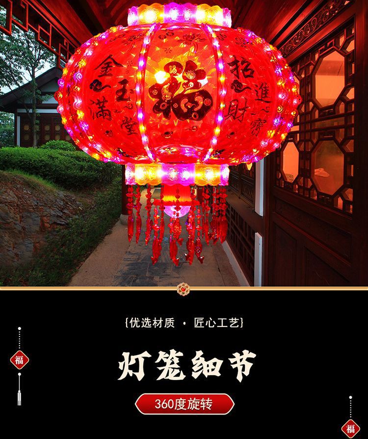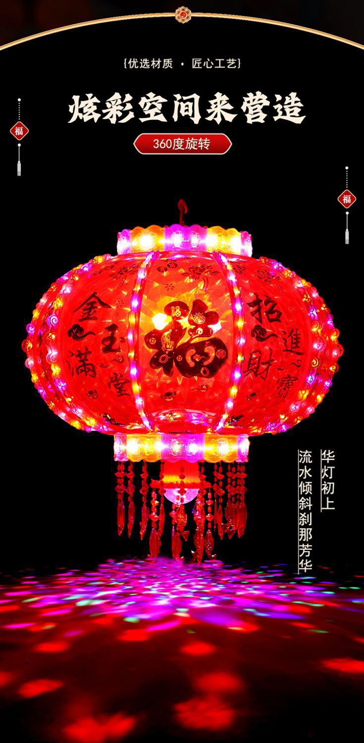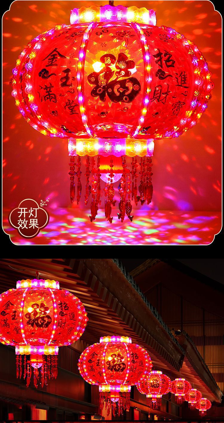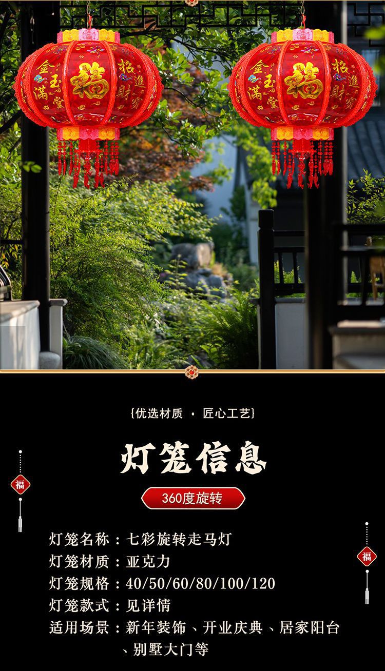春节阳台大门口2026新款LED七彩新年发光灯笼一对旋转走马灯