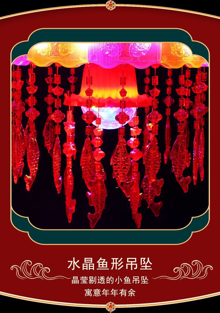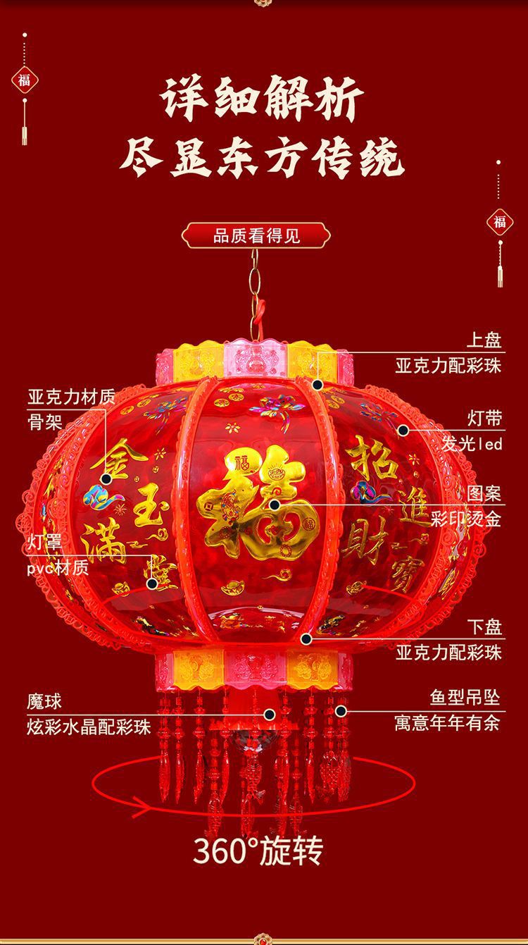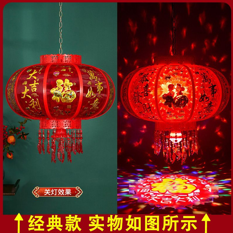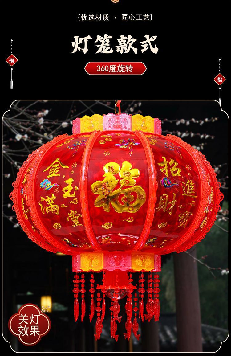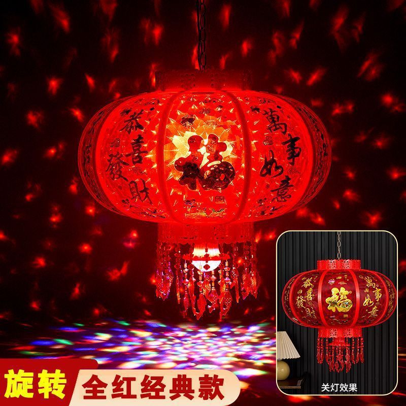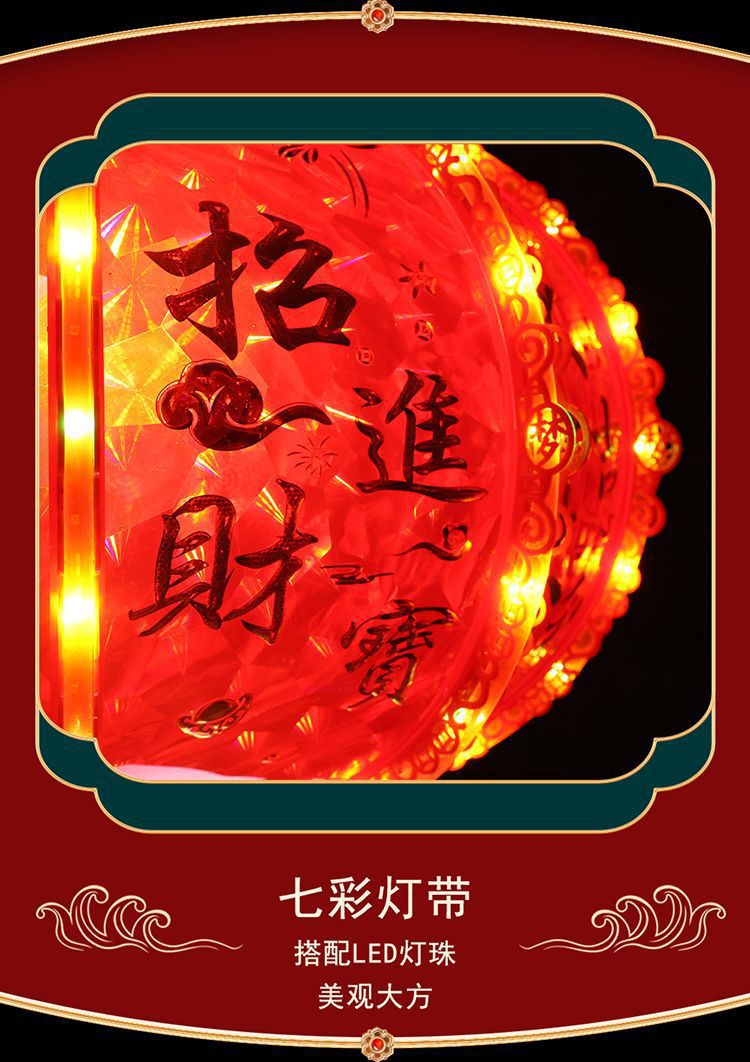 春节阳台大门口2026新款LED七彩新年发光灯笼一对旋转走马灯