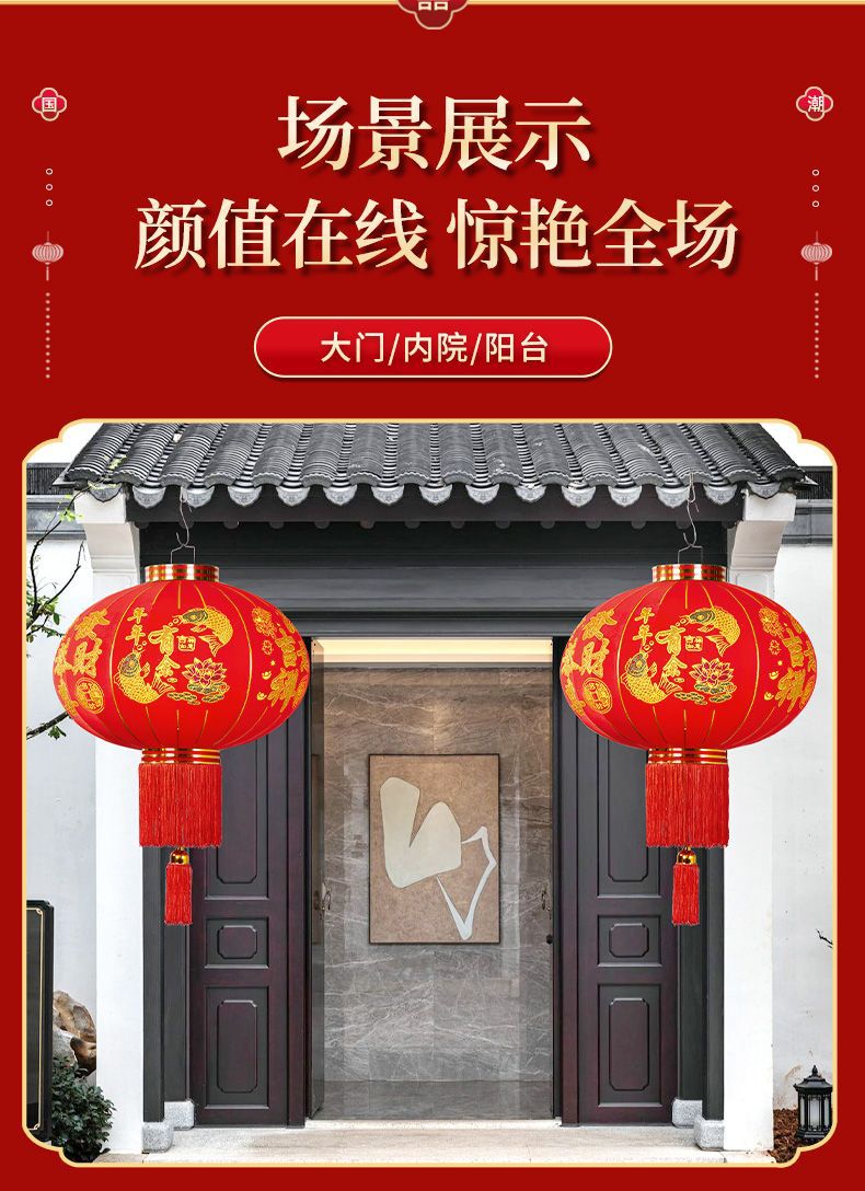 2026年新款大红灯笼新年过年春节阳台户外农村大门口灯笼一对挂饰