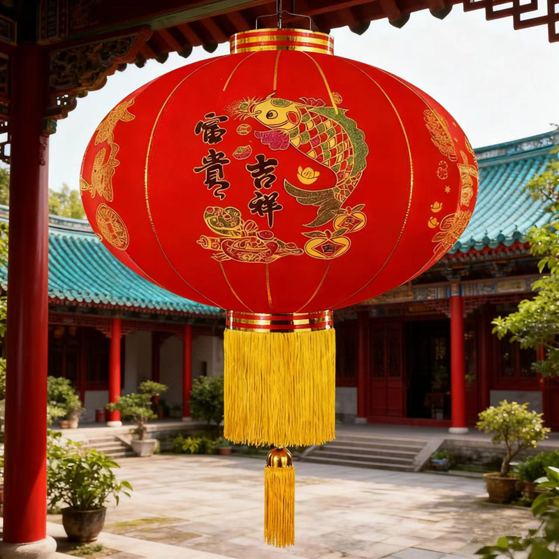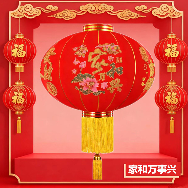 新年春节大红灯笼植绒布结婚双喜字灯笼阳台户外大门喜庆装饰宫灯
