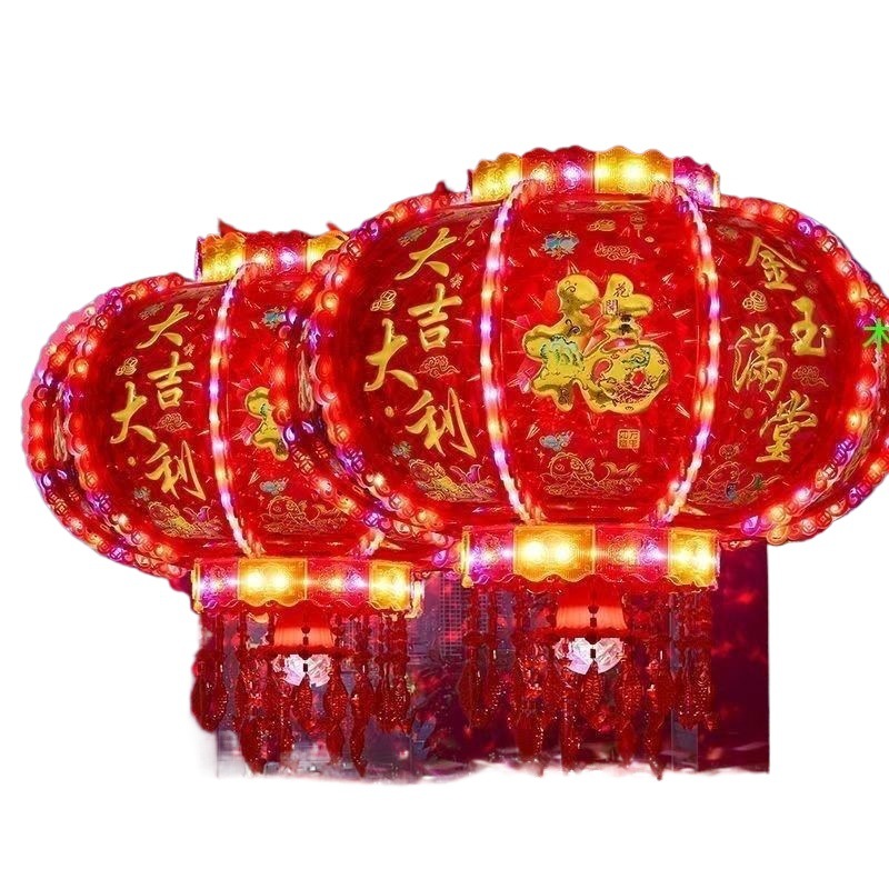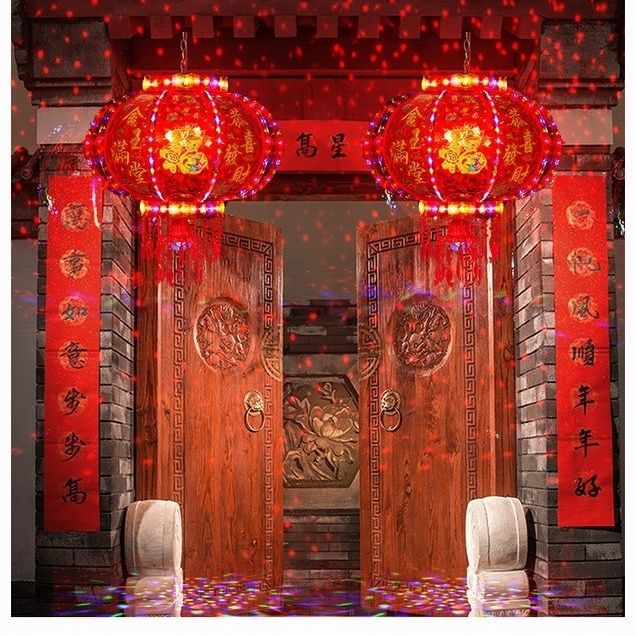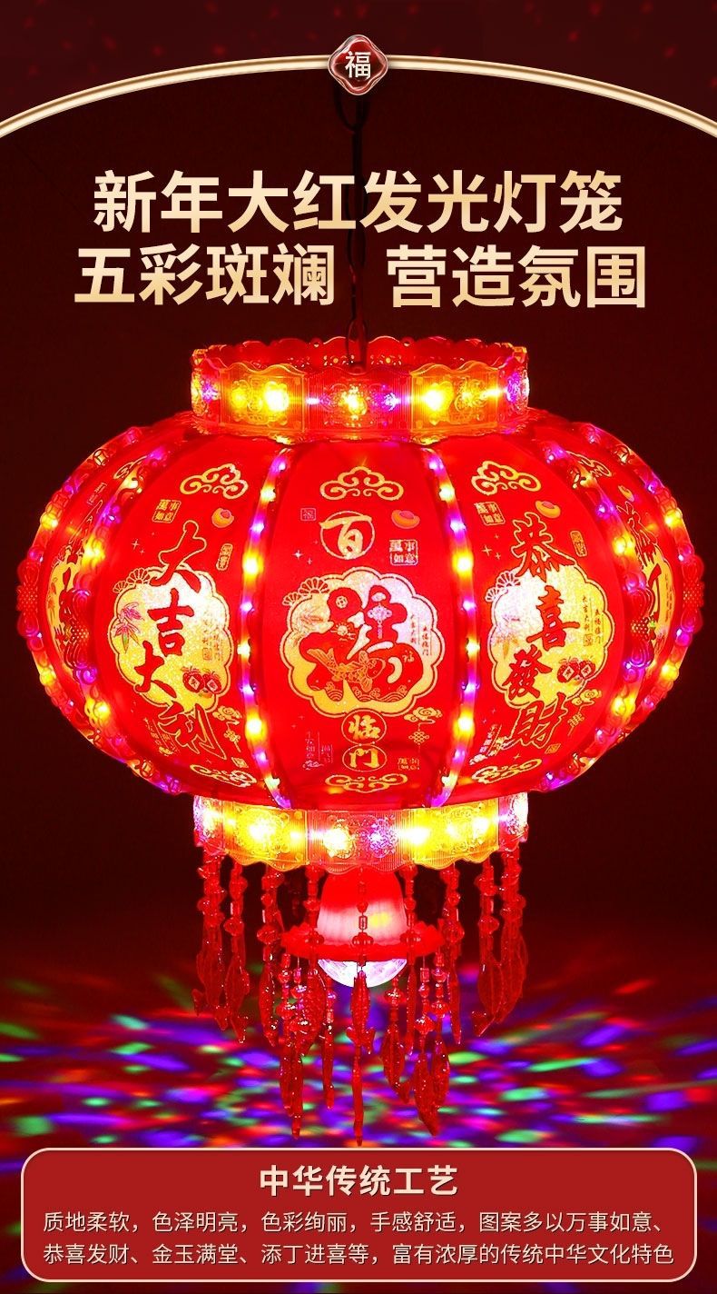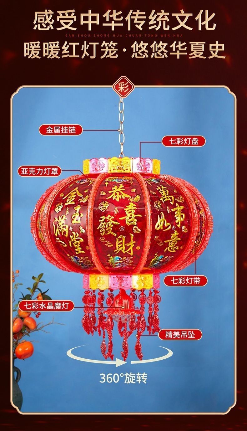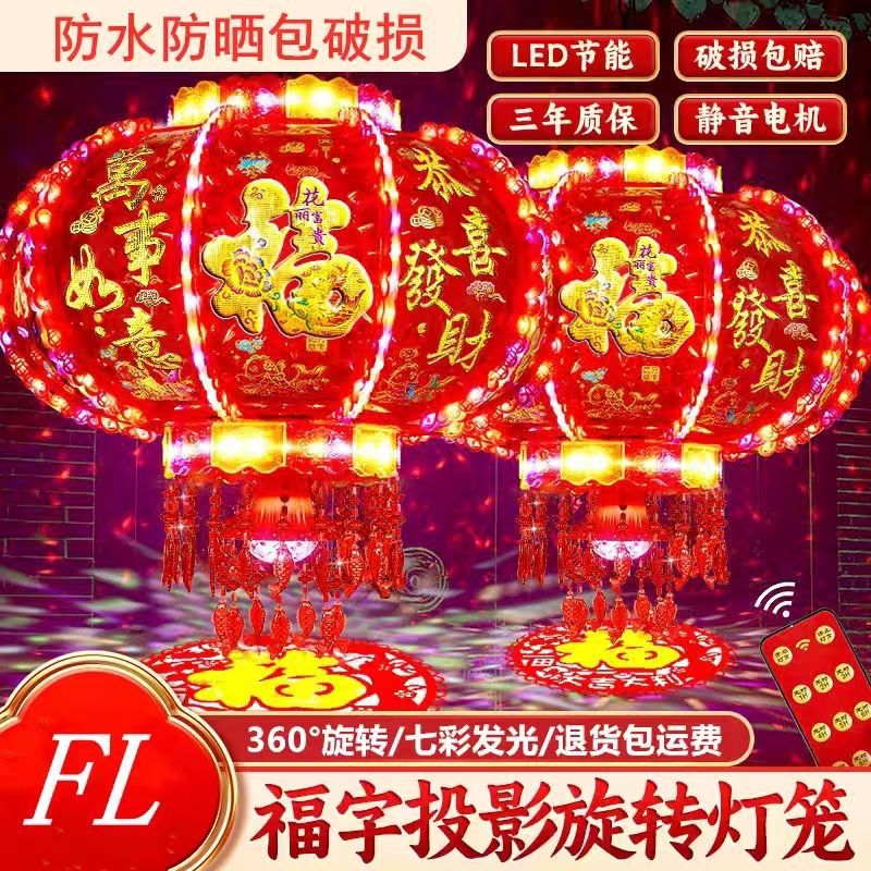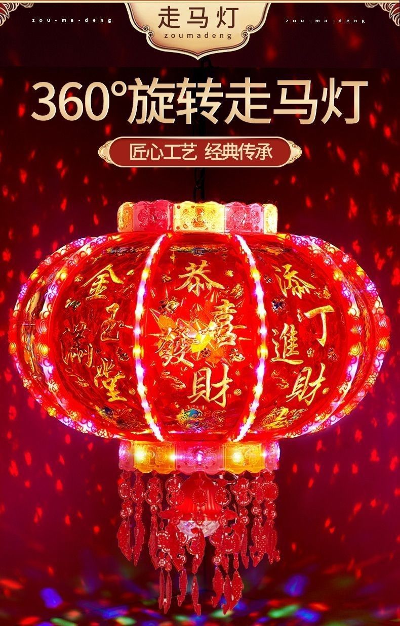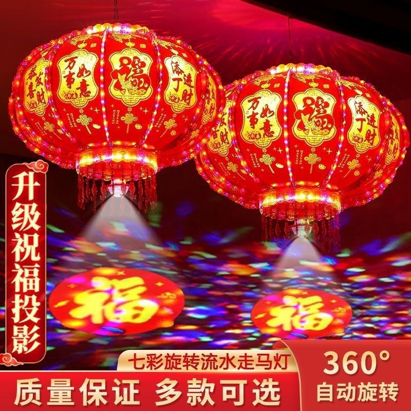 新年发光灯笼旋转走马灯过年LED七彩阳台大门口一对春节2026新款