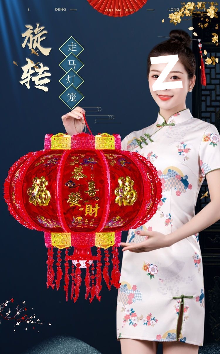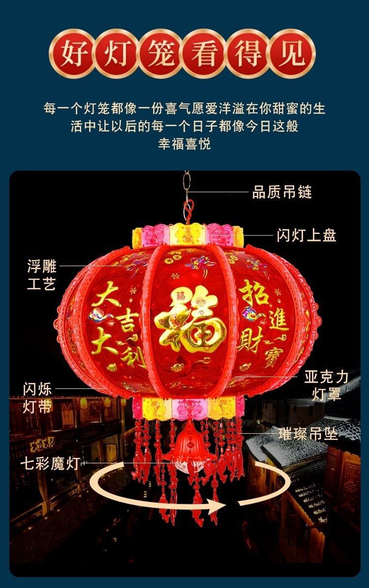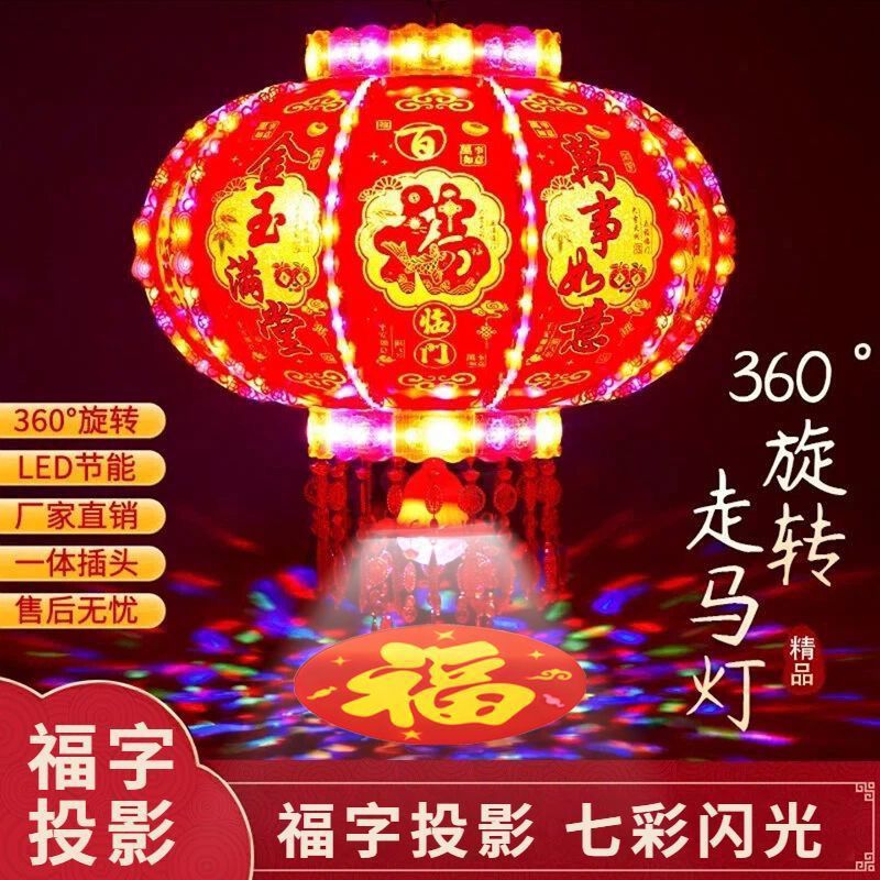 新年发光灯笼旋转走马灯过年LED七彩阳台大门口一对春节2026新款