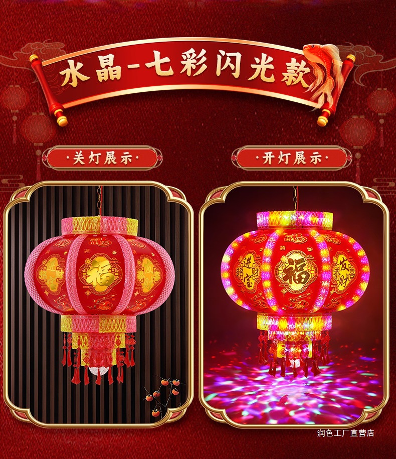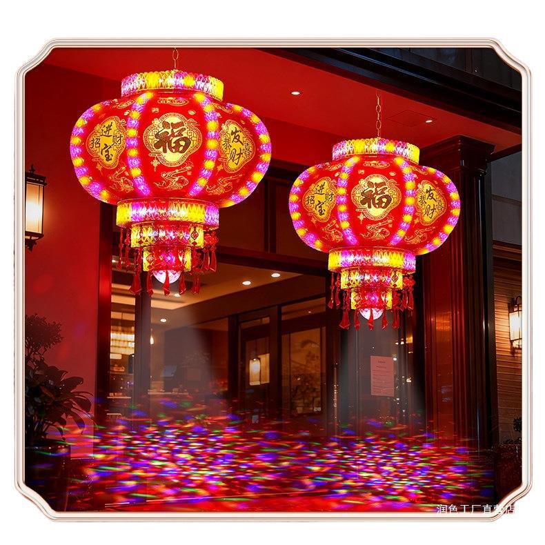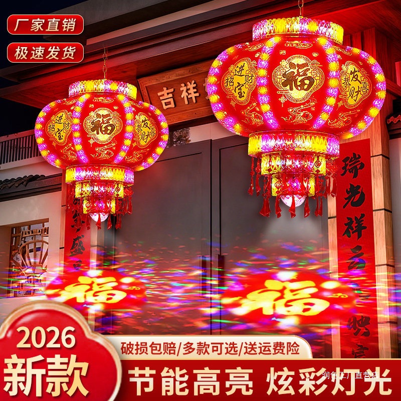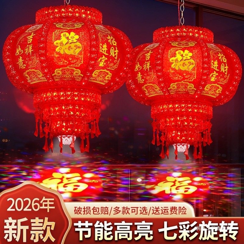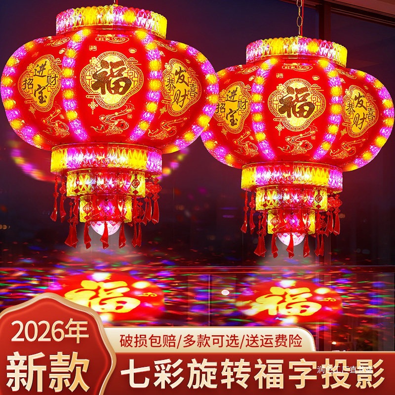 灯笼新款2026七彩旋转led走马灯大门口一对阳台红灯笼彩灯过年挂