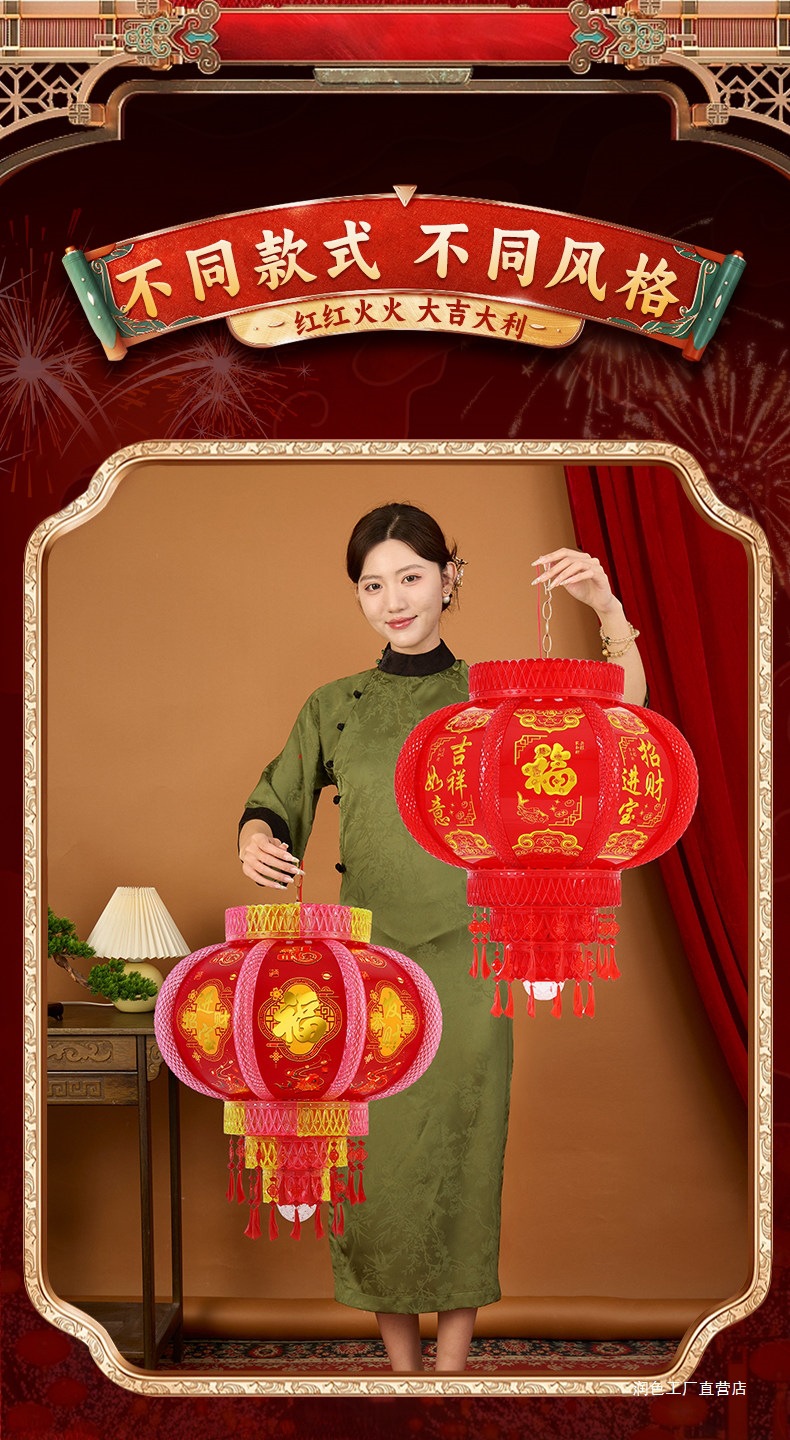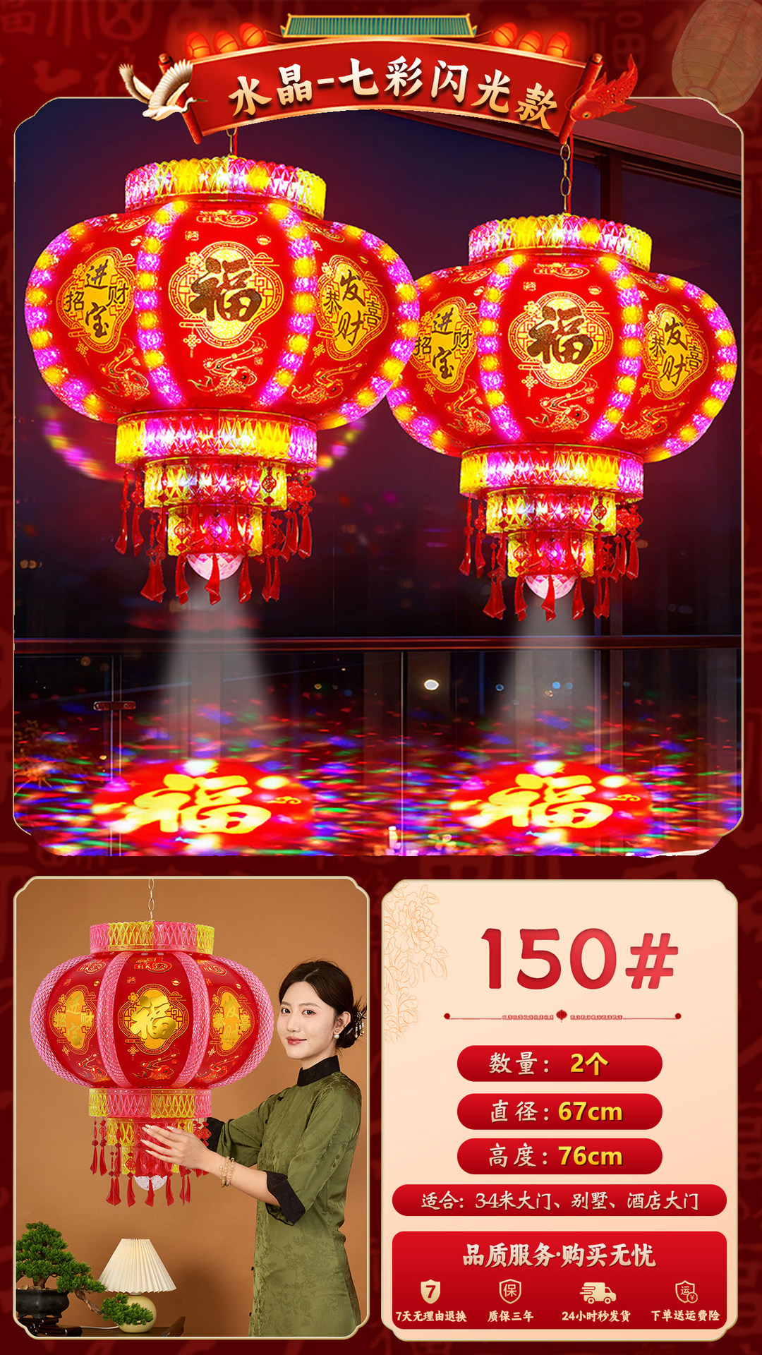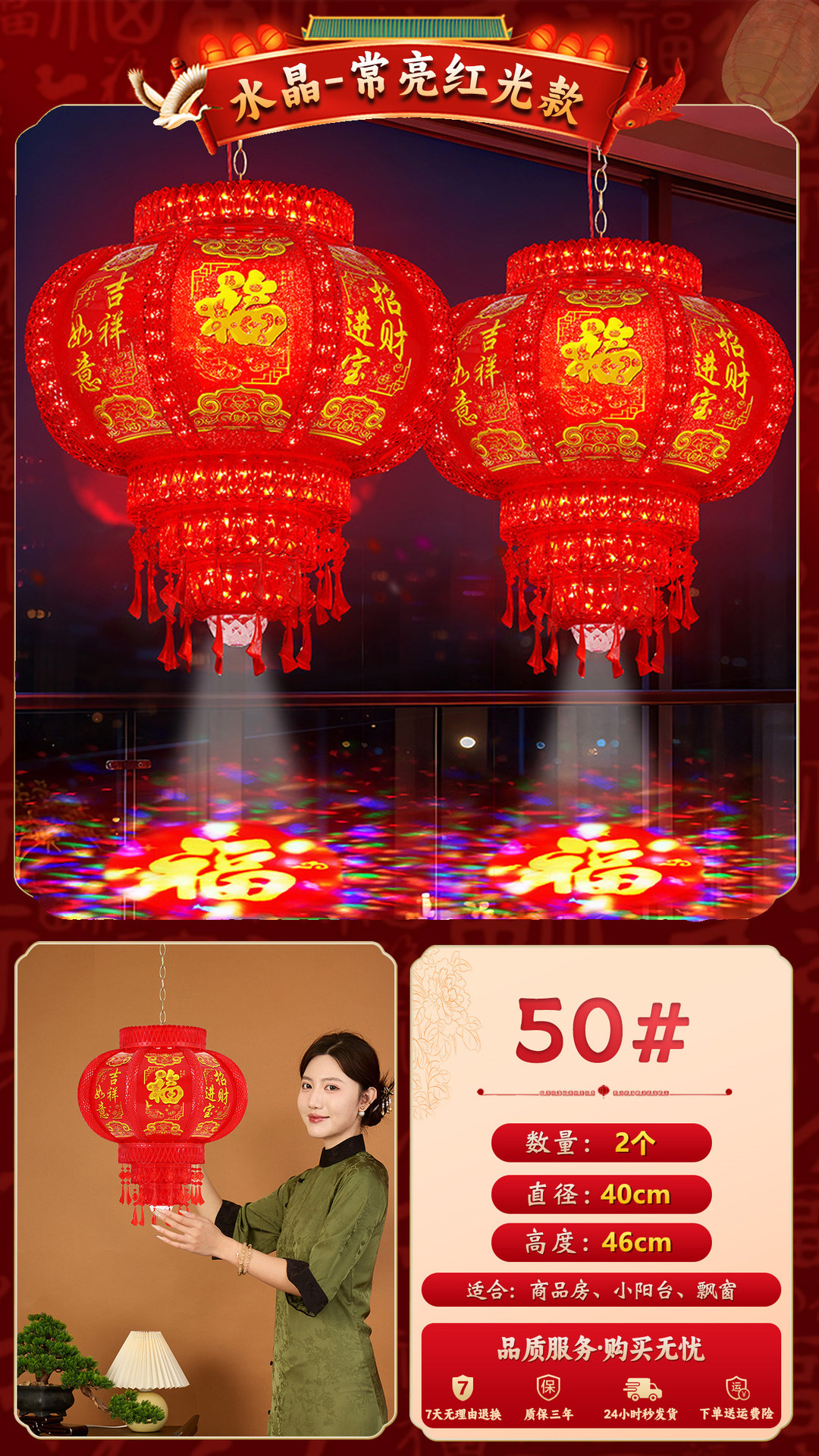 灯笼新款2026七彩旋转led走马灯大门口一对阳台红灯笼彩灯过年挂