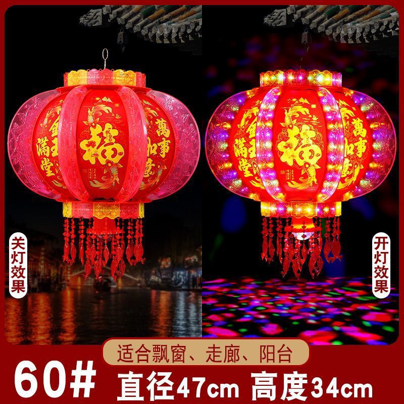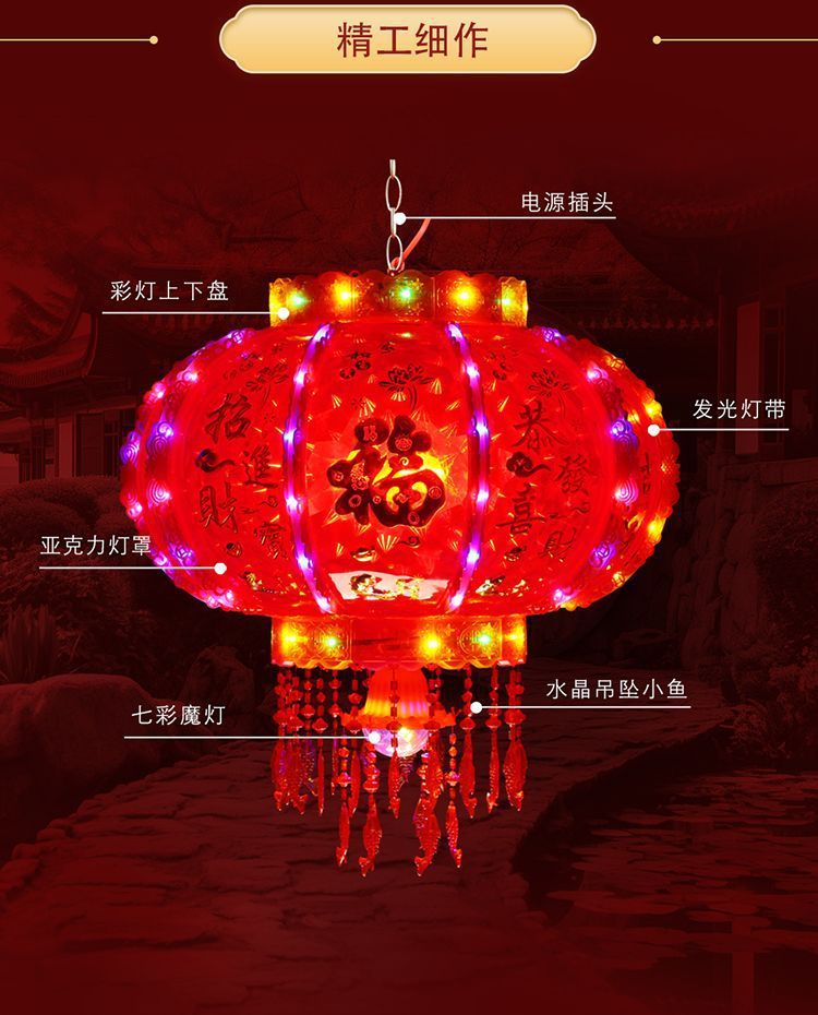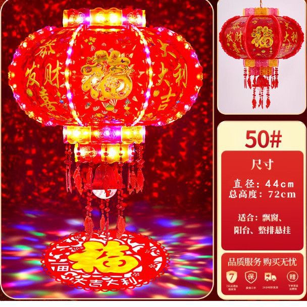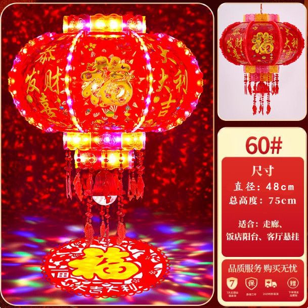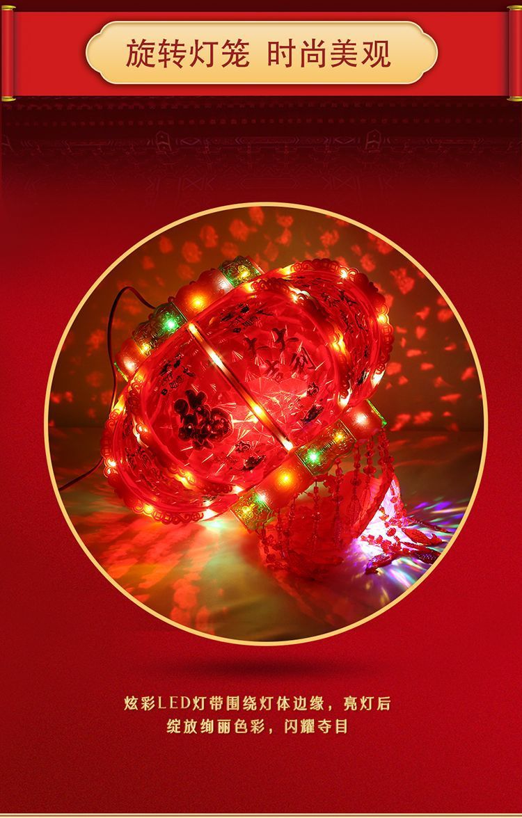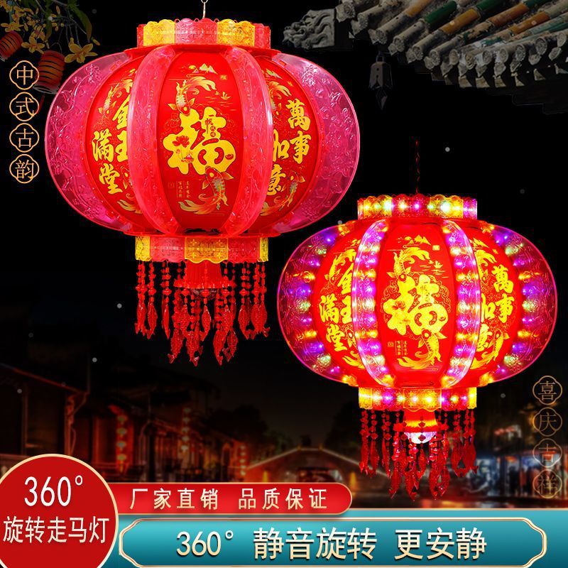 2025新款旋转灯笼大门口一对阳台春节装饰新年七彩福字LED走马灯