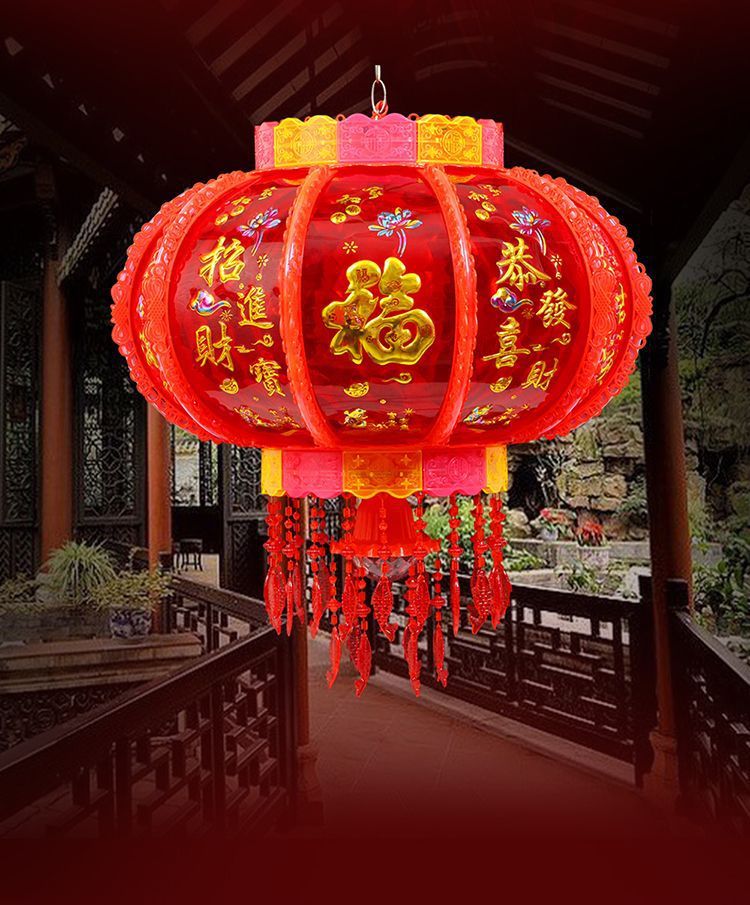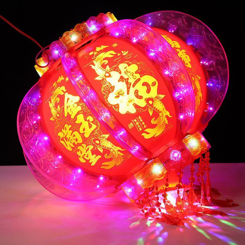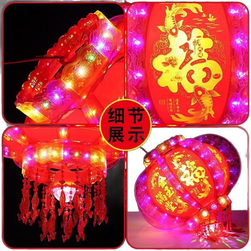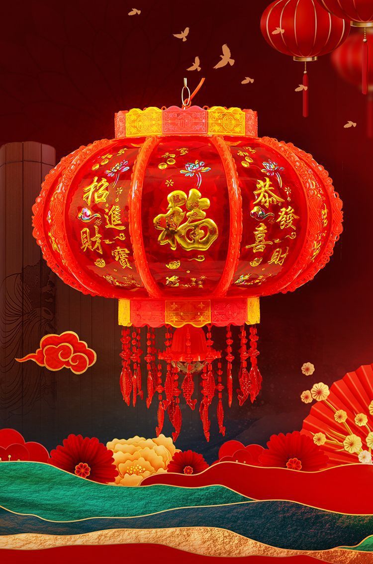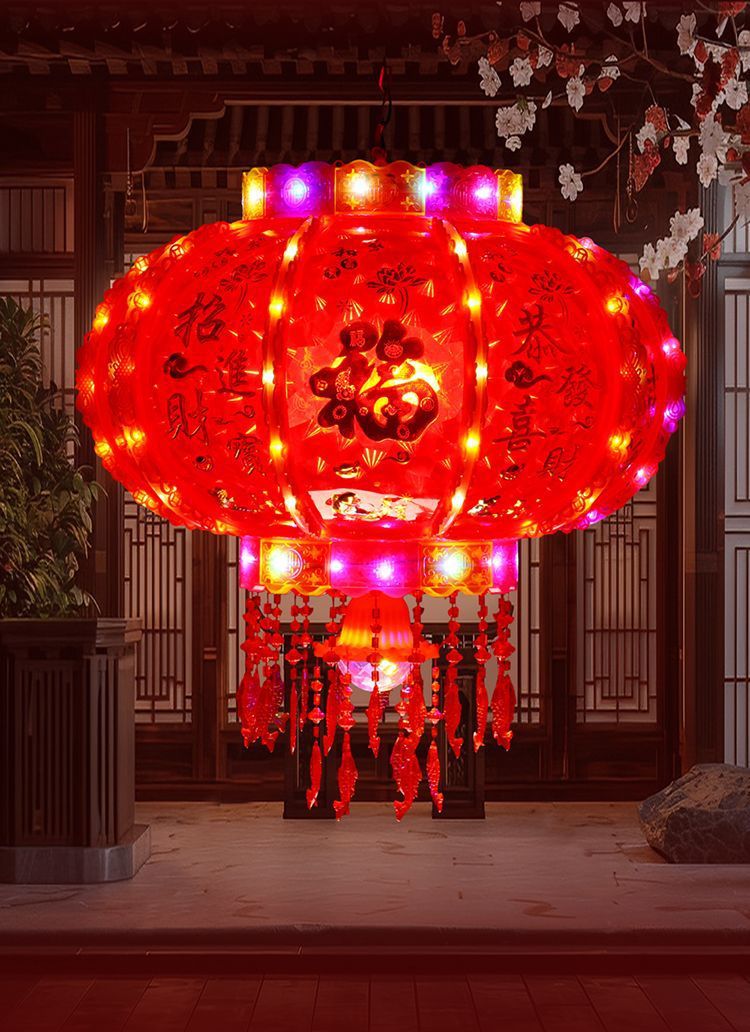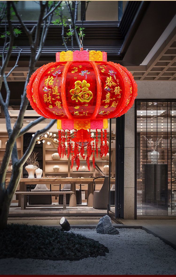 2025新款旋转灯笼大门口一对阳台春节装饰新年七彩福字LED走马灯