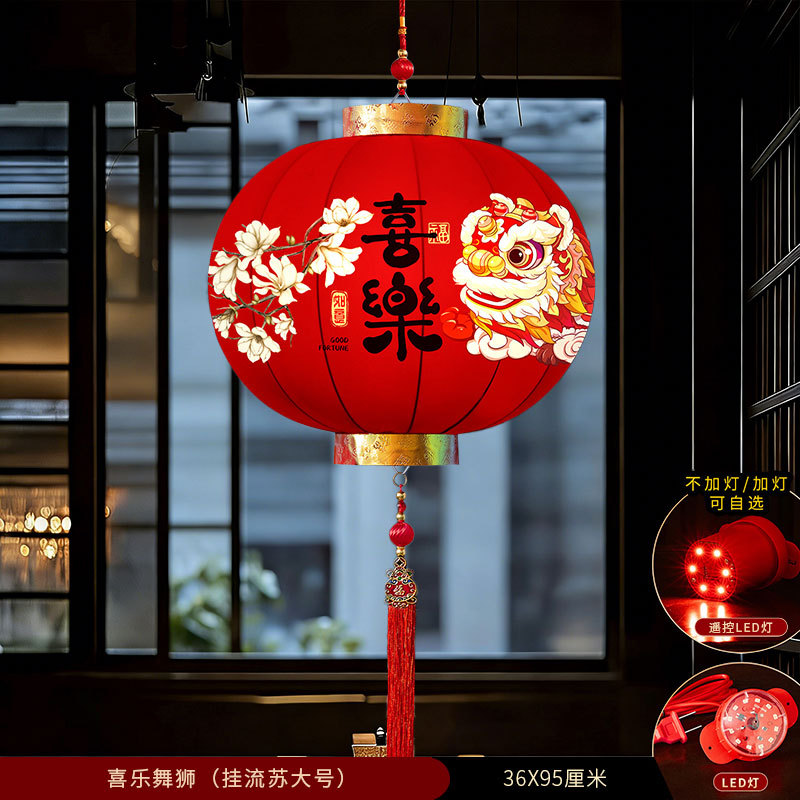 2026新款大红灯笼春节国风新年装饰门口免插电led灯阳台灯笼一对